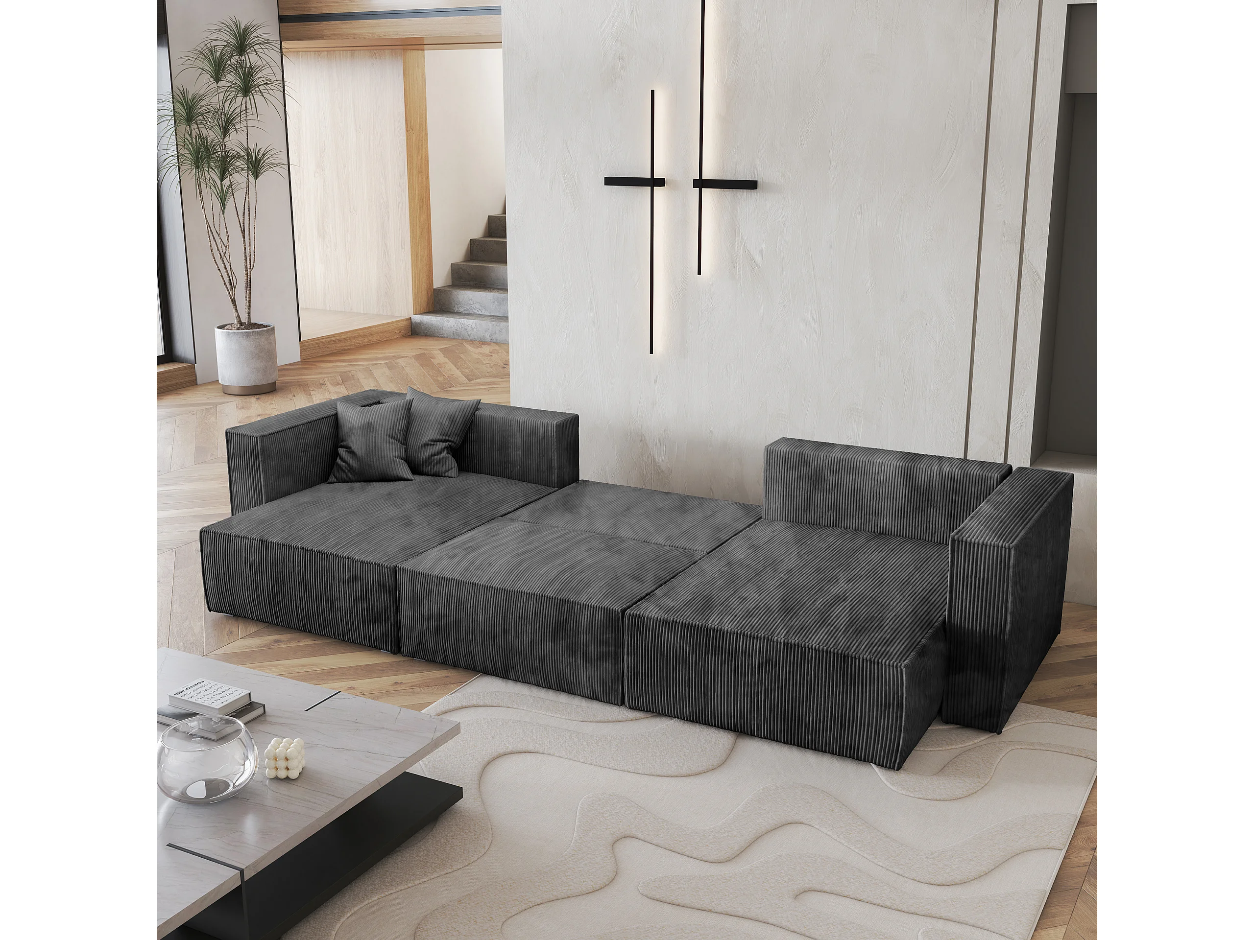Canapé d'angle SARMO Gris anthracite en velours côtelé avec fonction de couchage