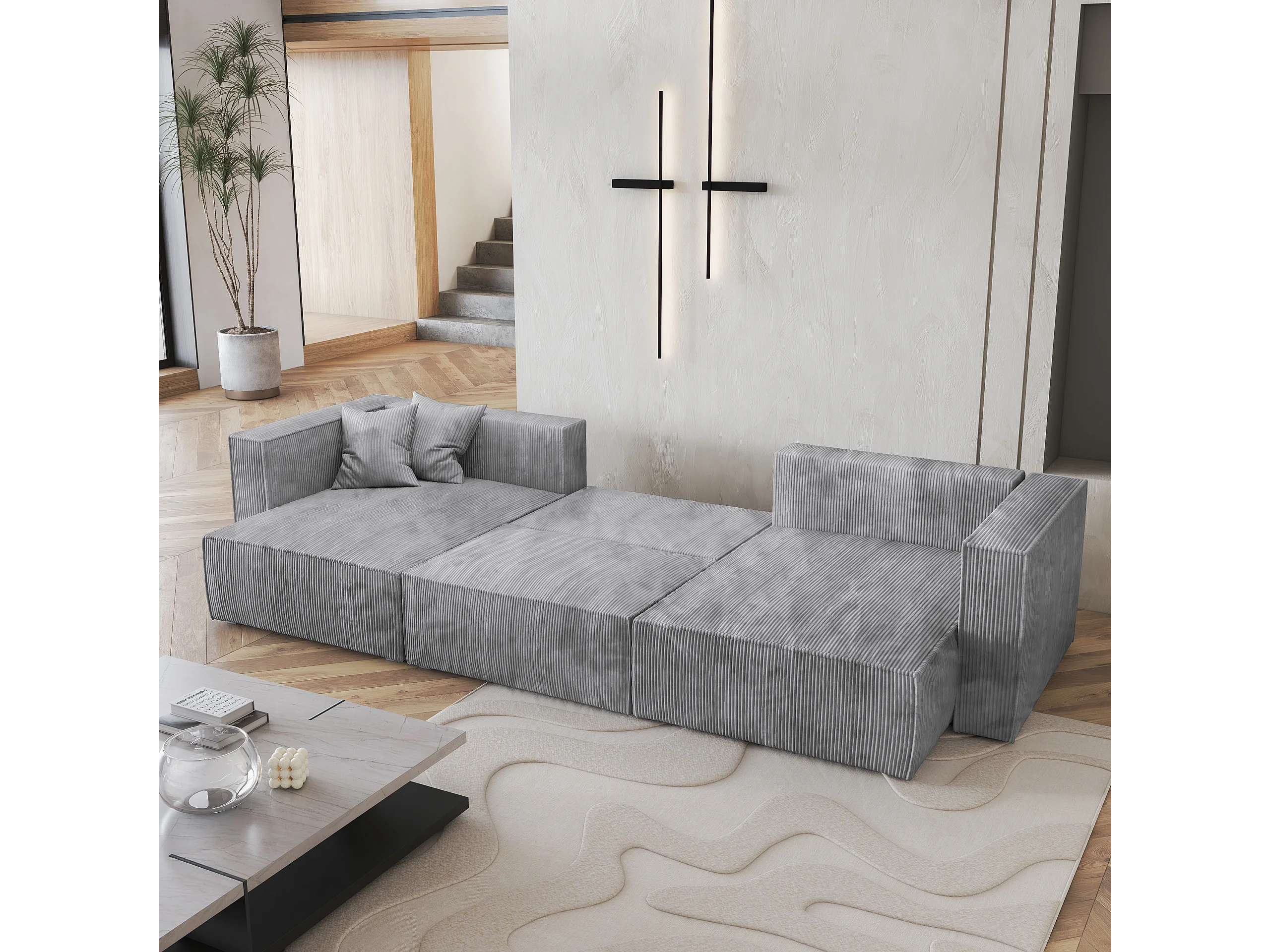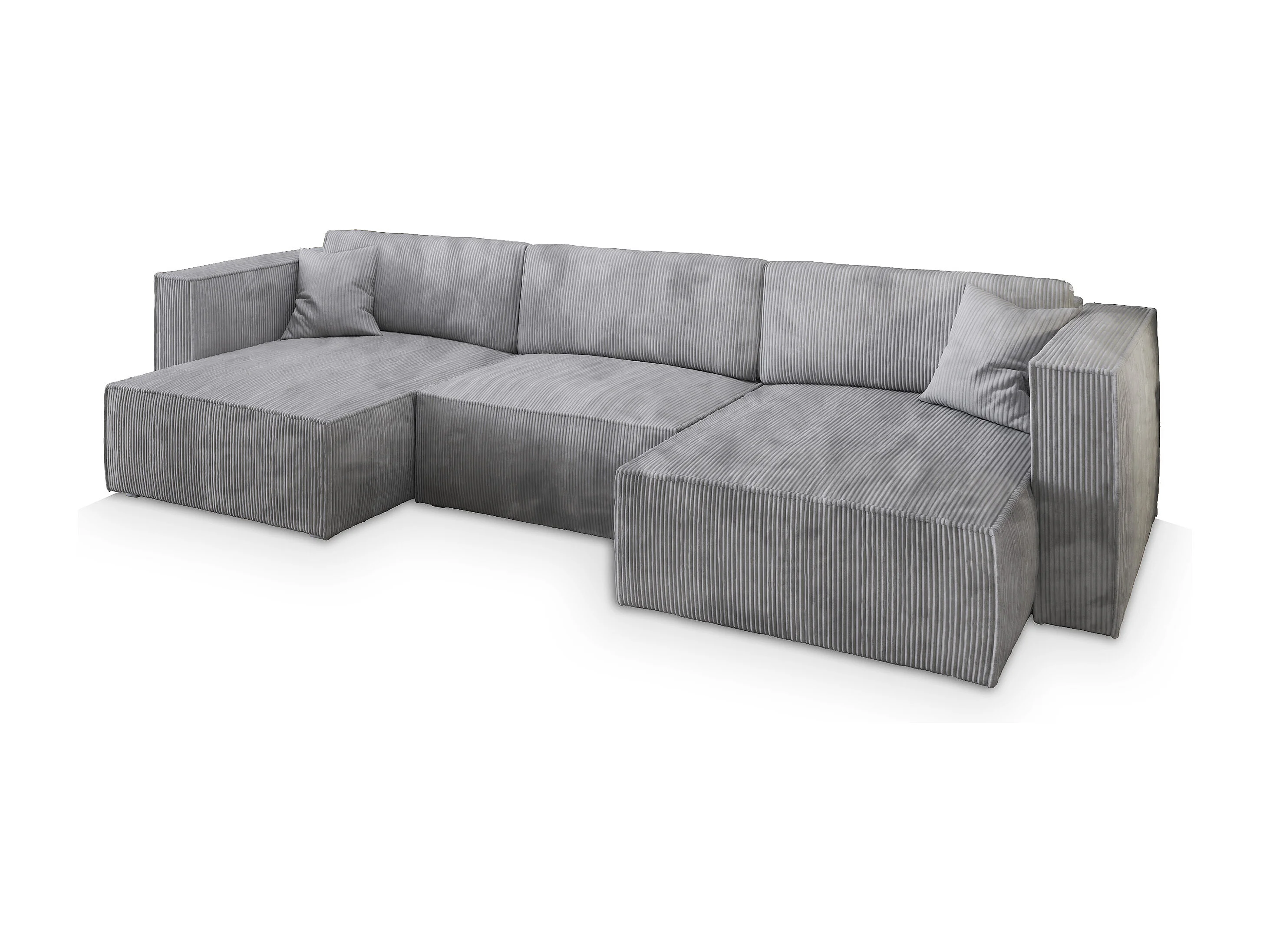 Canapé d'angle SARMO Gris clair en velours côtelé avec fonction de couchage