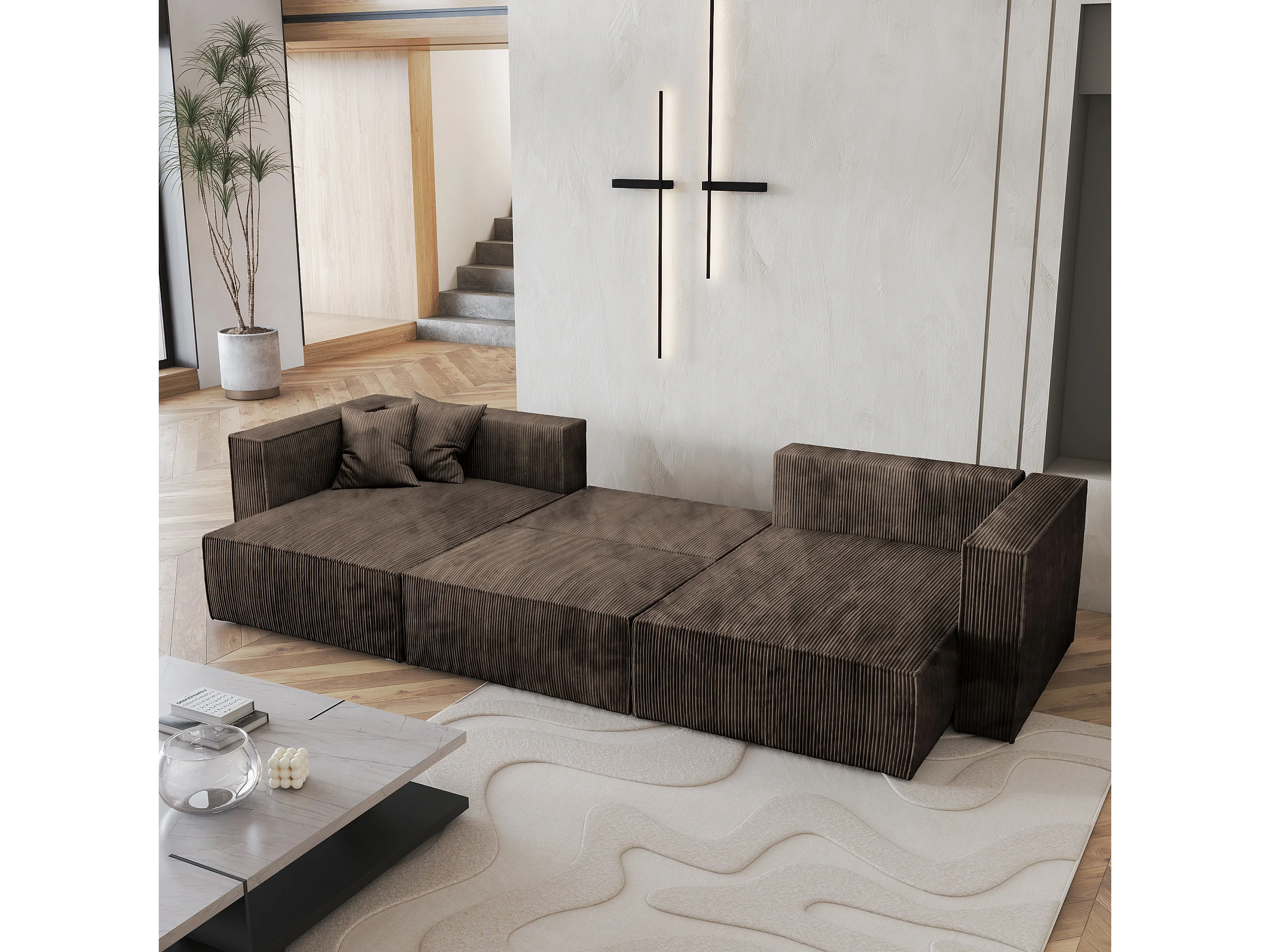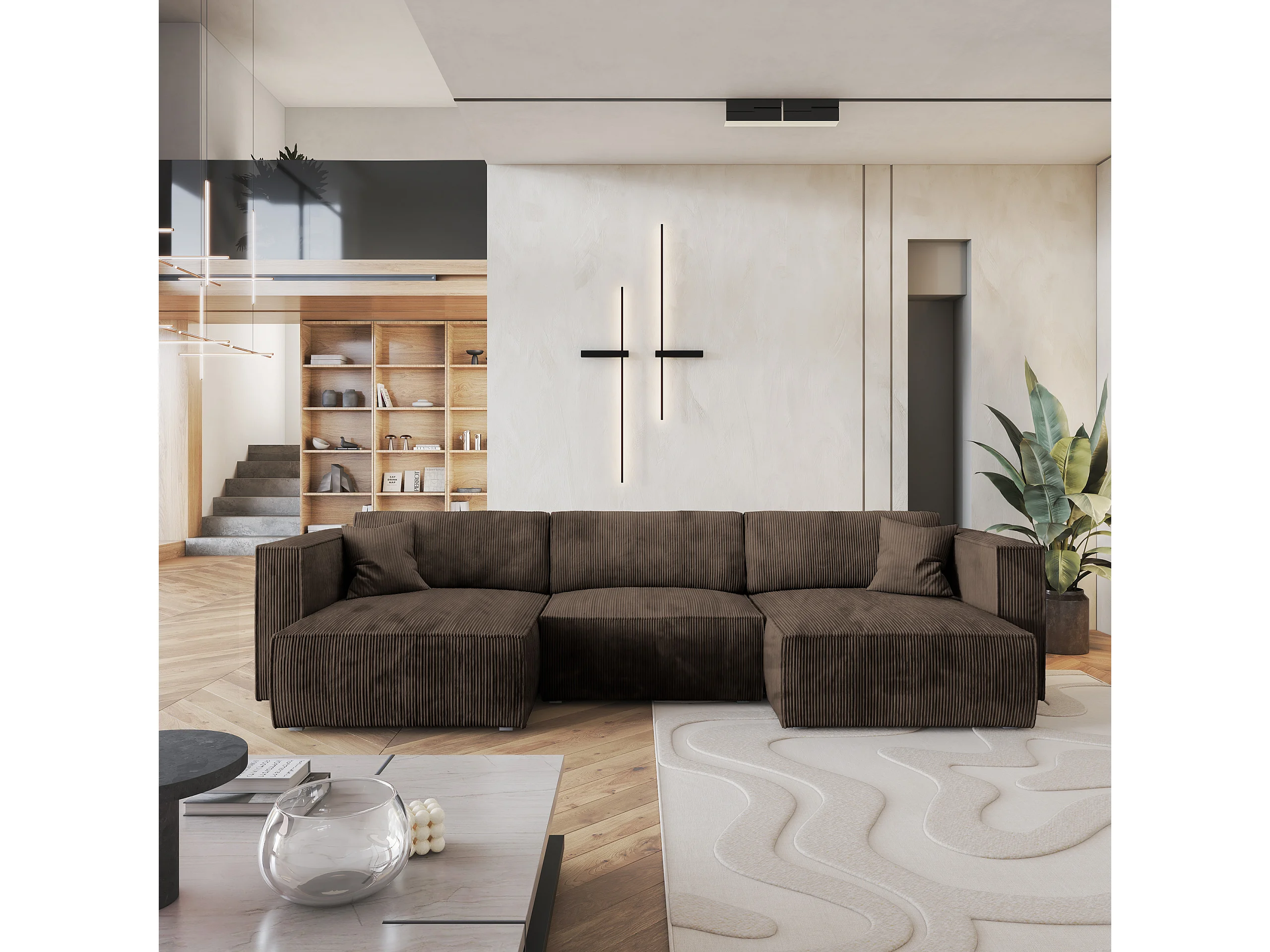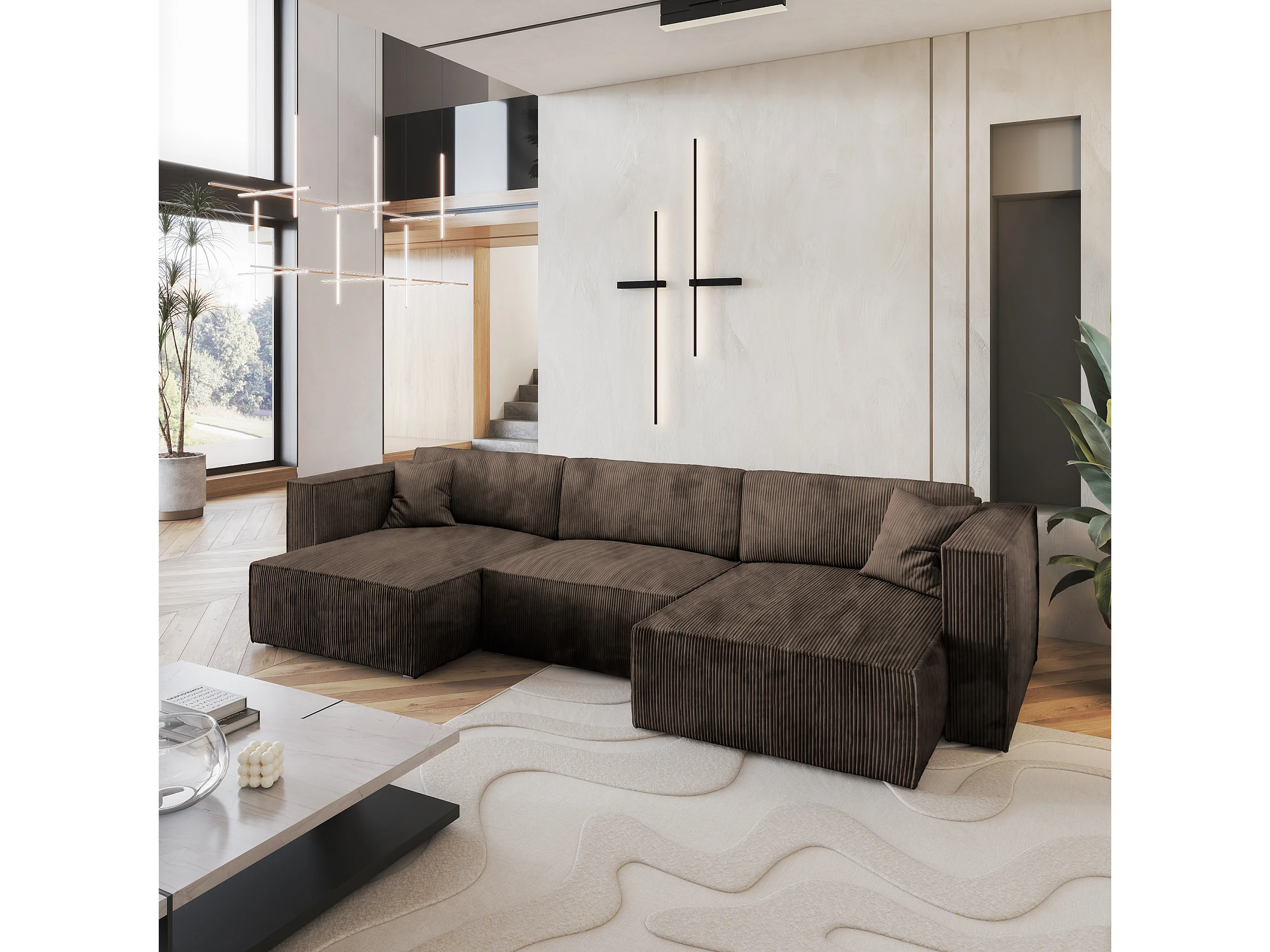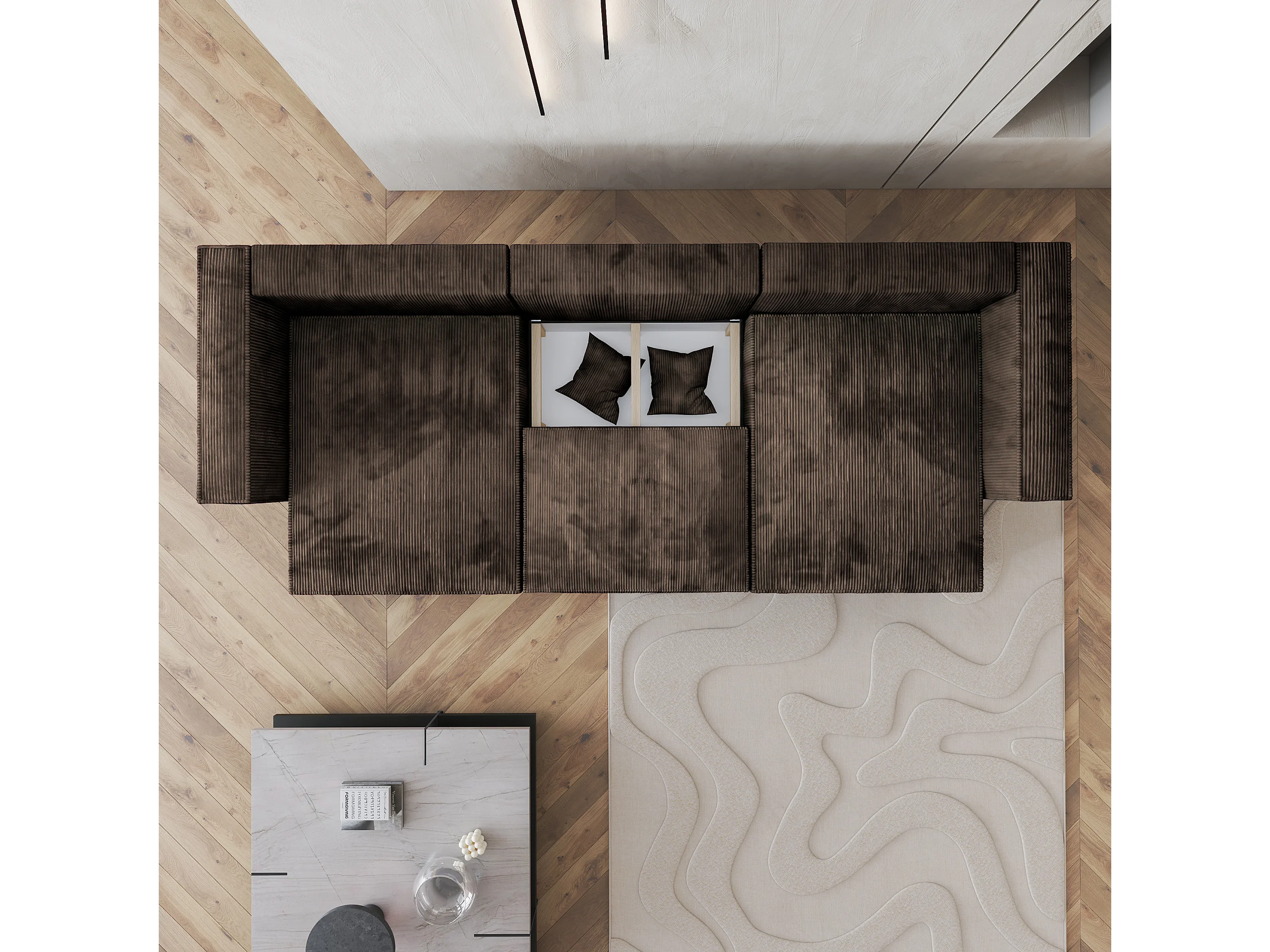 Canapé d'angle SARMO Marron en velours côtelé avec fonction de couchage