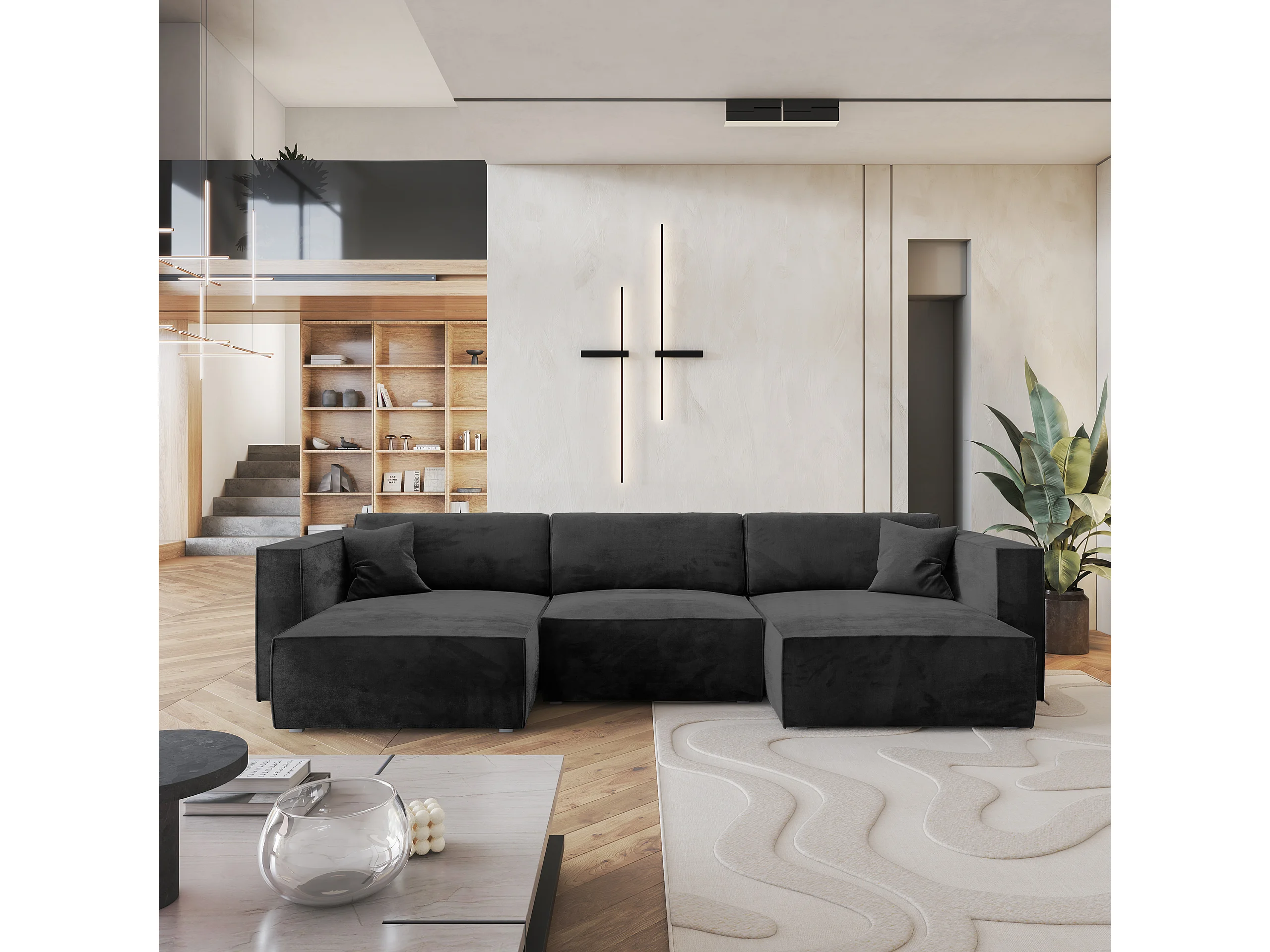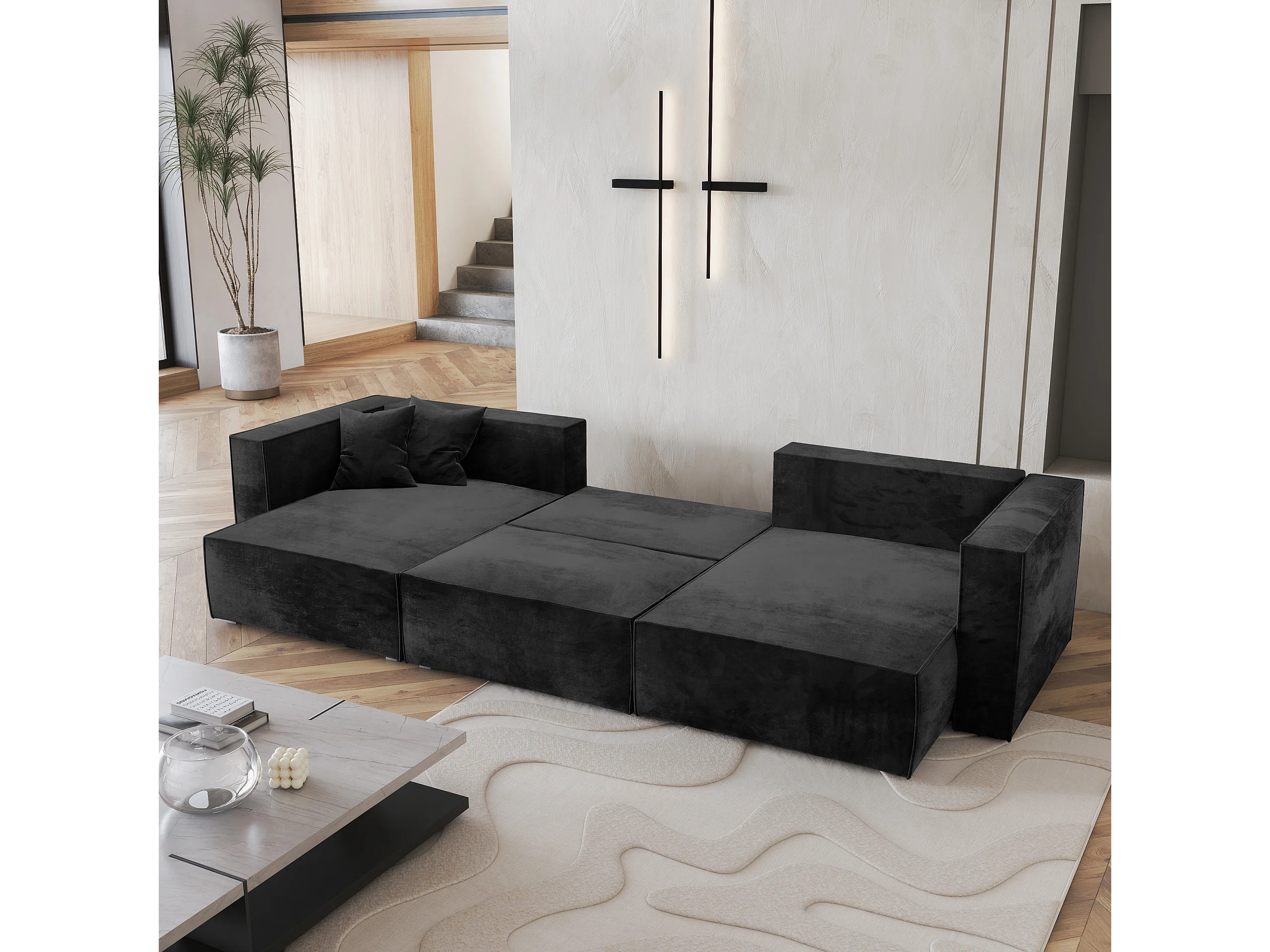 Canapé d'angle SARMO Noir en velours avec fonction de couchage
