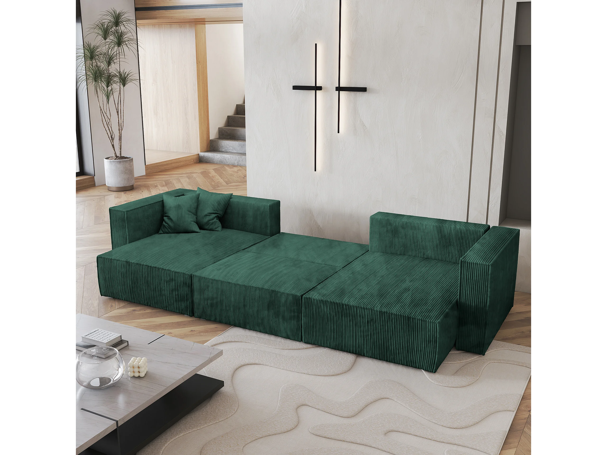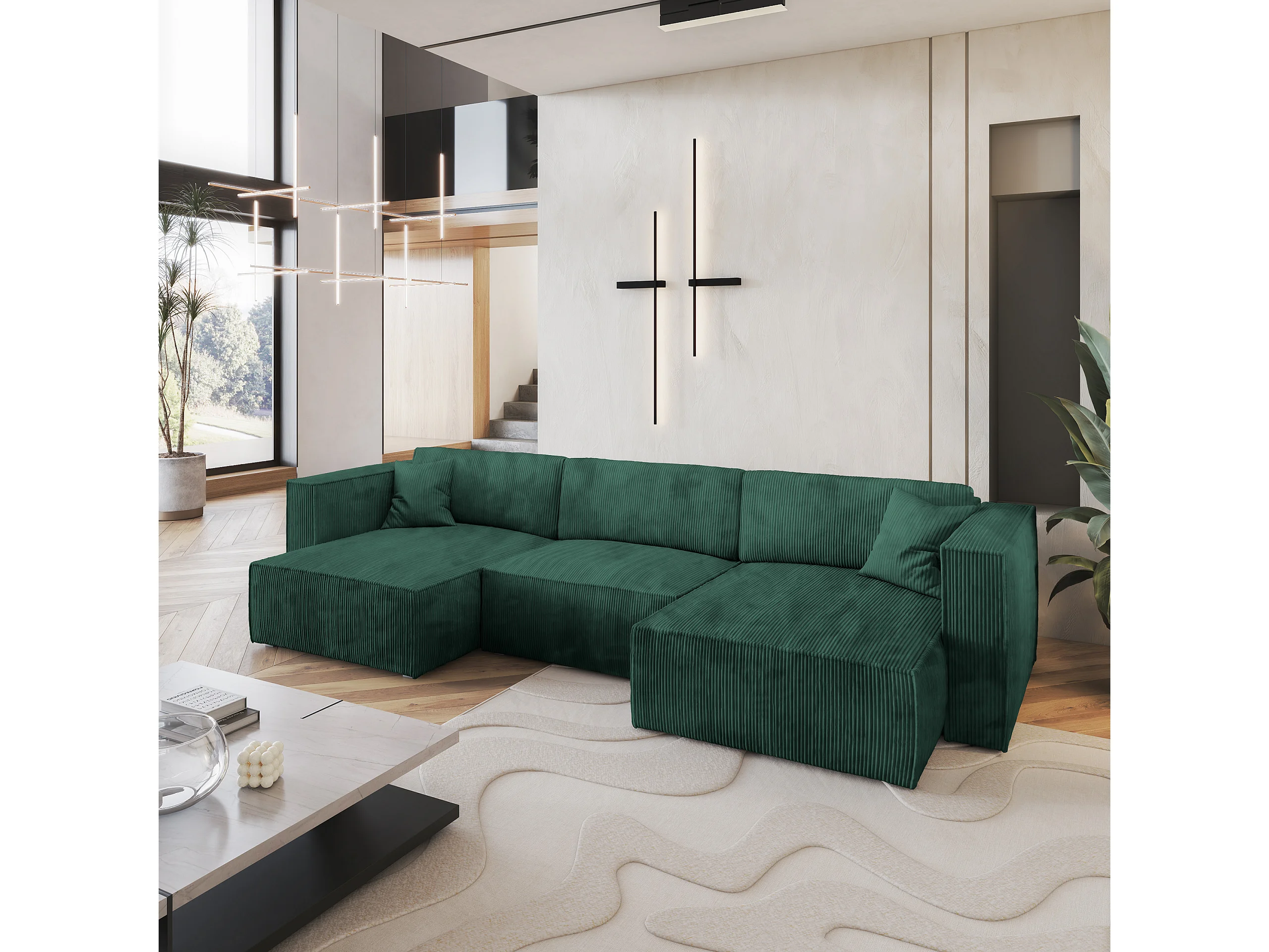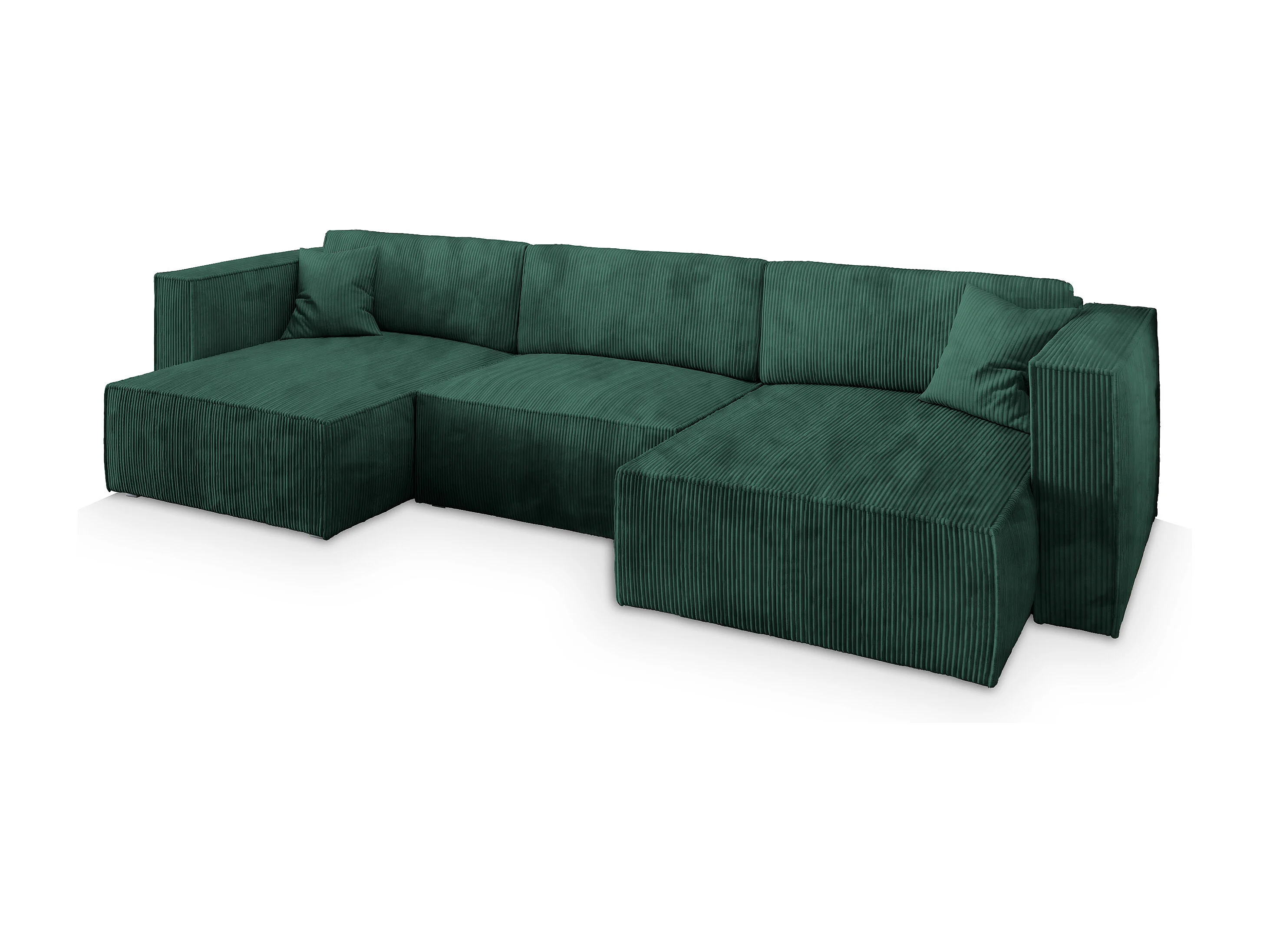 Canapé d'angle SARMO Vert Sapin en velours côtelé avec fonction de couchage