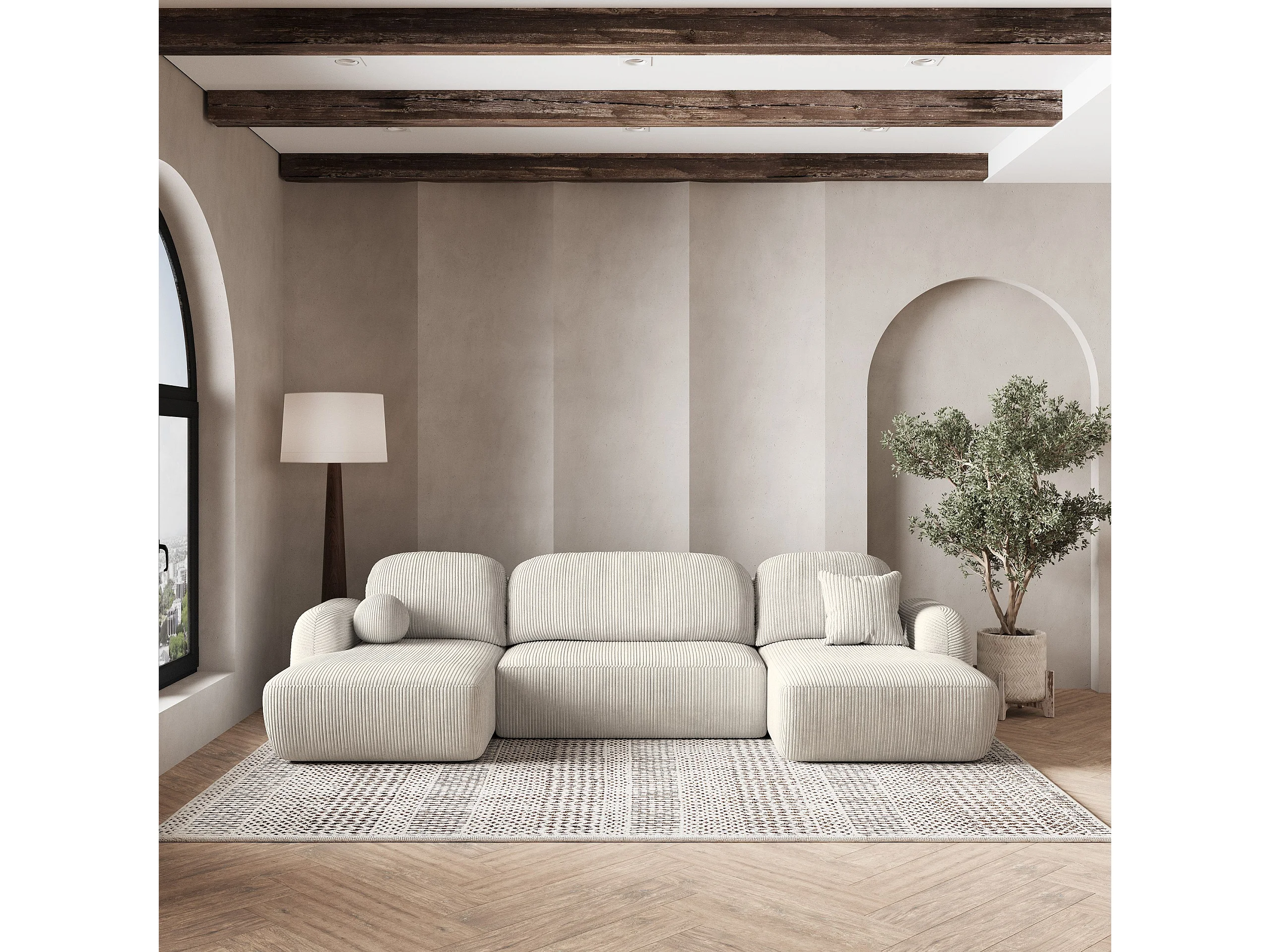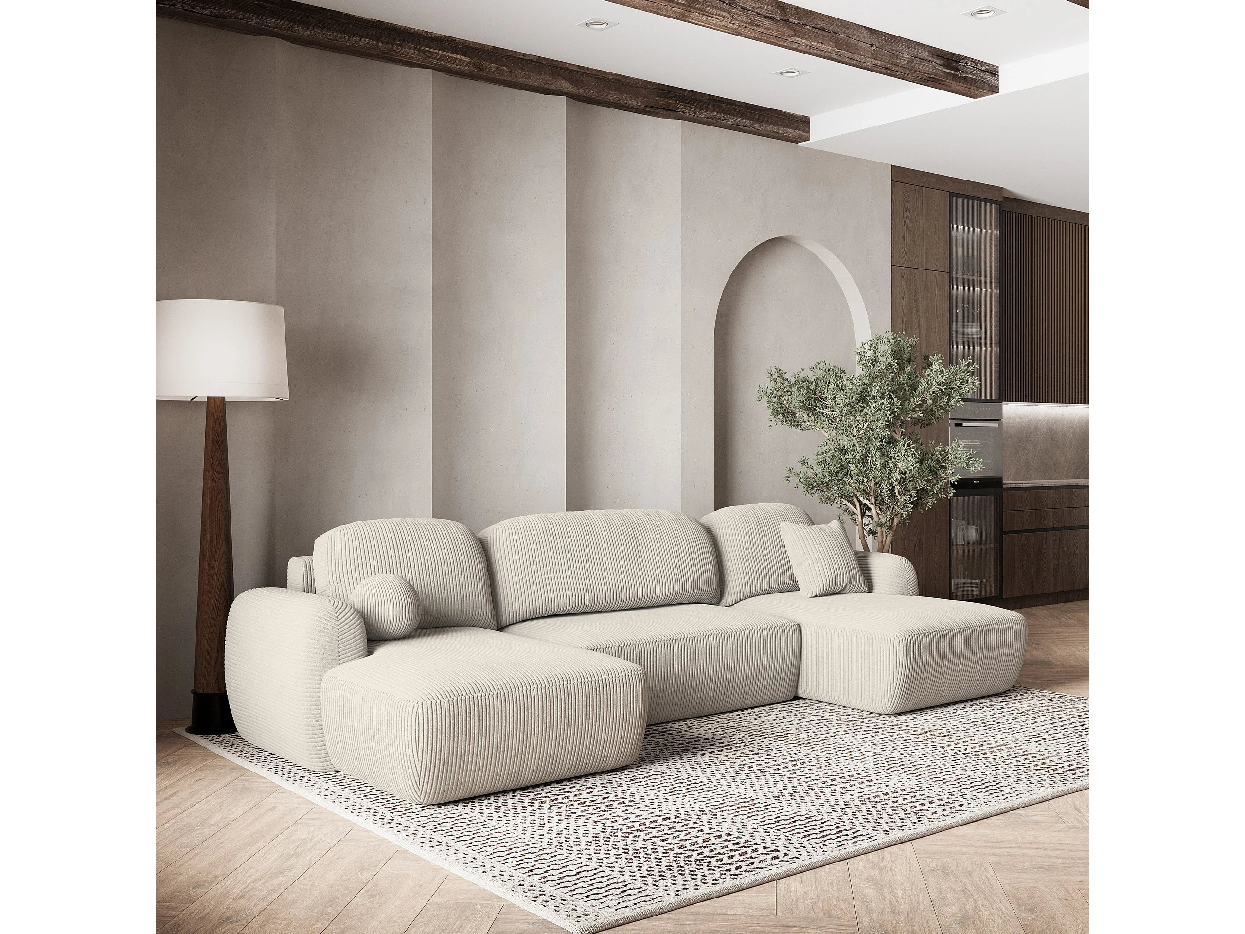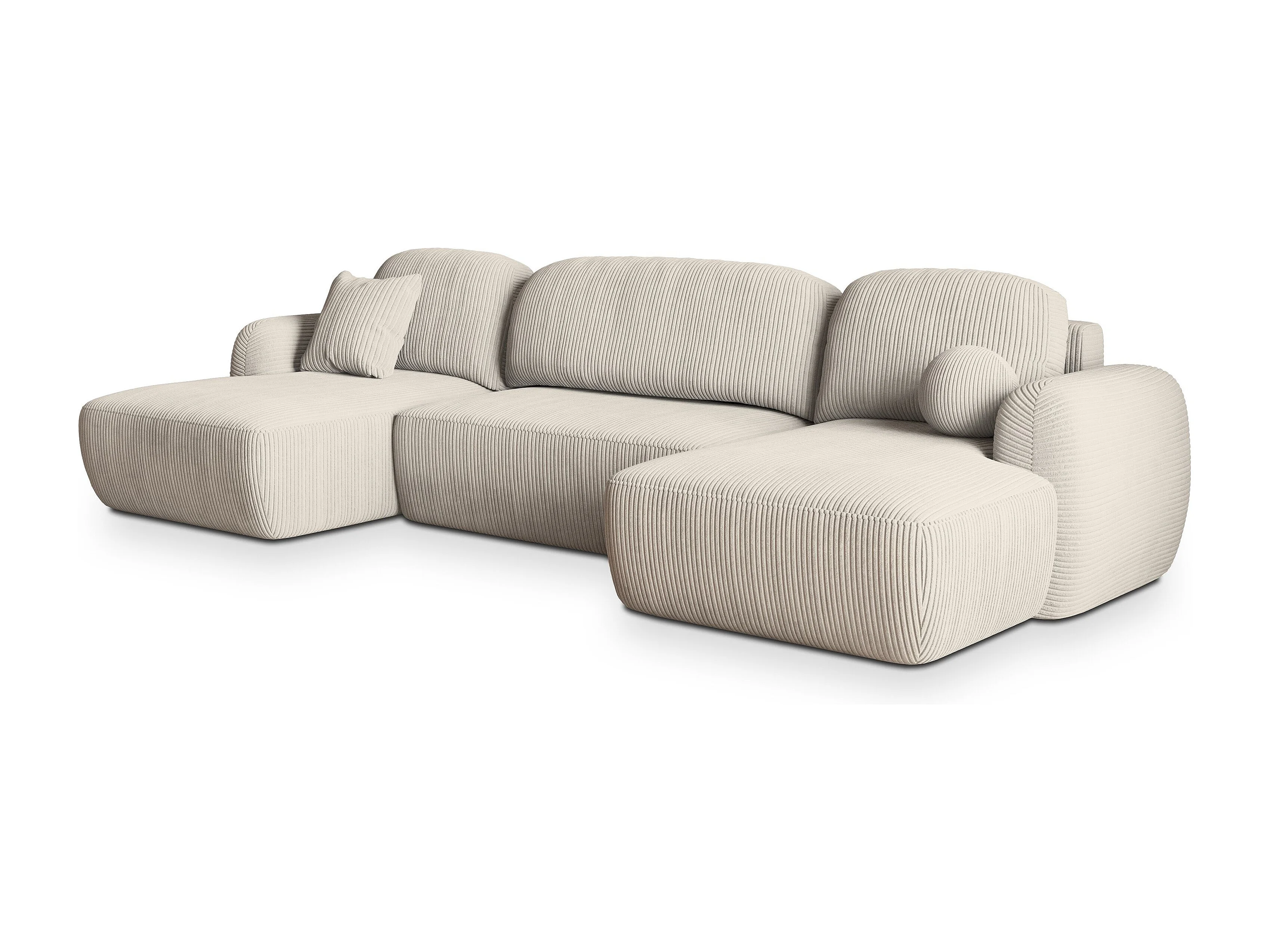 Canapé d'angle SAVONA Crème en velours côtelé avec fonction de couchage