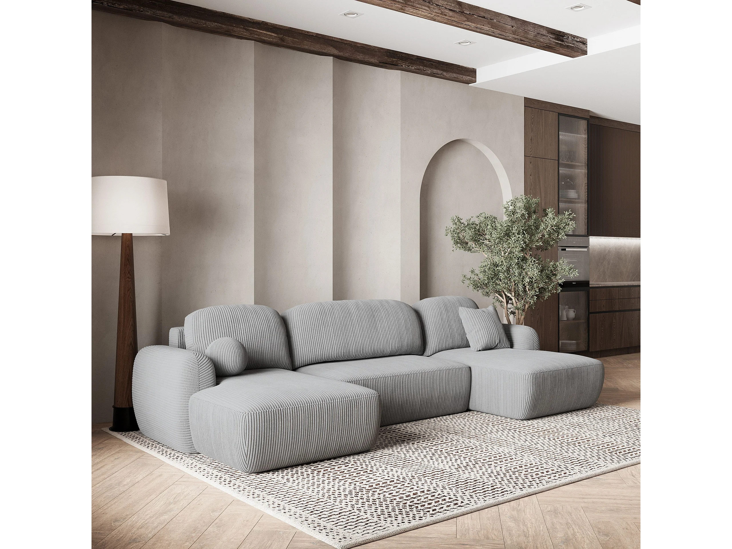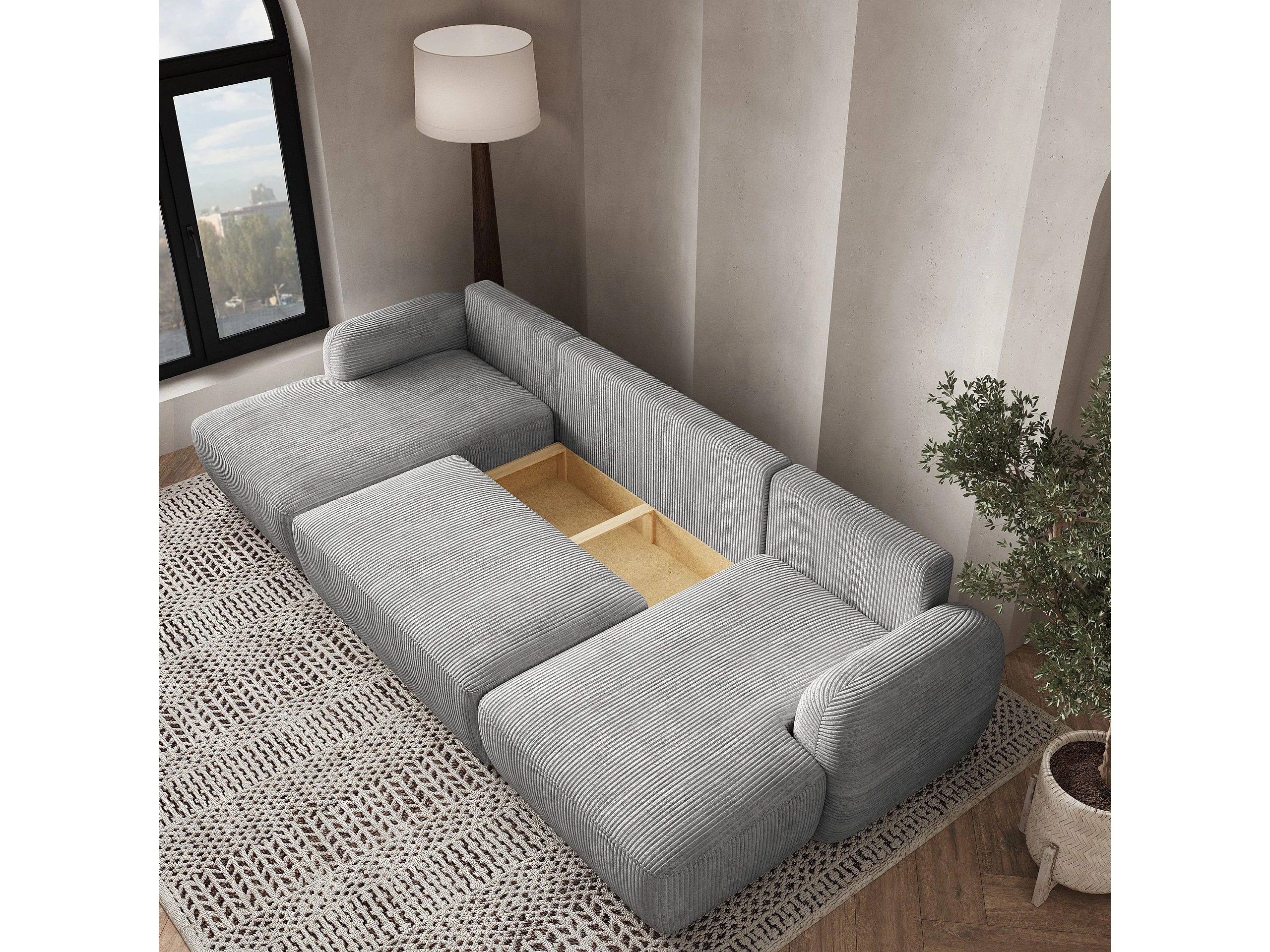 Canapé d'angle SAVONA Gris clair en velours côtelé avec fonction de couchage