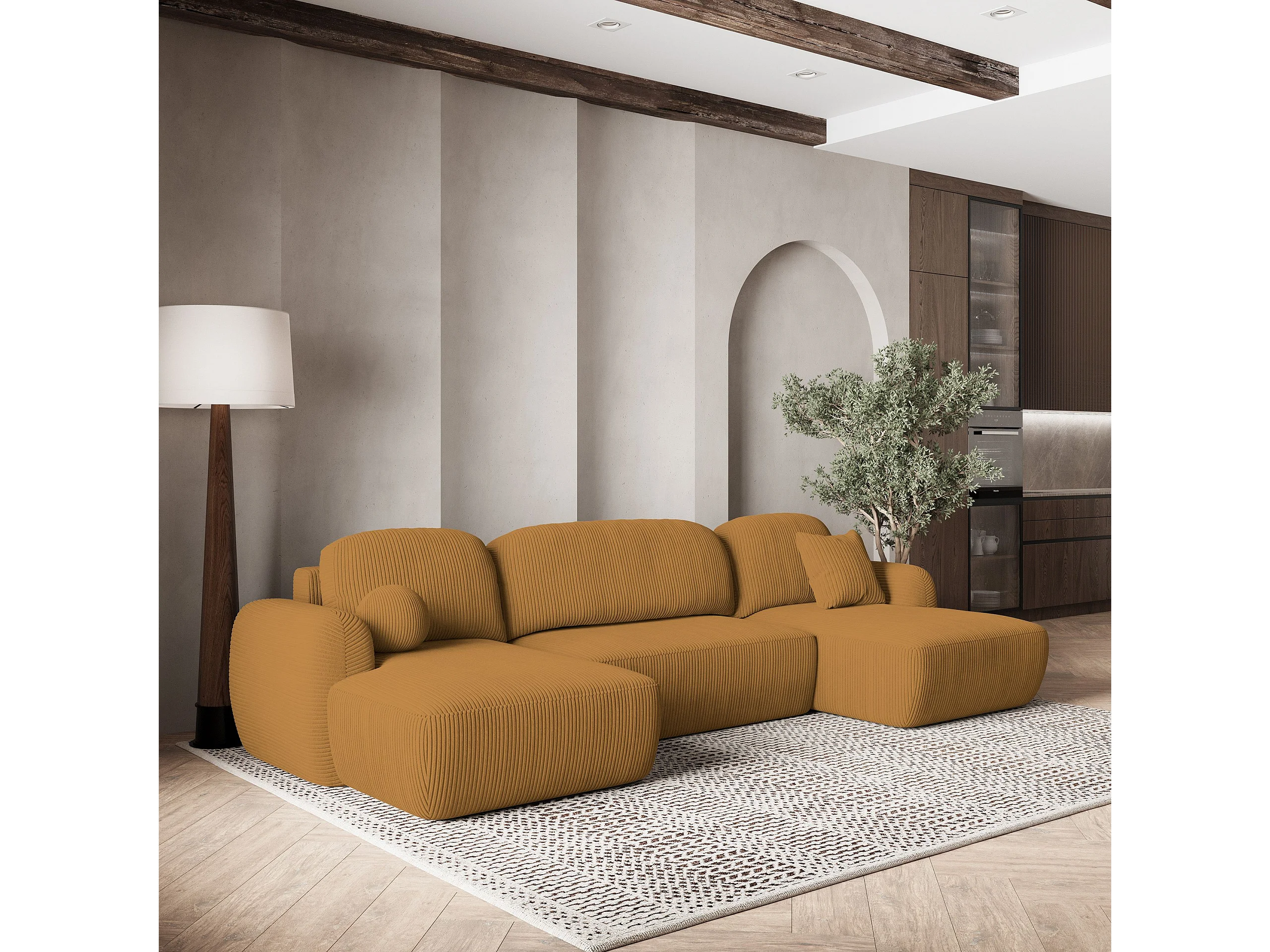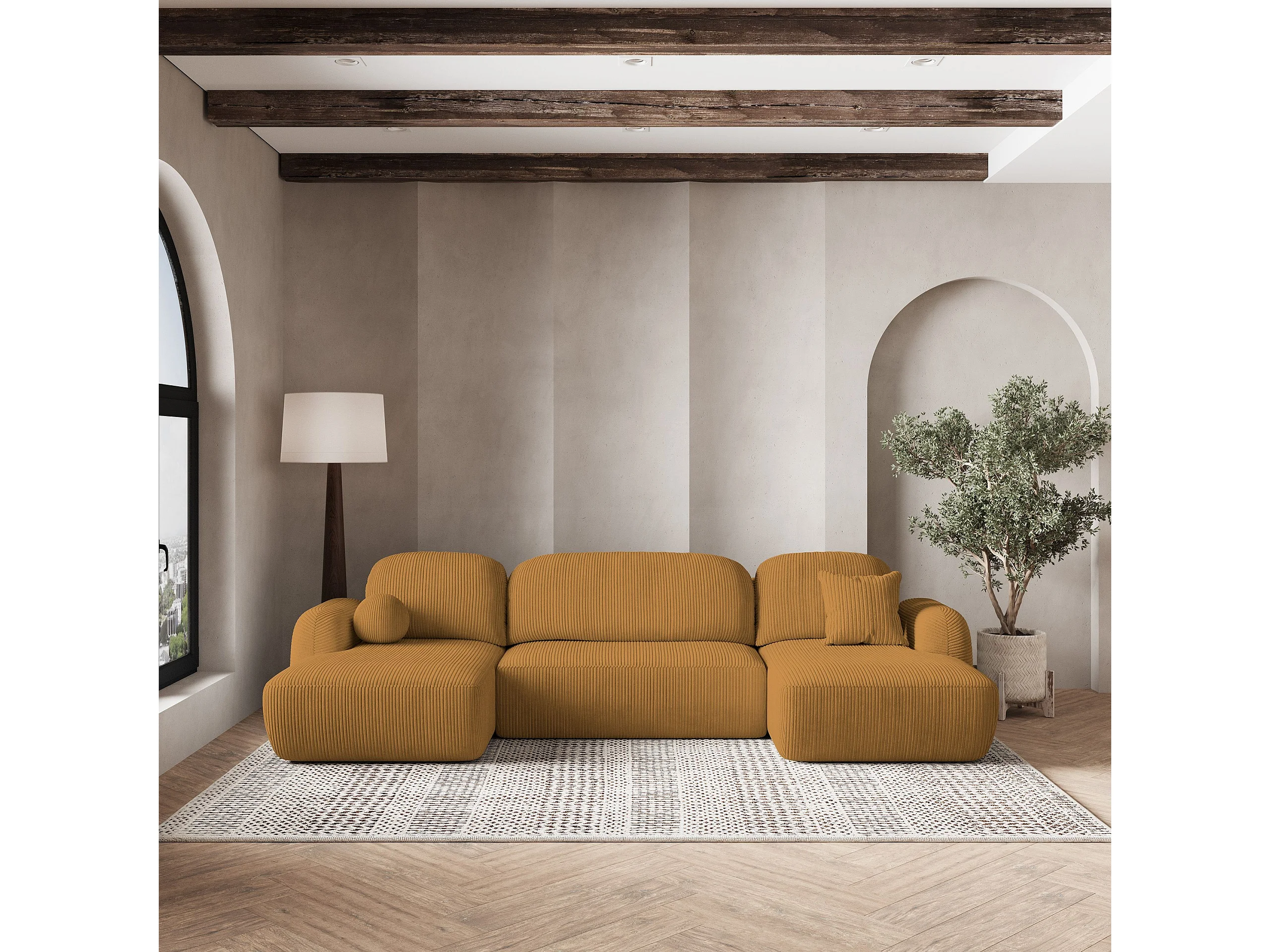 Canapé d'angle SAVONA Jaune en velours côtelé avec fonction de couchage