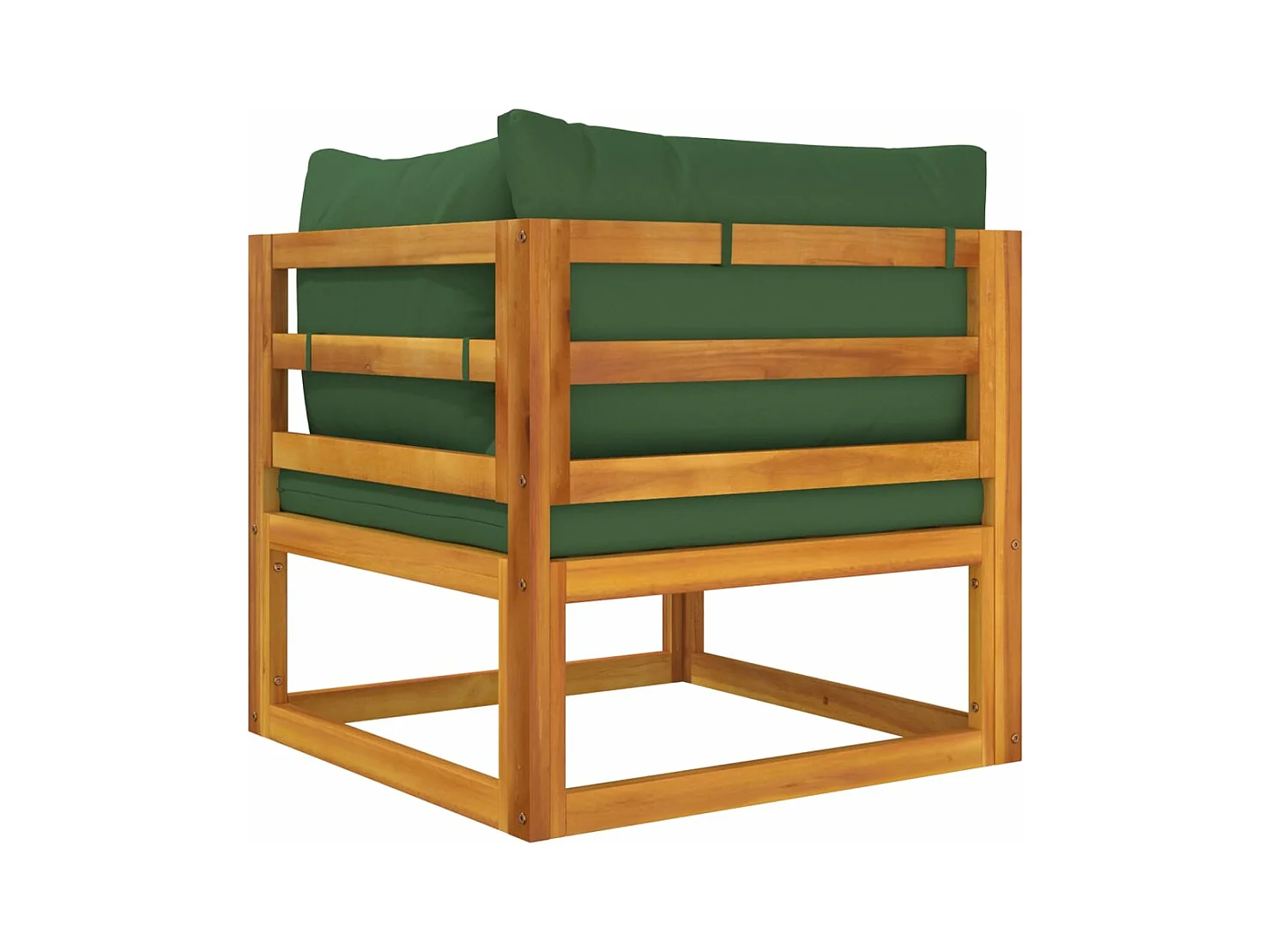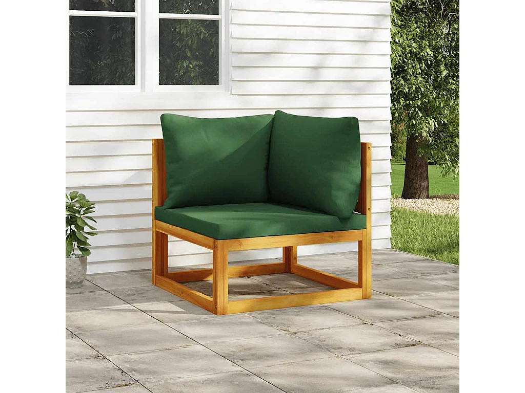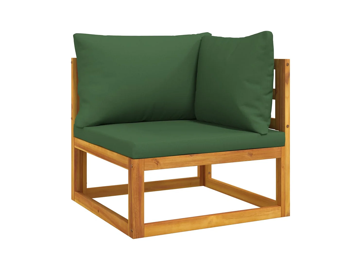 Canapé d'angle sectionnel et coussins verts bois massif acacia