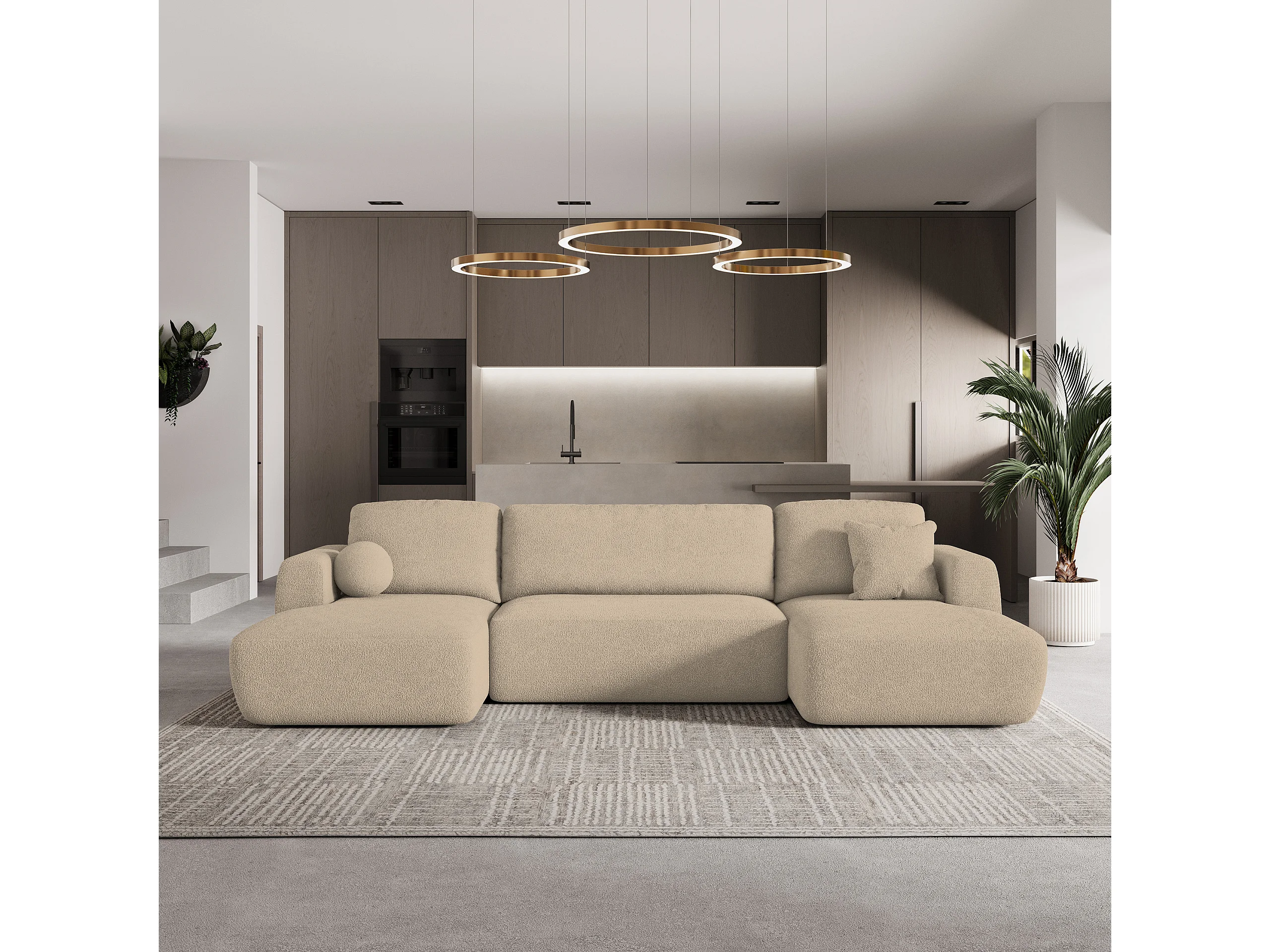Canapé d'angle SENTUM Crème en bouclé avec fonction de couchage