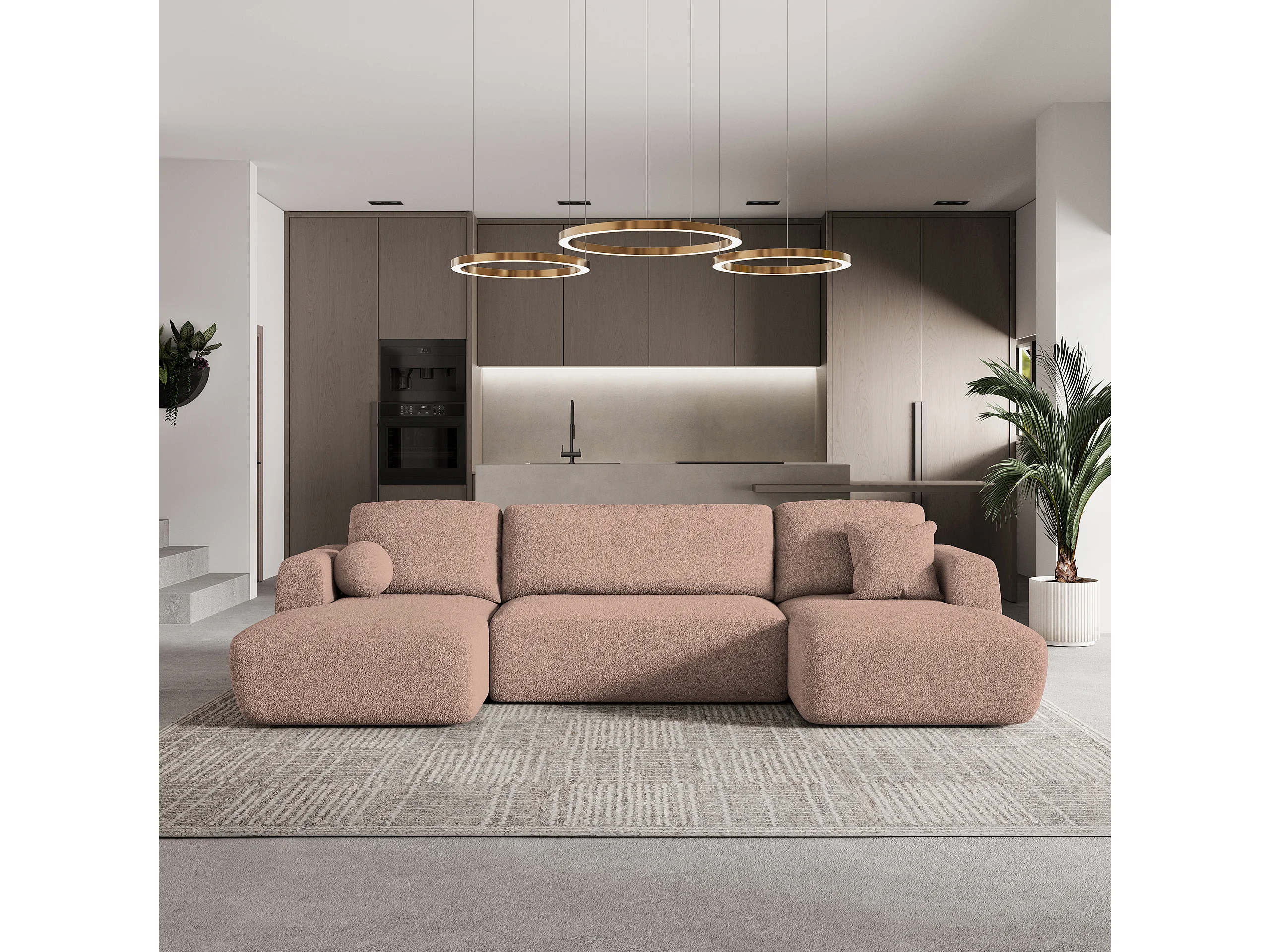 Canapé d'angle SENTUM Rose poudré en bouclé avec fonction de couchage