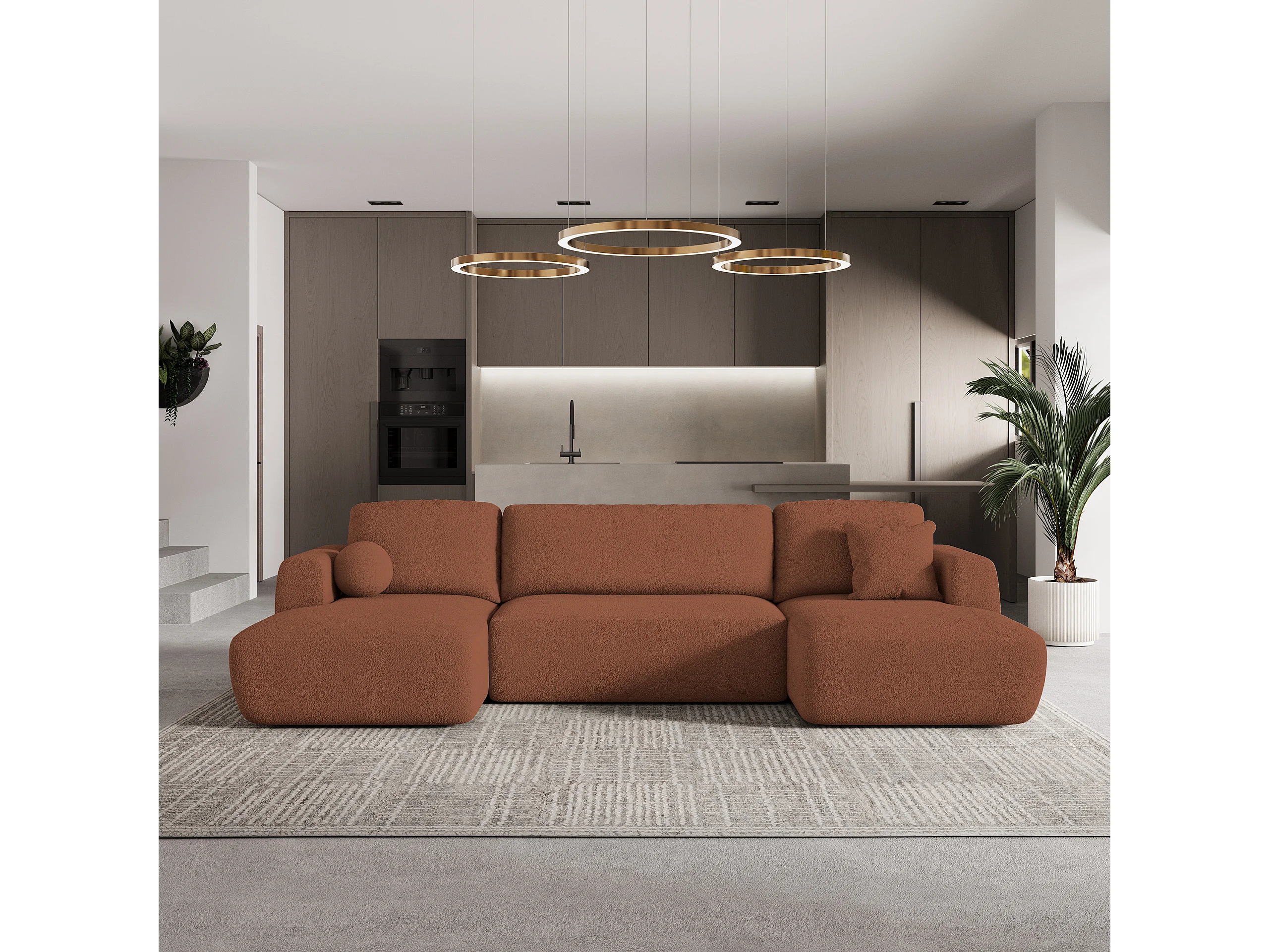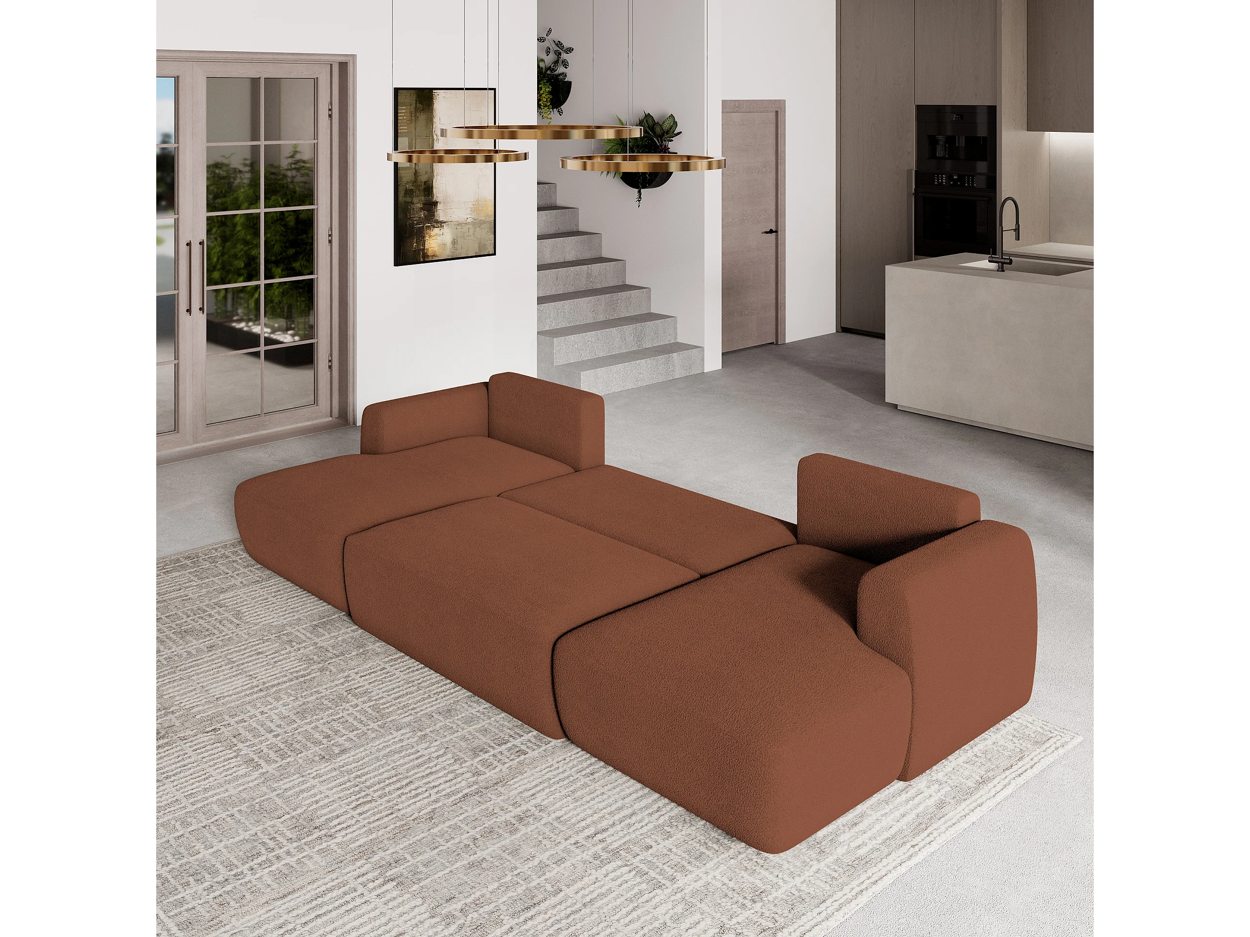 Canapé d'angle SENTUM Terracotta en bouclé avec fonction de couchage