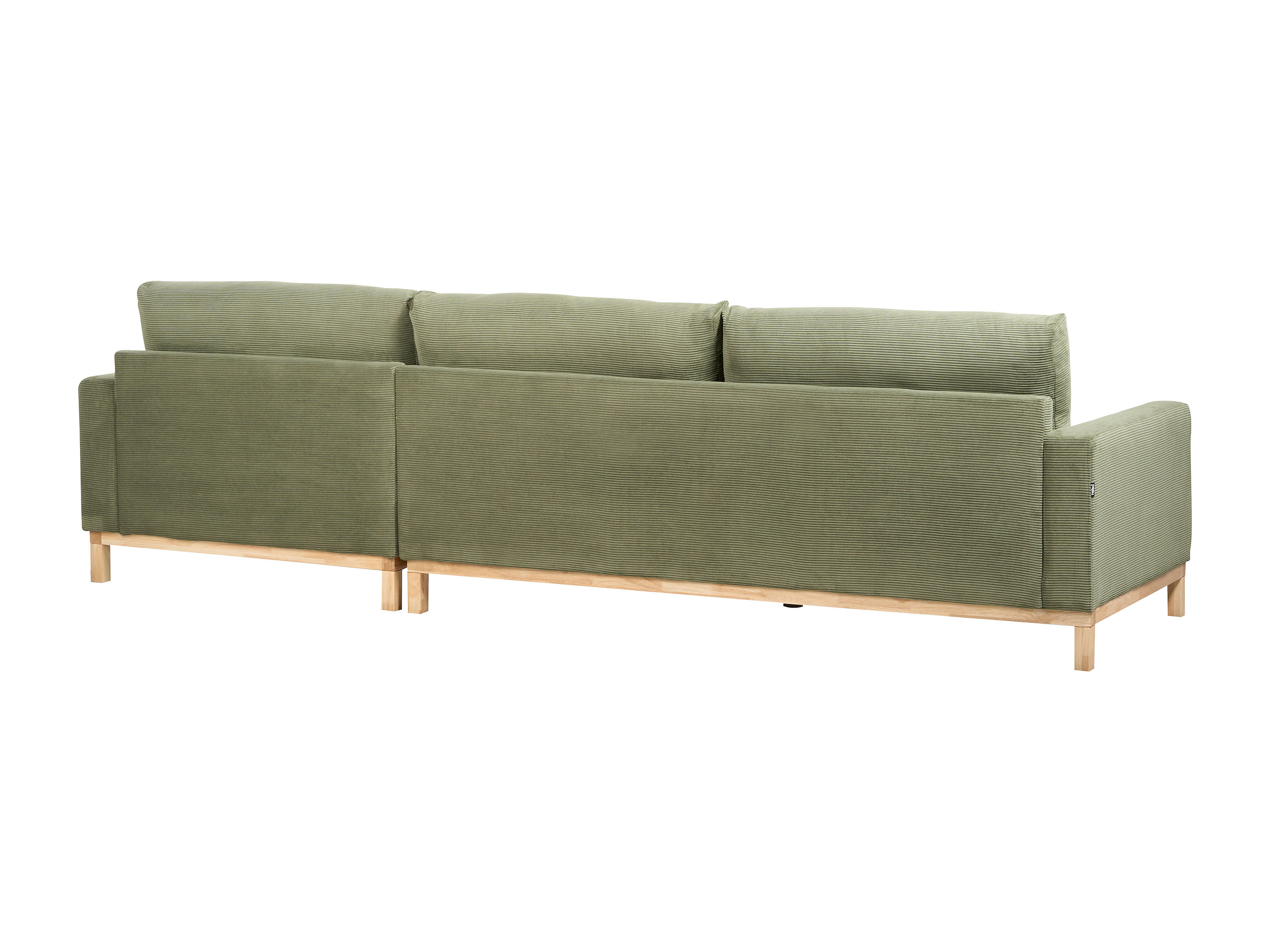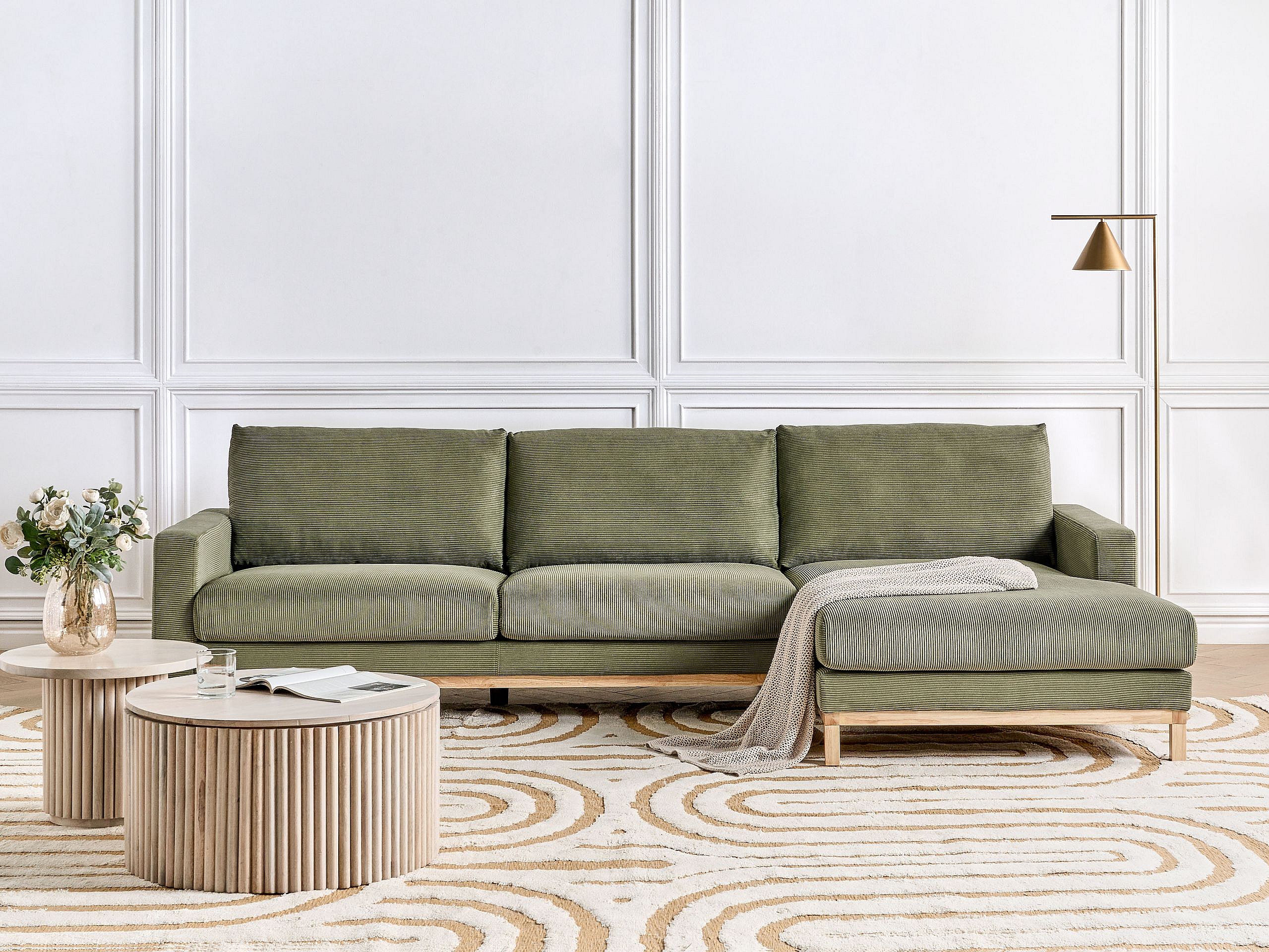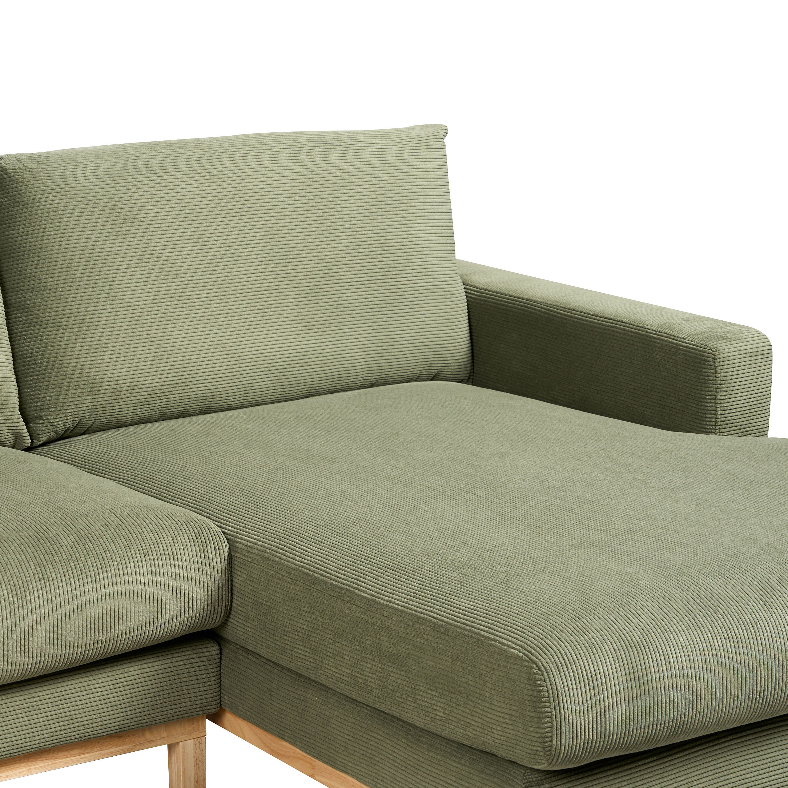 Canapé d'Angle à droite en Velours Côtelé Pieds en Bois Vert Siggard