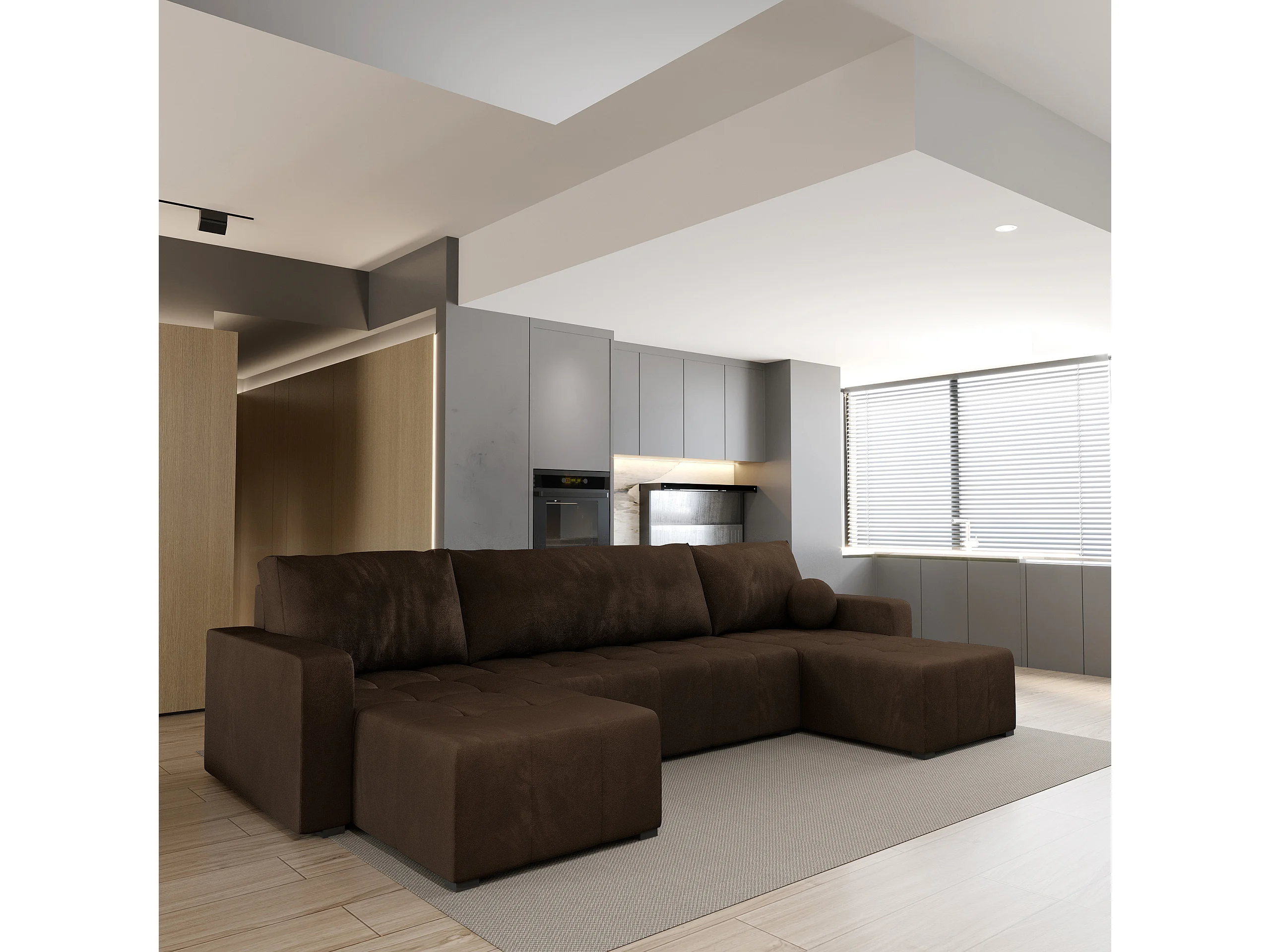 Canapé d'angle TOLARI Marron en peluche avec fonction de couchage