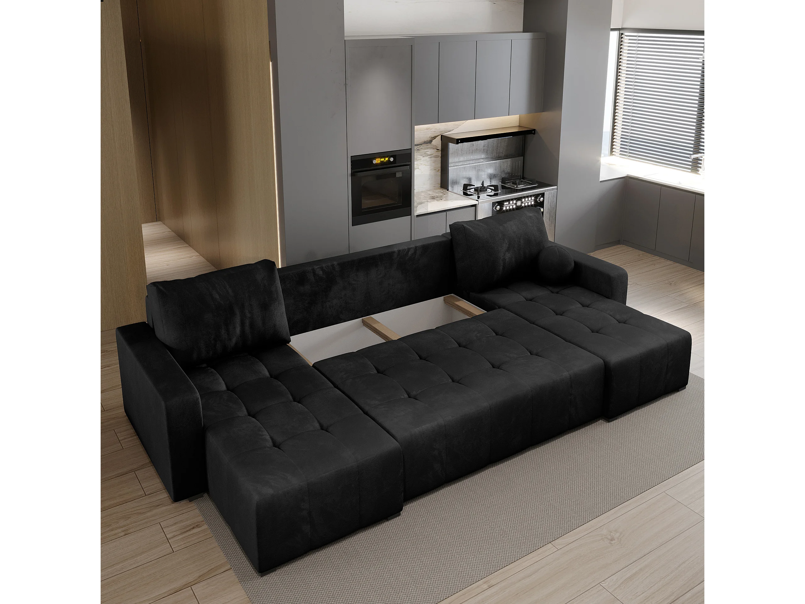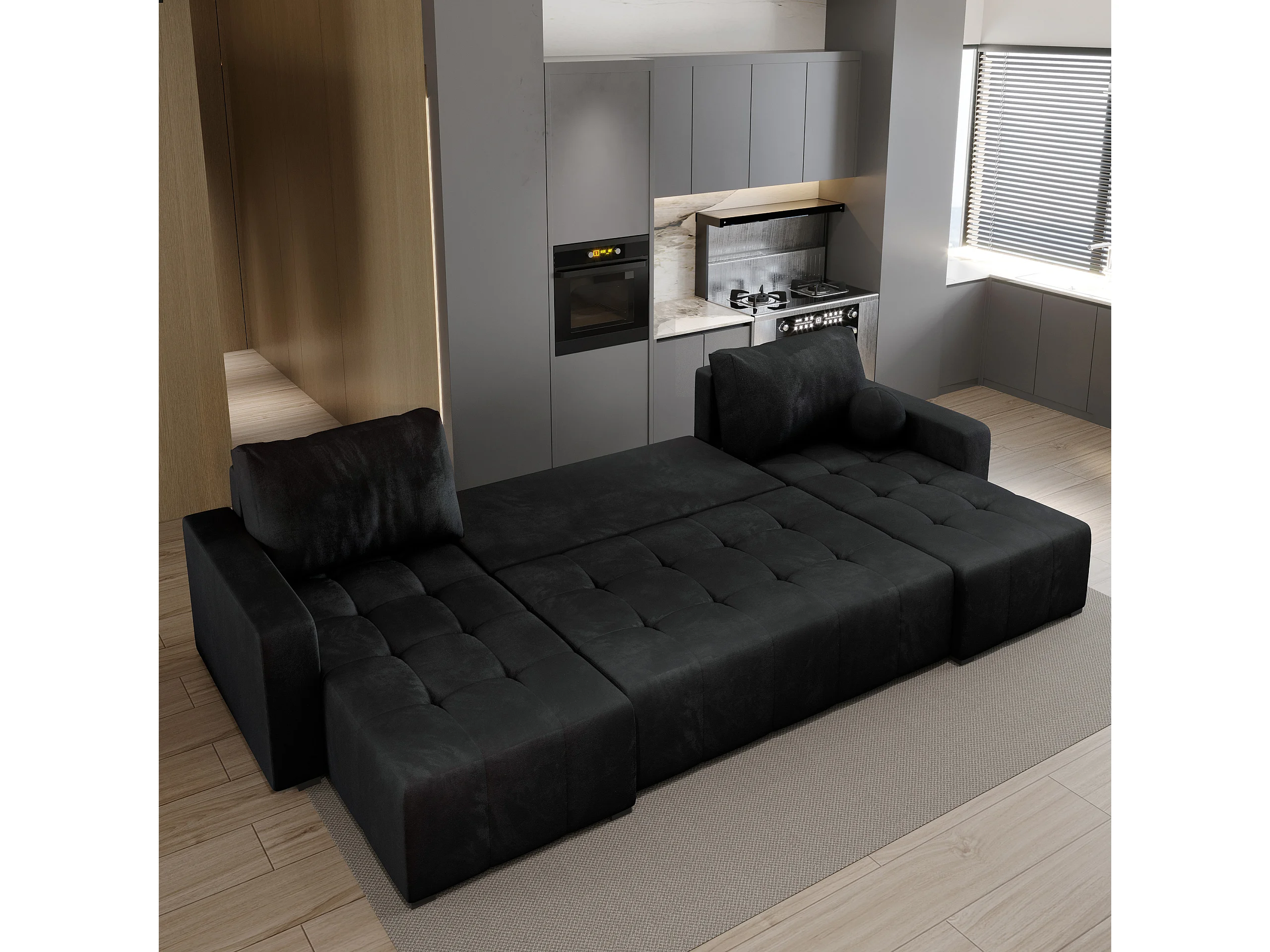 Canapé d'angle TOLARI Noir en peluche avec fonction de couchage
