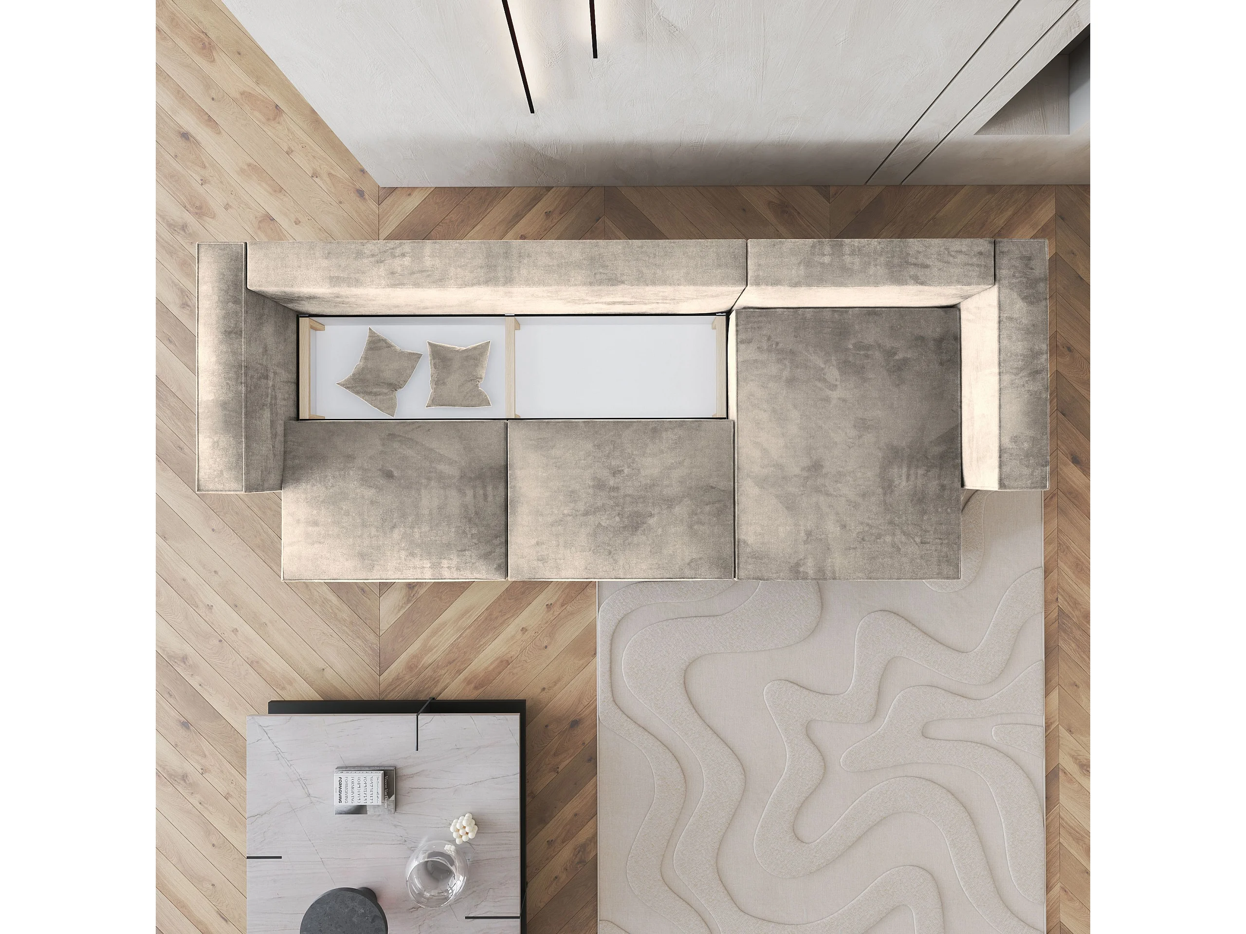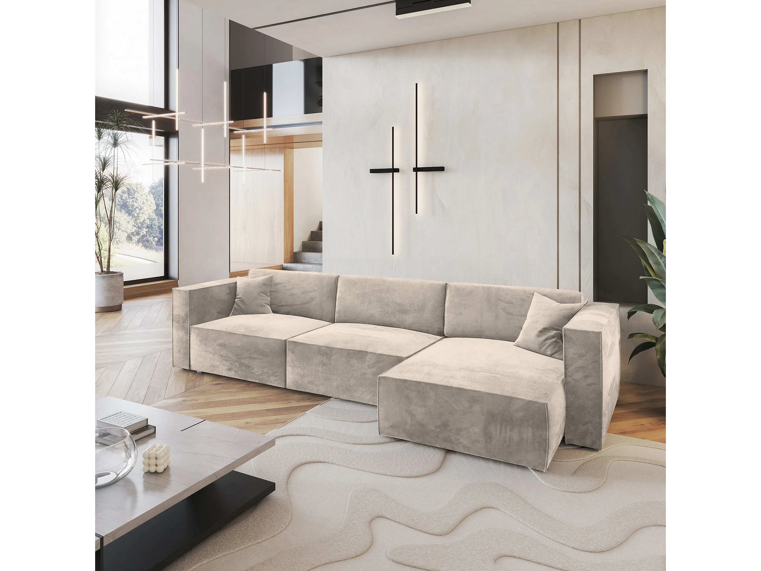 Canapé d'angle TOLMO Crème en velours avec fonction de couchage