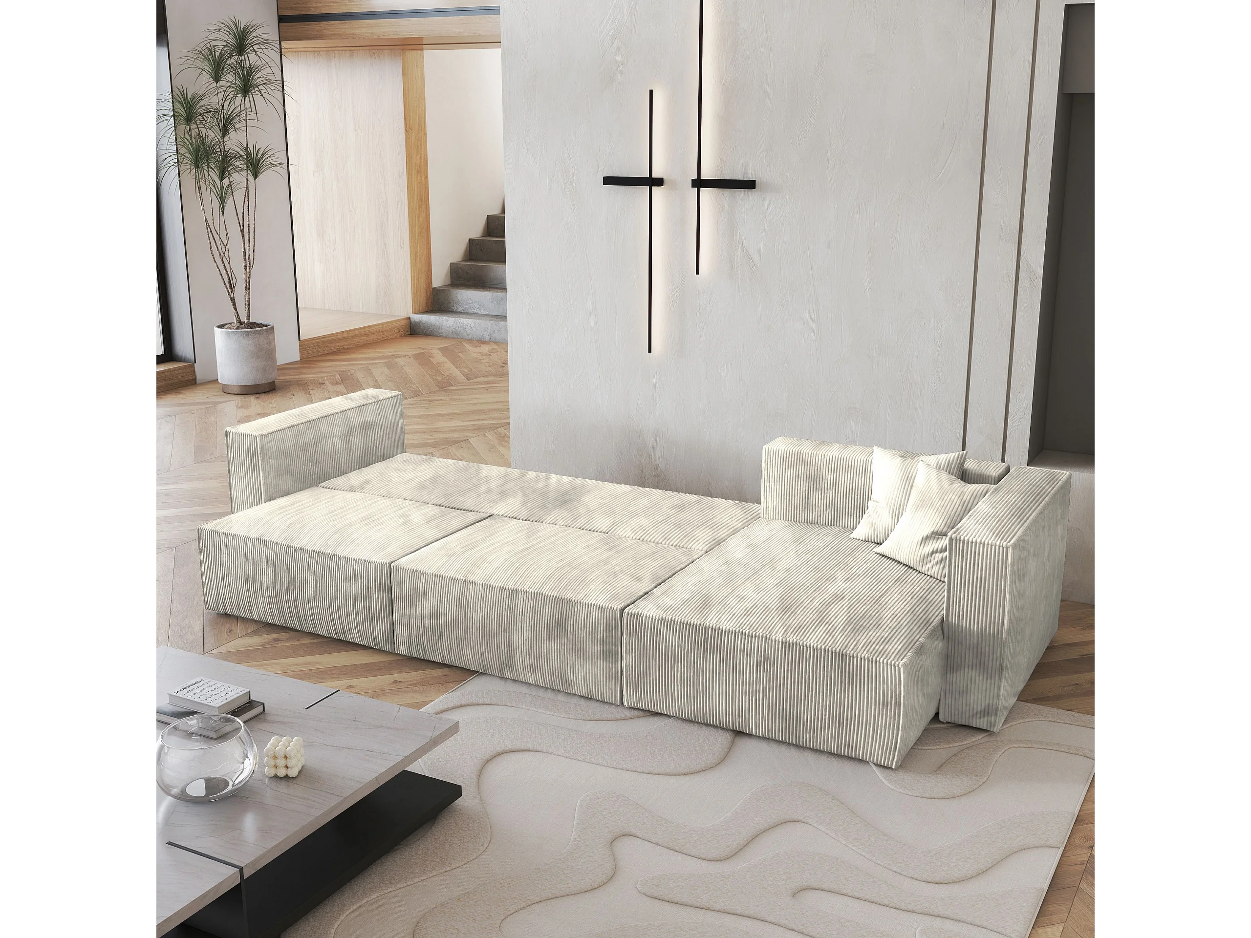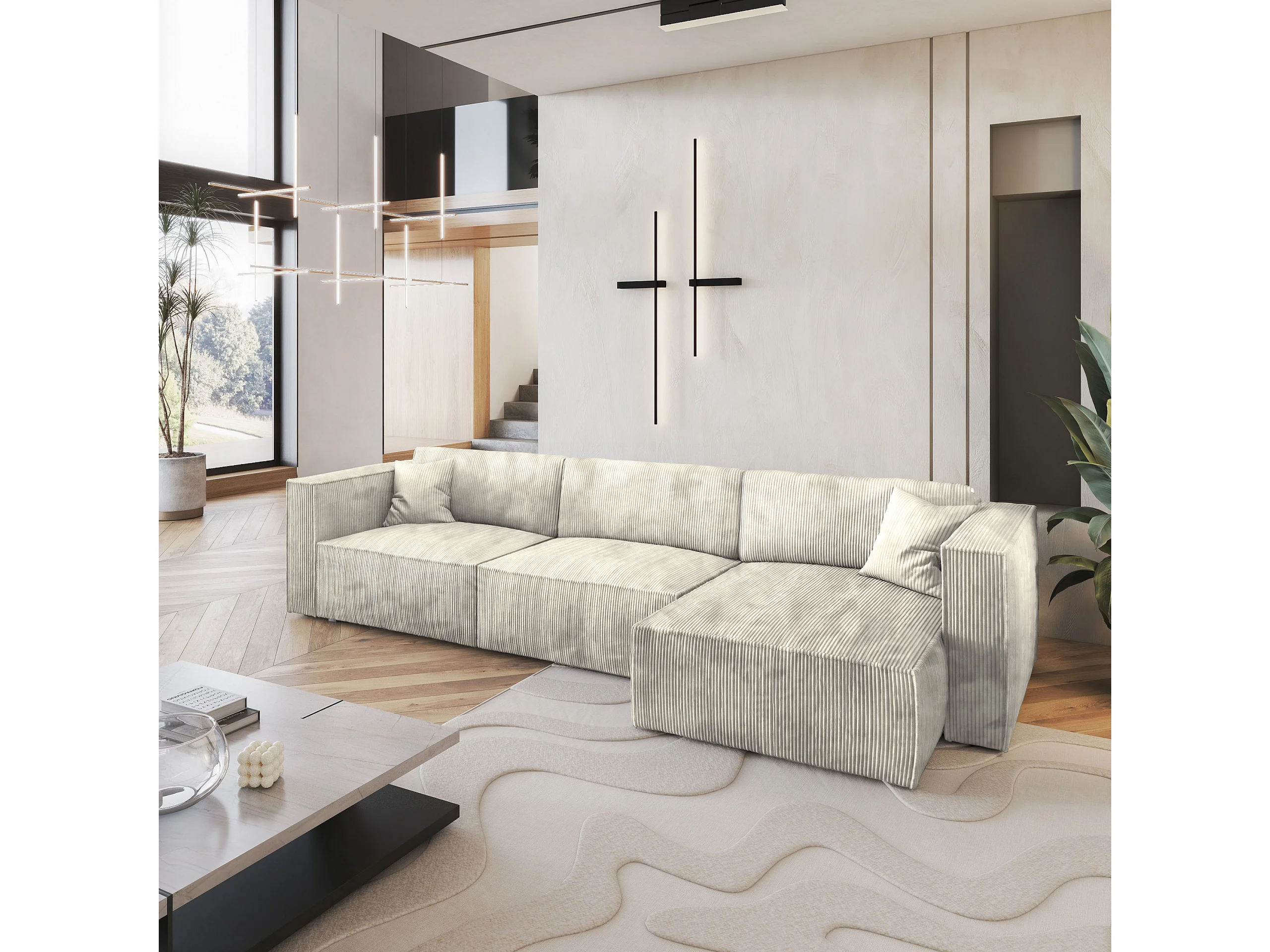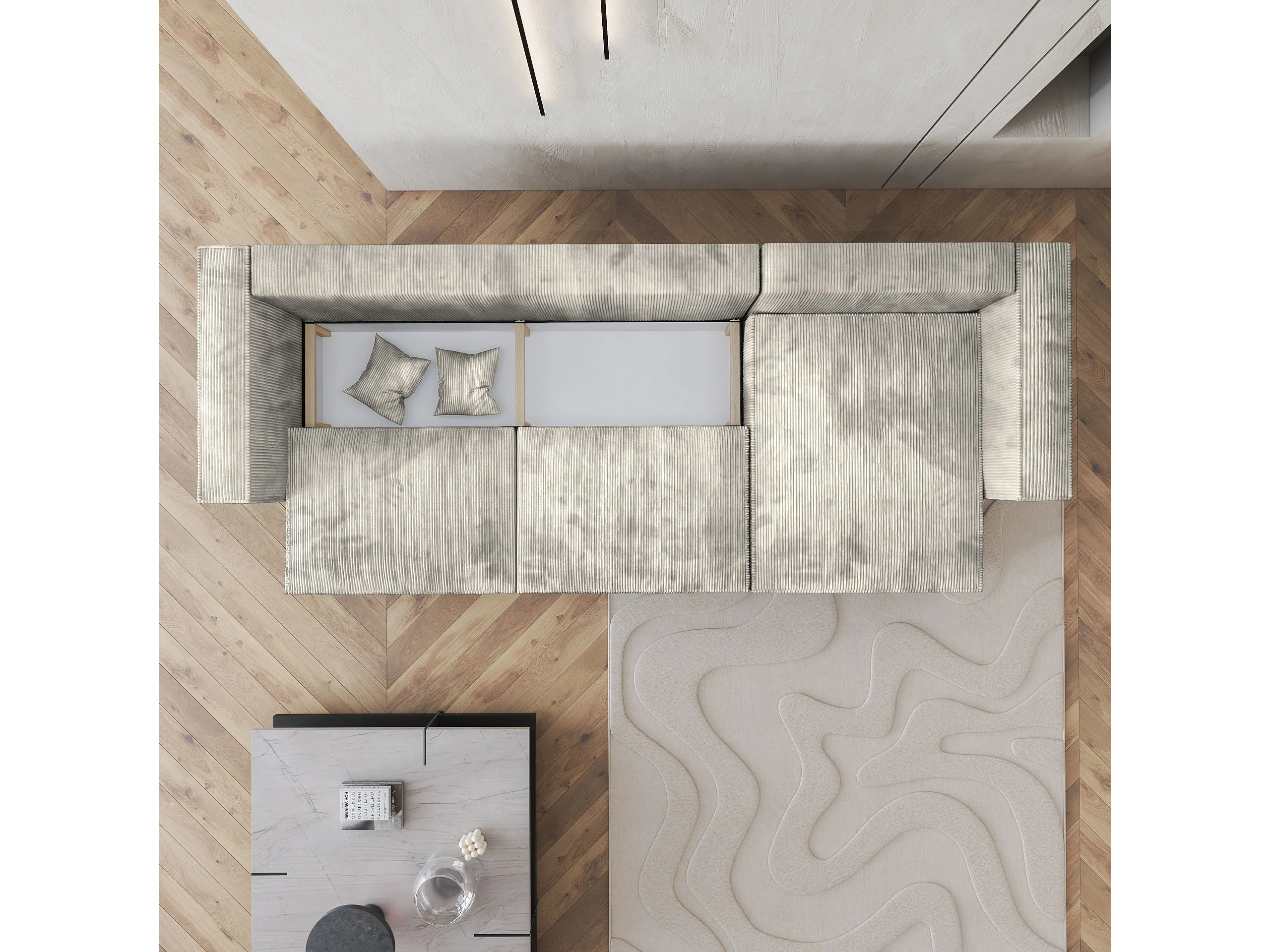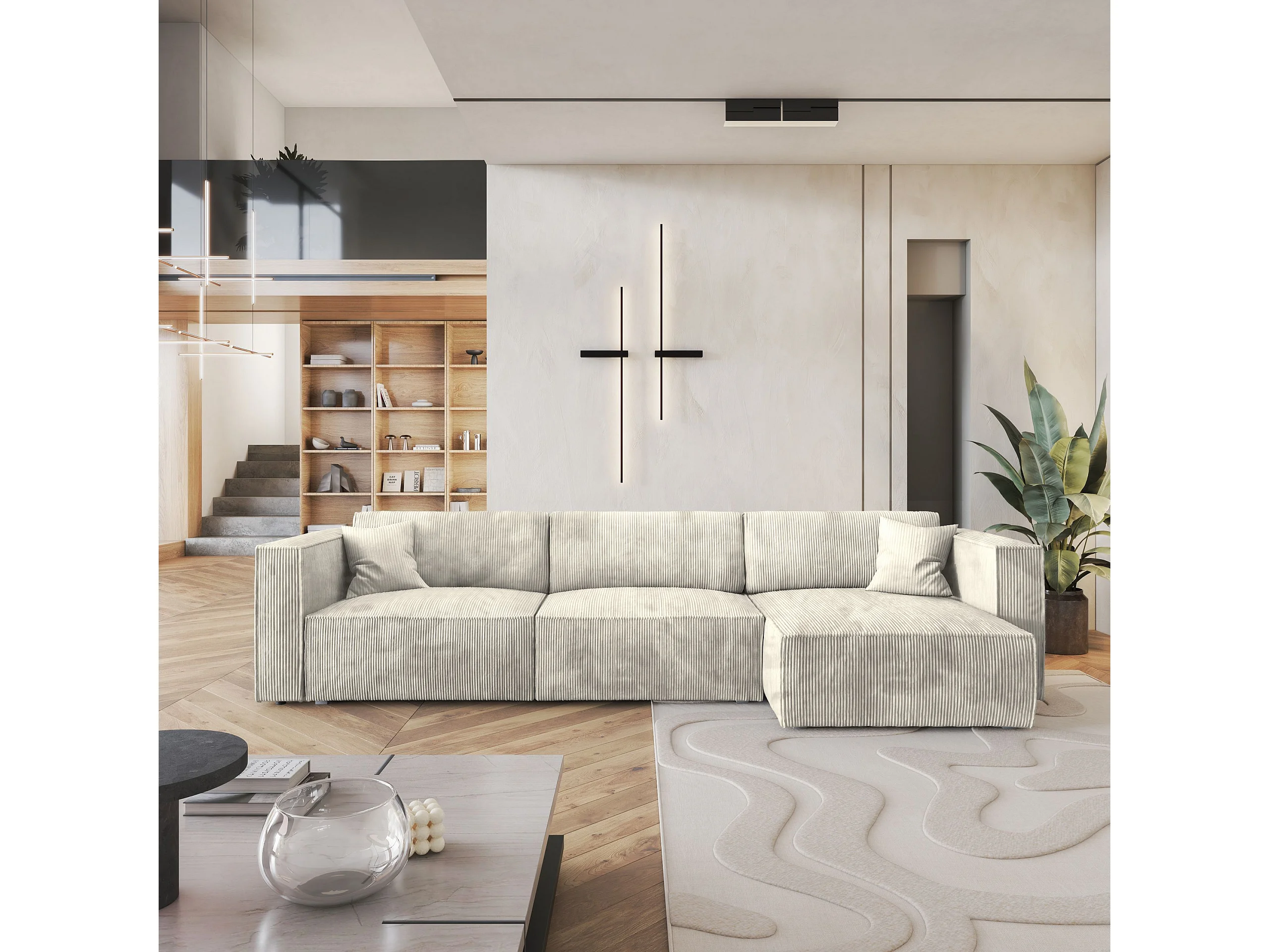 Canapé d'angle TOLMO Crème en velours côtelé avec fonction de couchage