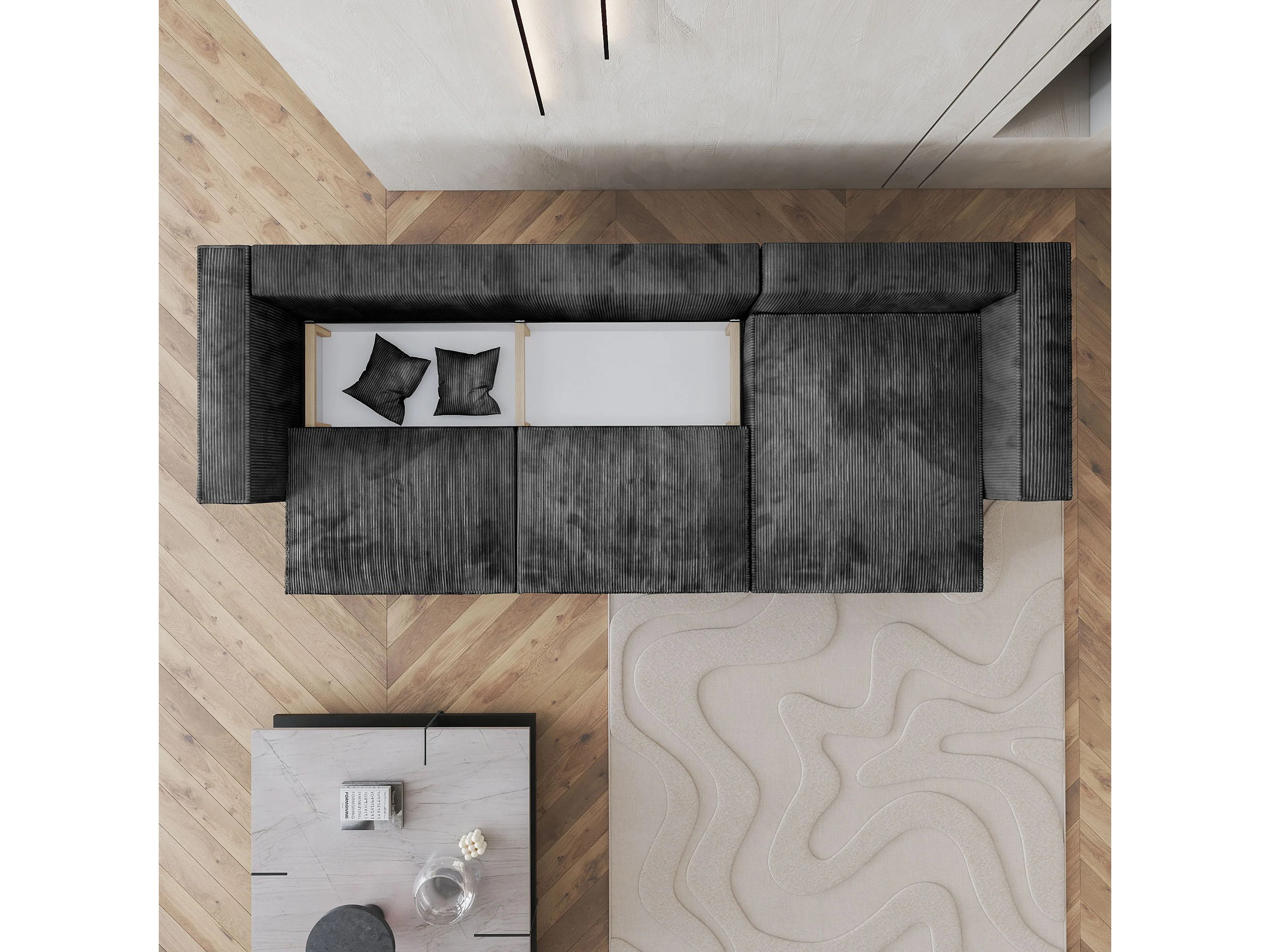 Canapé d'angle TOLMO Gris anthracite en velours côtelé avec fonction de couchage