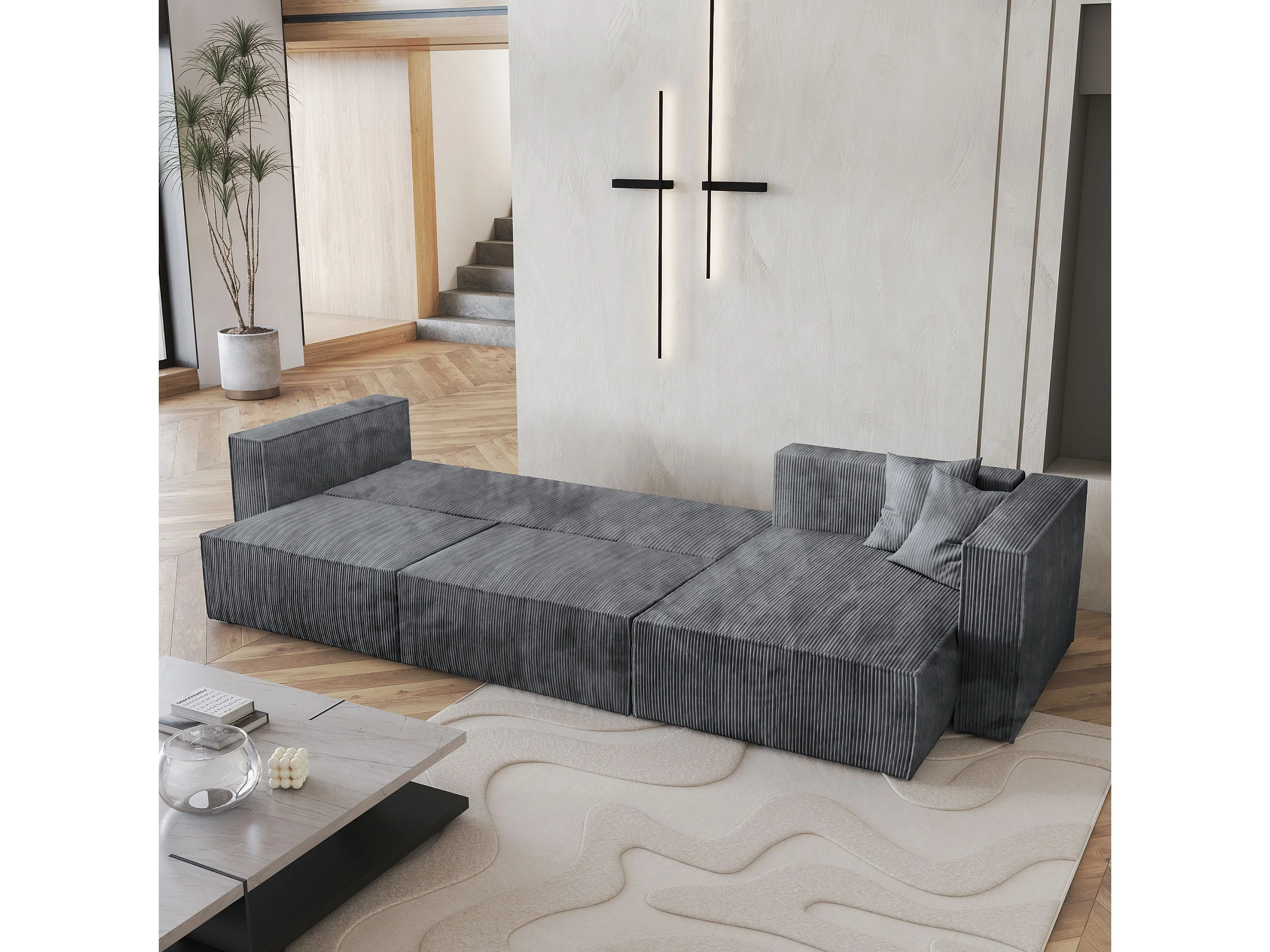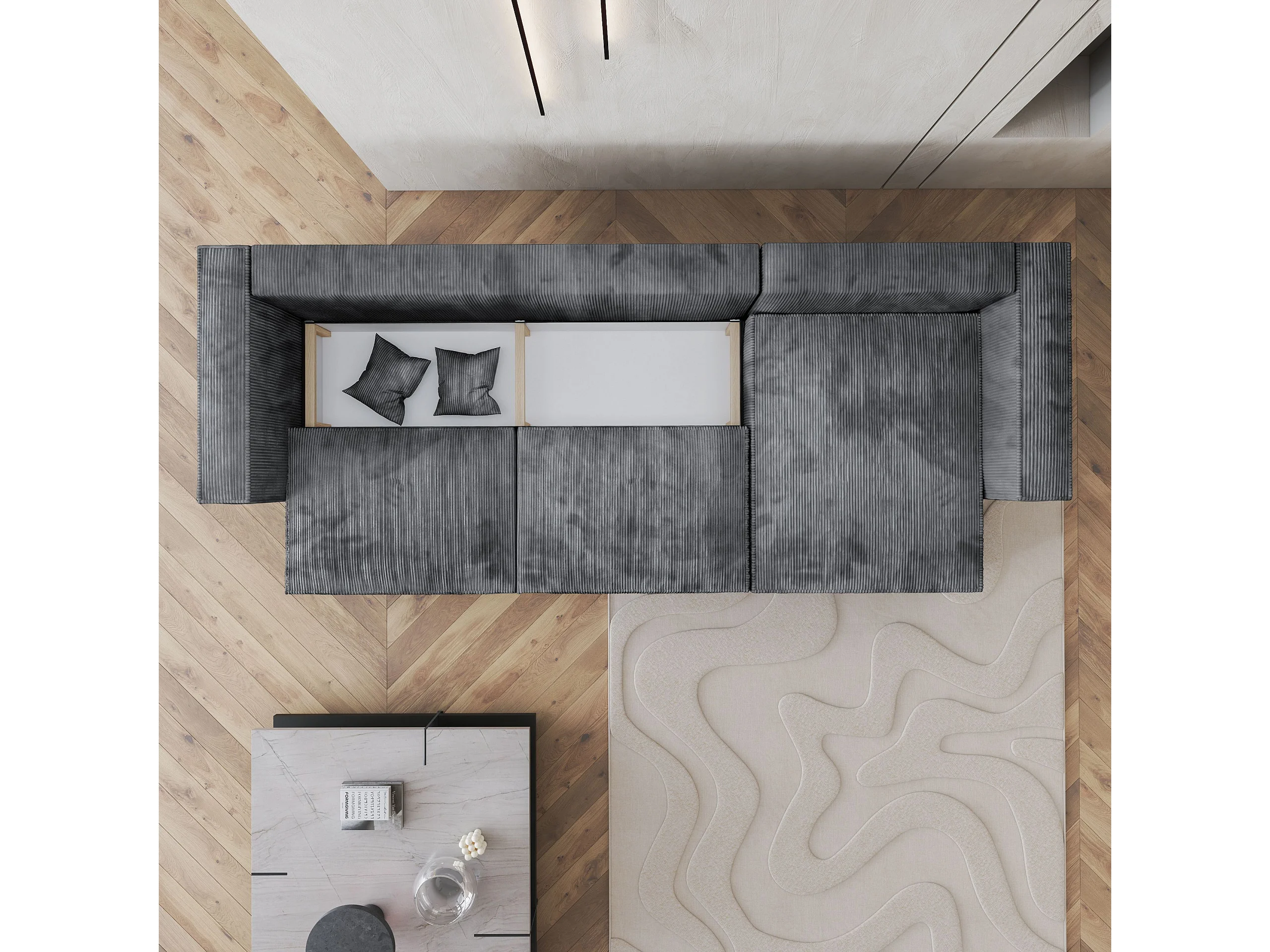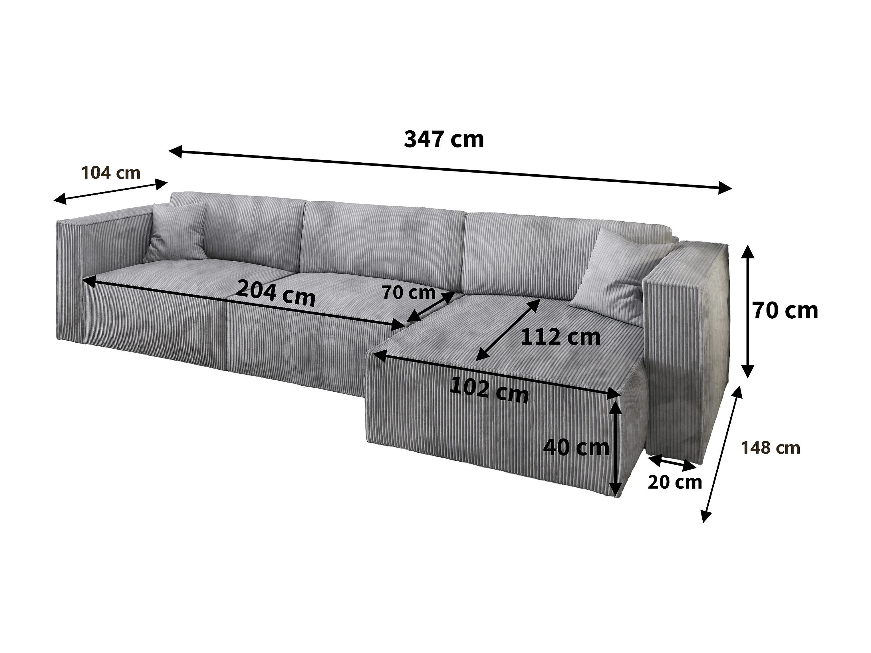 Canapé d'angle TOLMO Gris en velours côtelé avec fonction de couchage