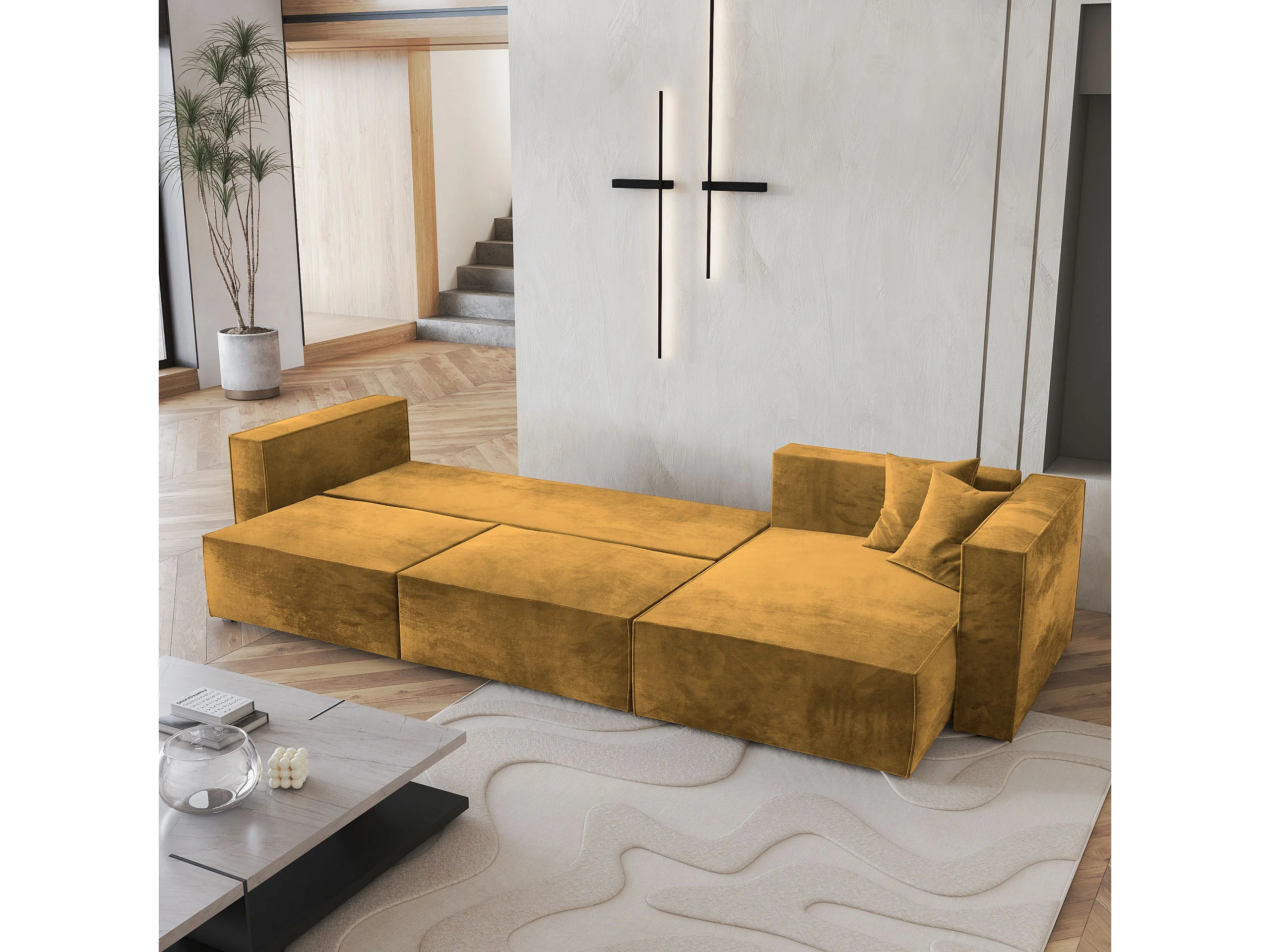 Canapé d'angle TOLMO Jaune en velours avec fonction de couchage