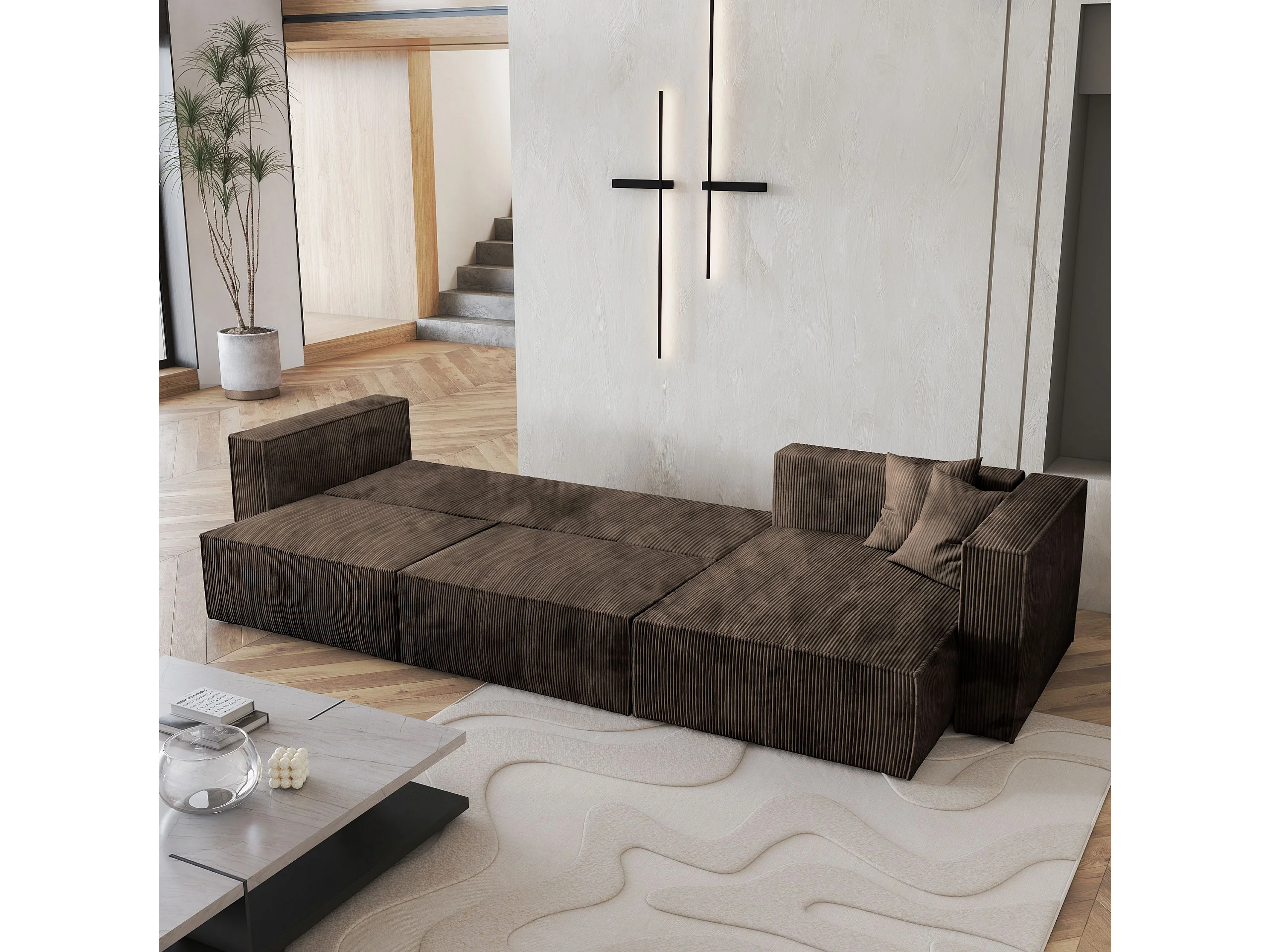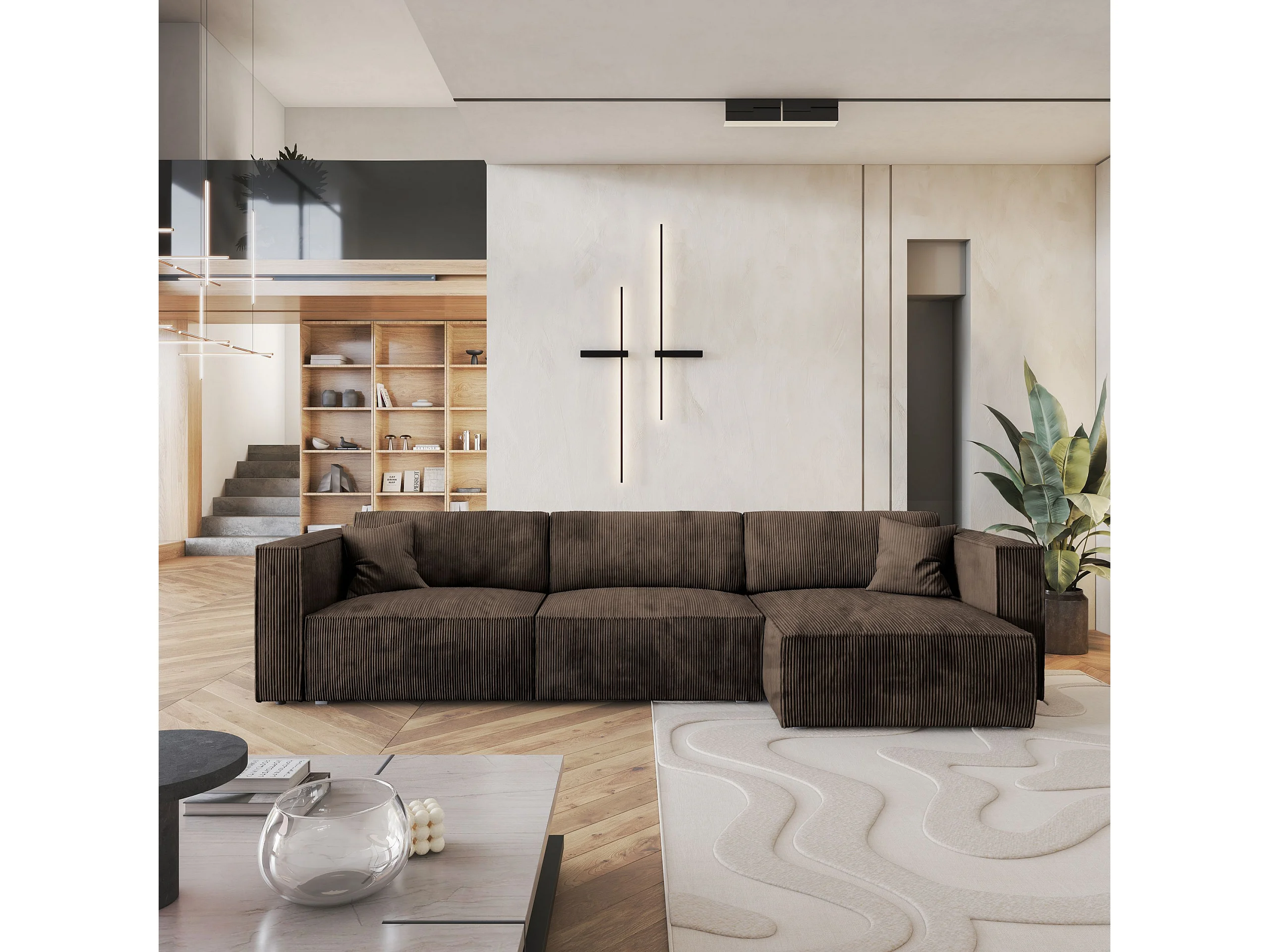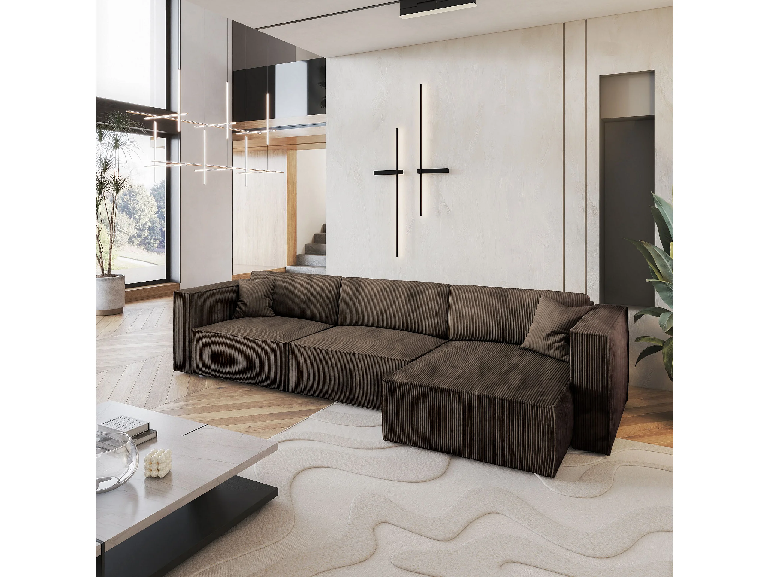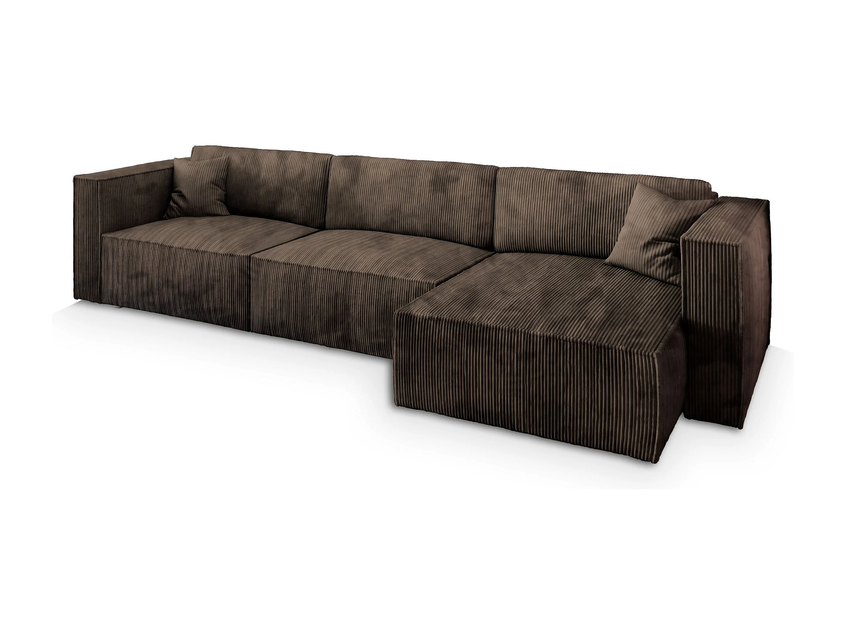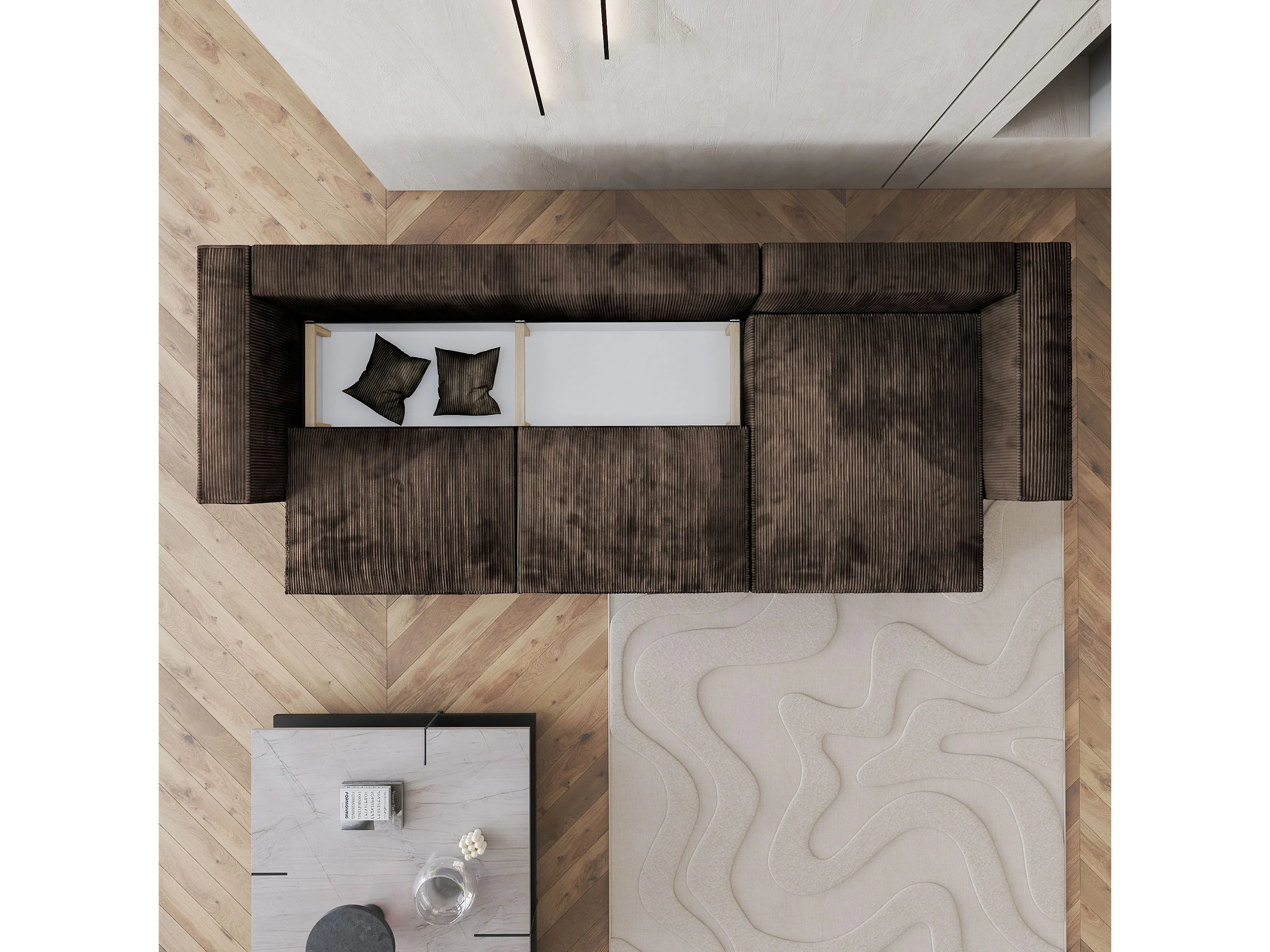 Canapé d'angle TOLMO Marron en velours côtelé avec fonction de couchage