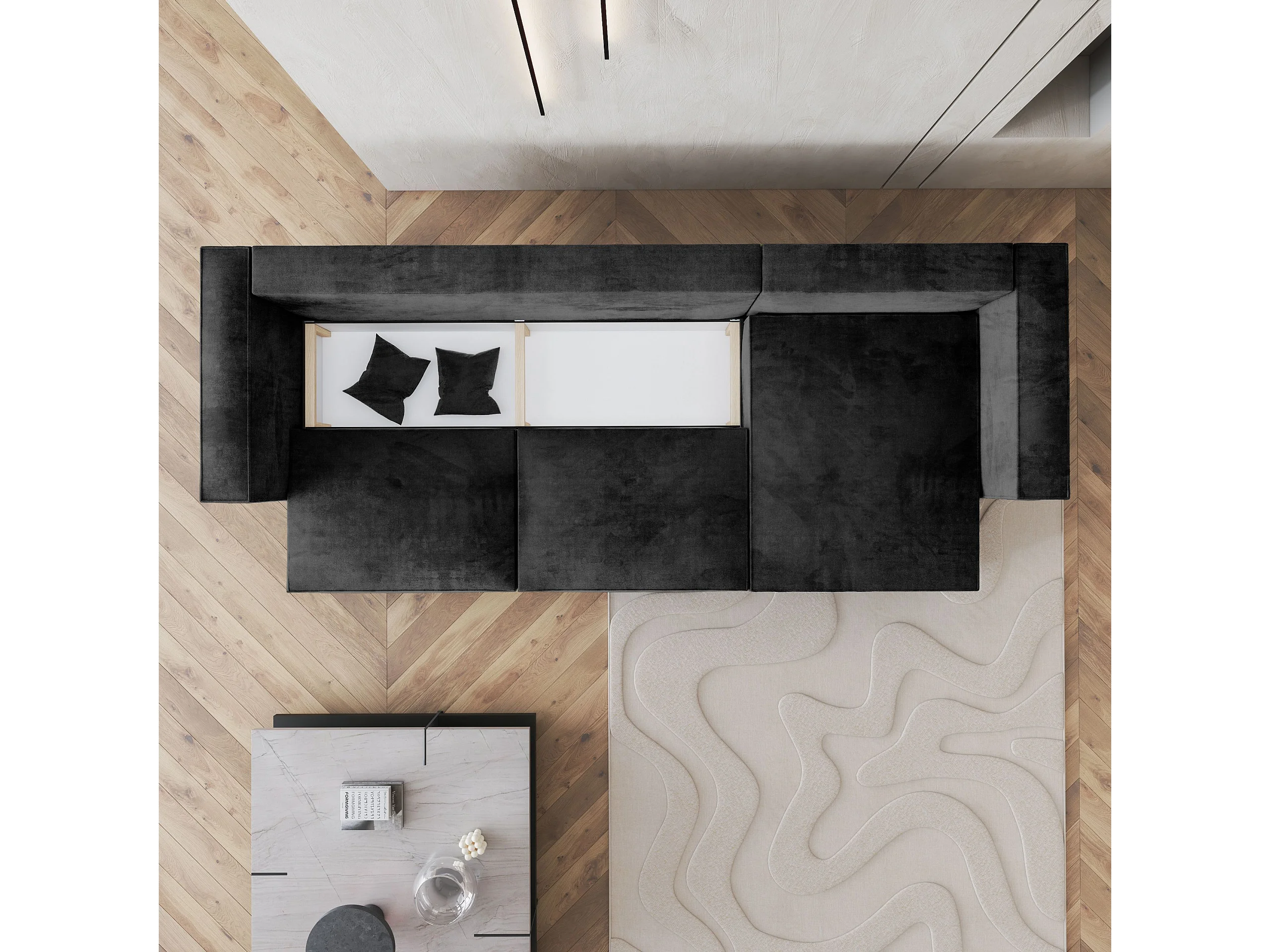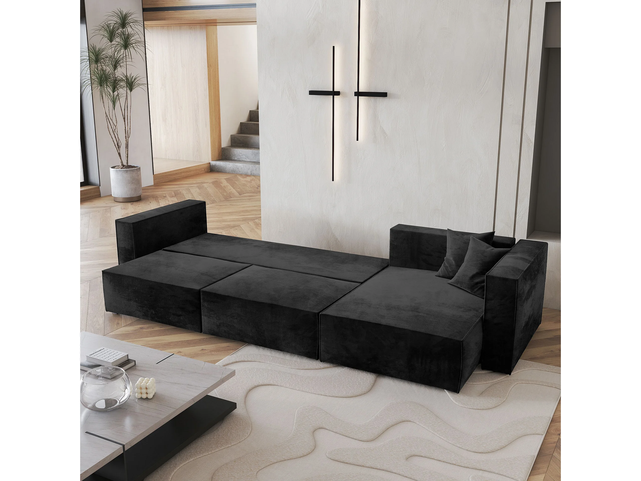 Canapé d'angle TOLMO Noir en velours avec fonction de couchage