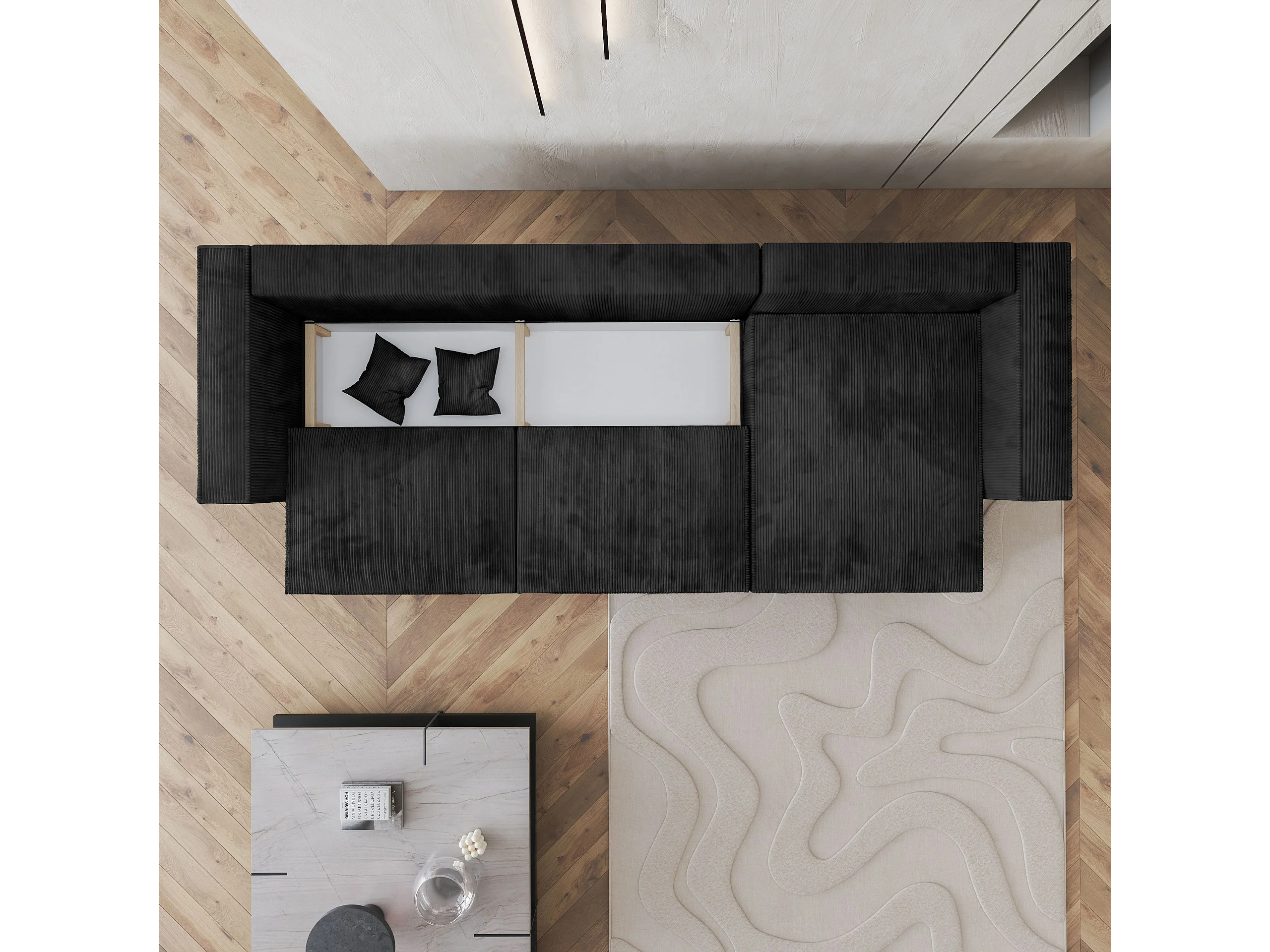 Canapé d'angle TOLMO Noir en velours côtelé avec fonction de couchage