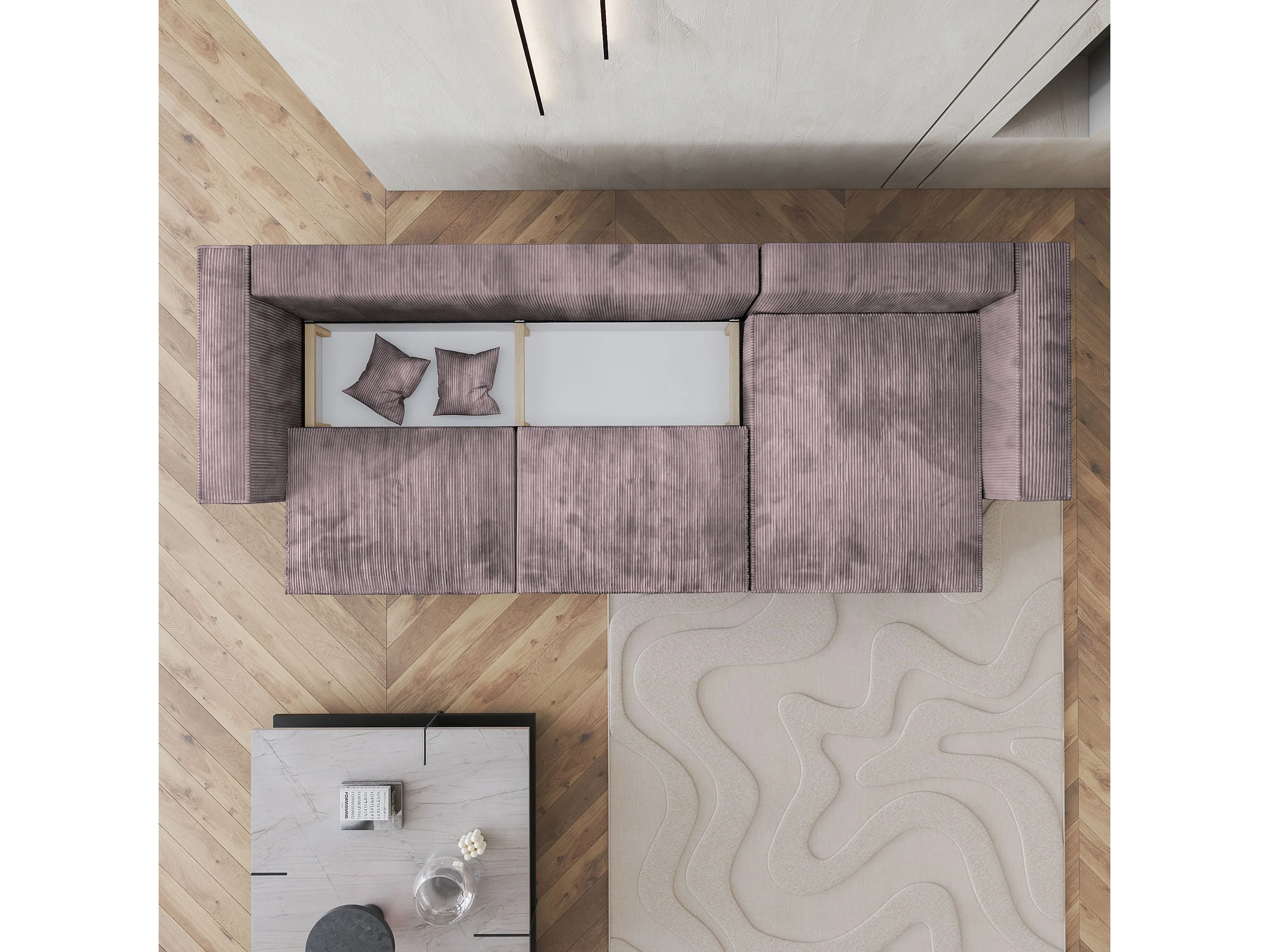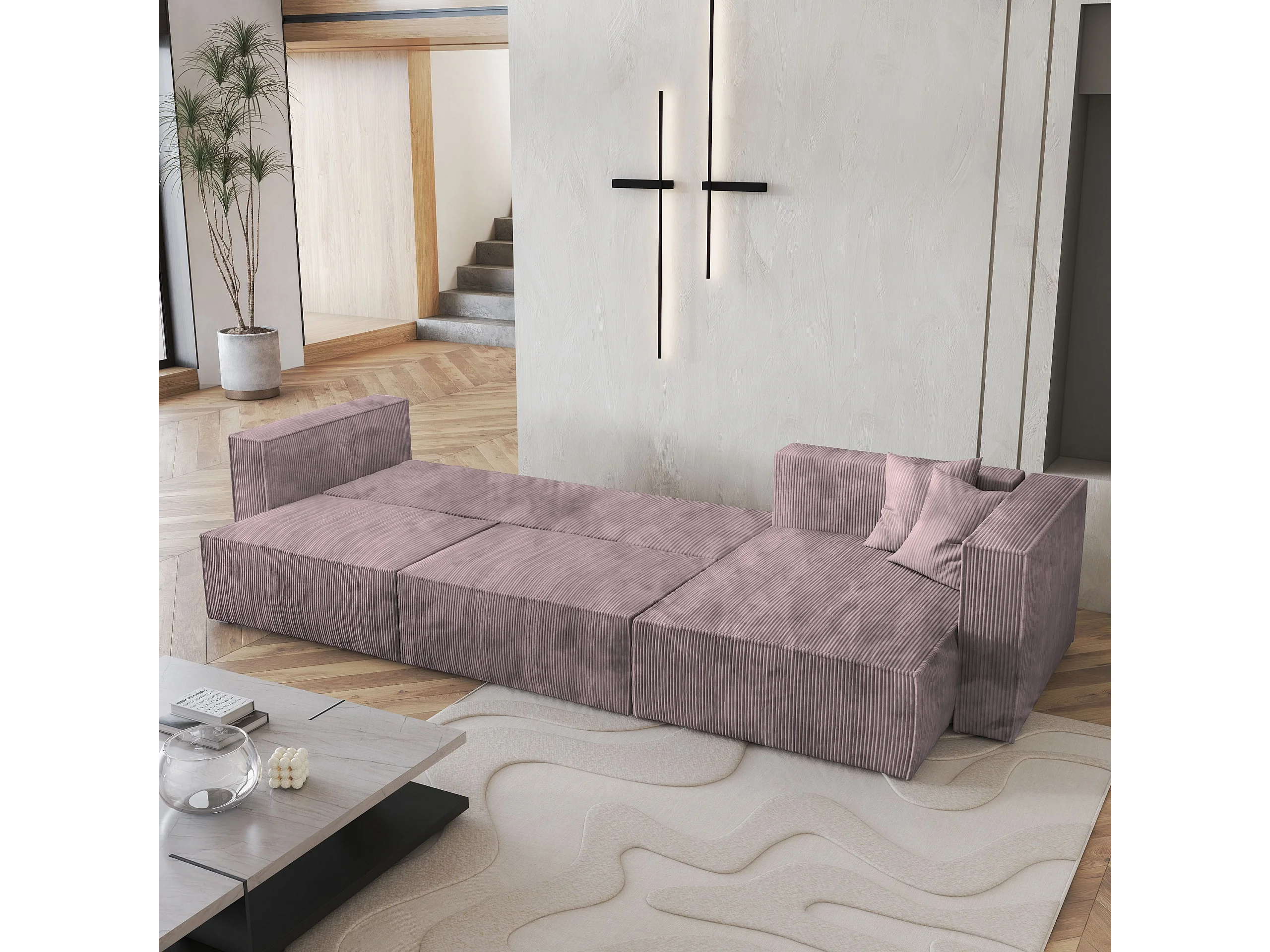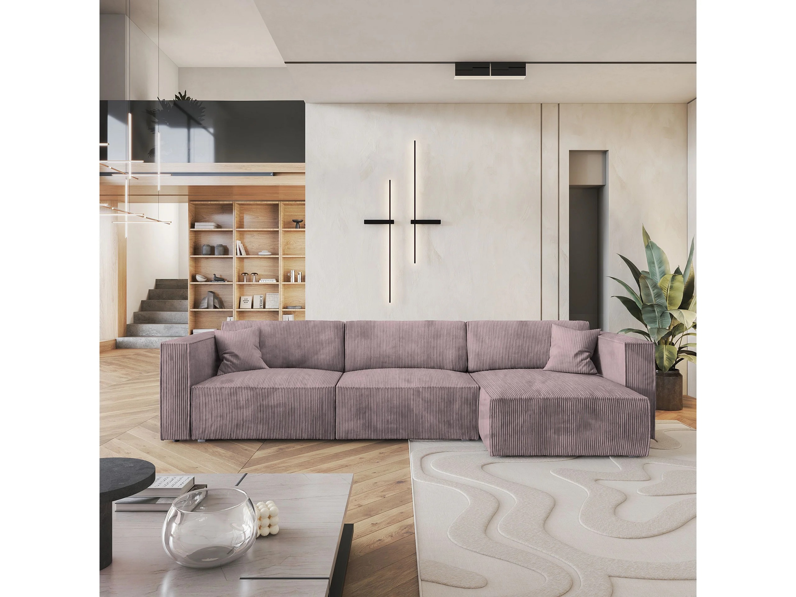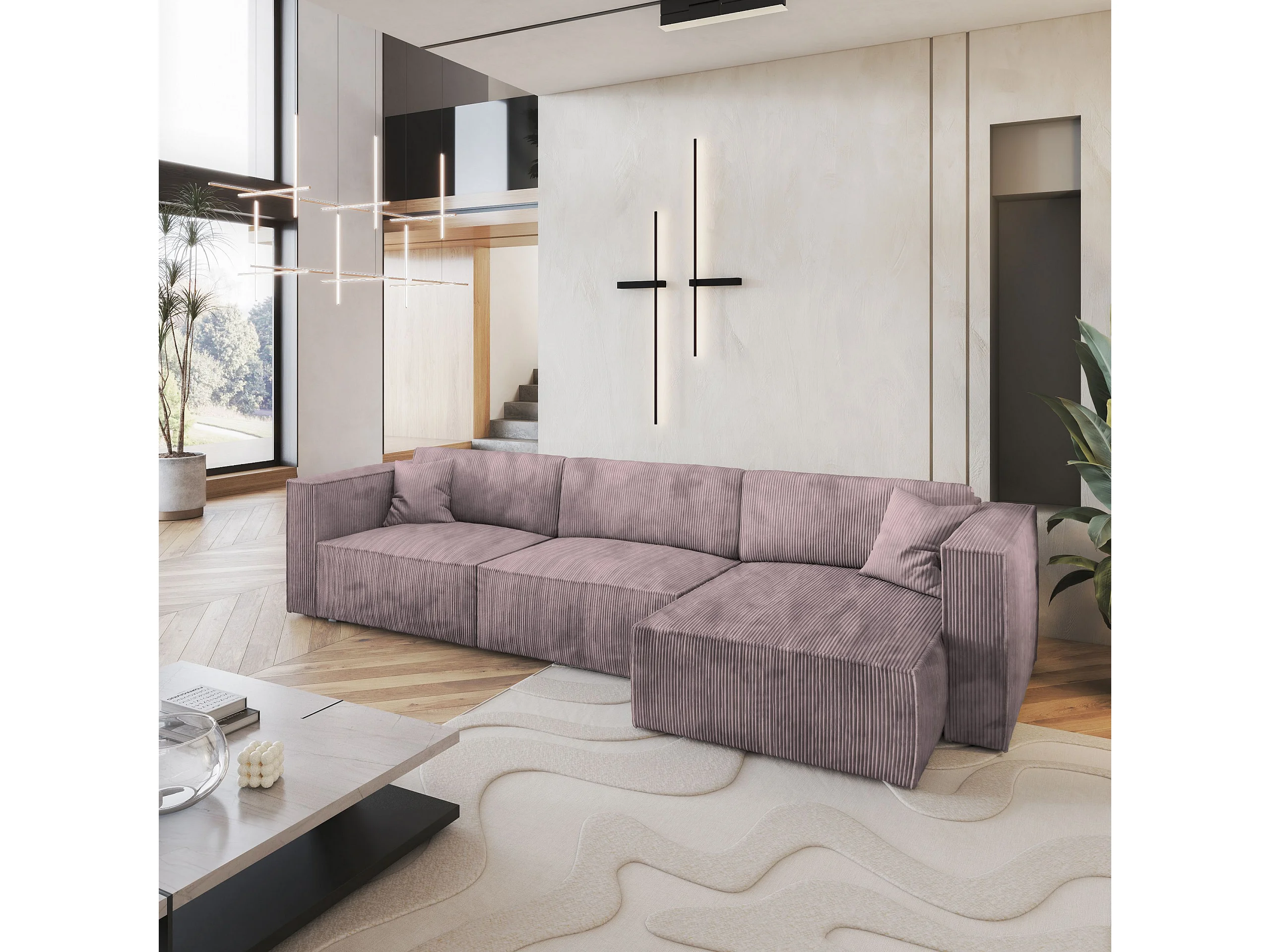 Canapé d'angle TOLMO Parme en velours côtelé avec fonction de couchage