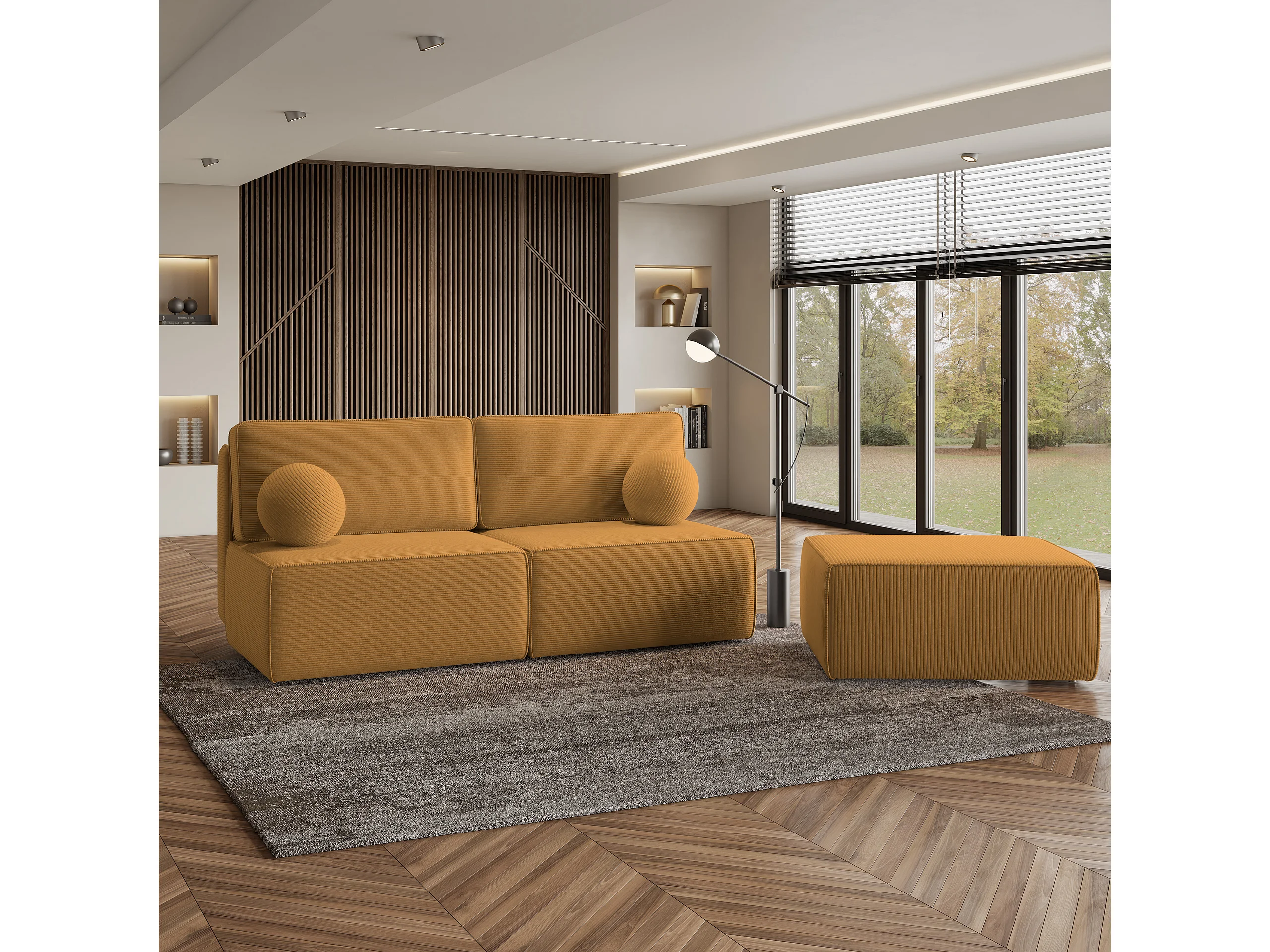 Canapé d'angle VARNA Jaune en velours côtelé avec fonction de couchage