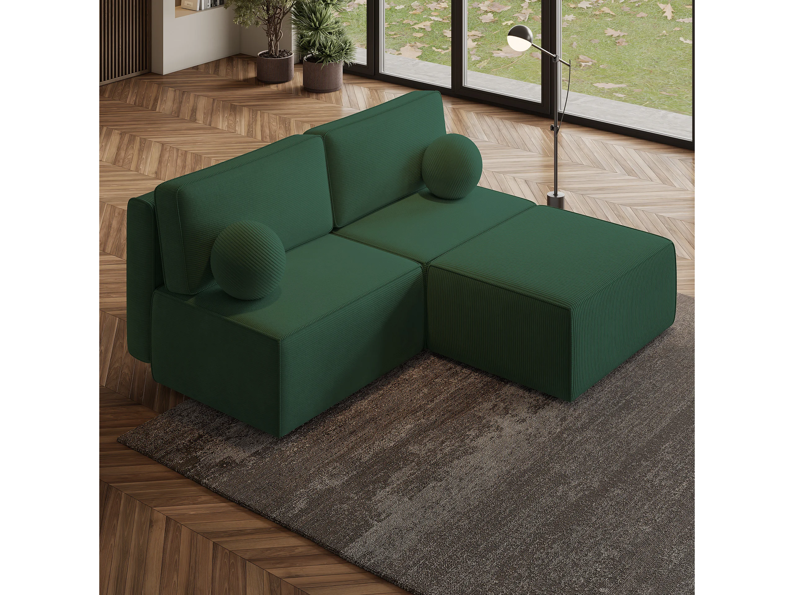 Canapé d'angle VARNA Vert en velours côtelé avec fonction de couchage