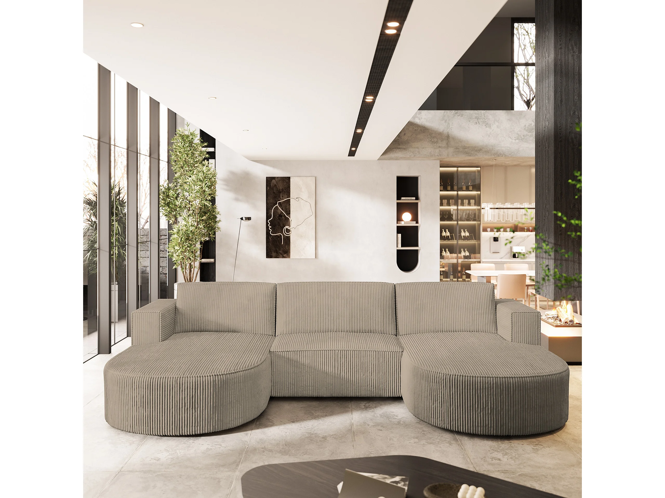 Canapé d'angle VEZZO Beige en velours côtelé avec fonction de couchage