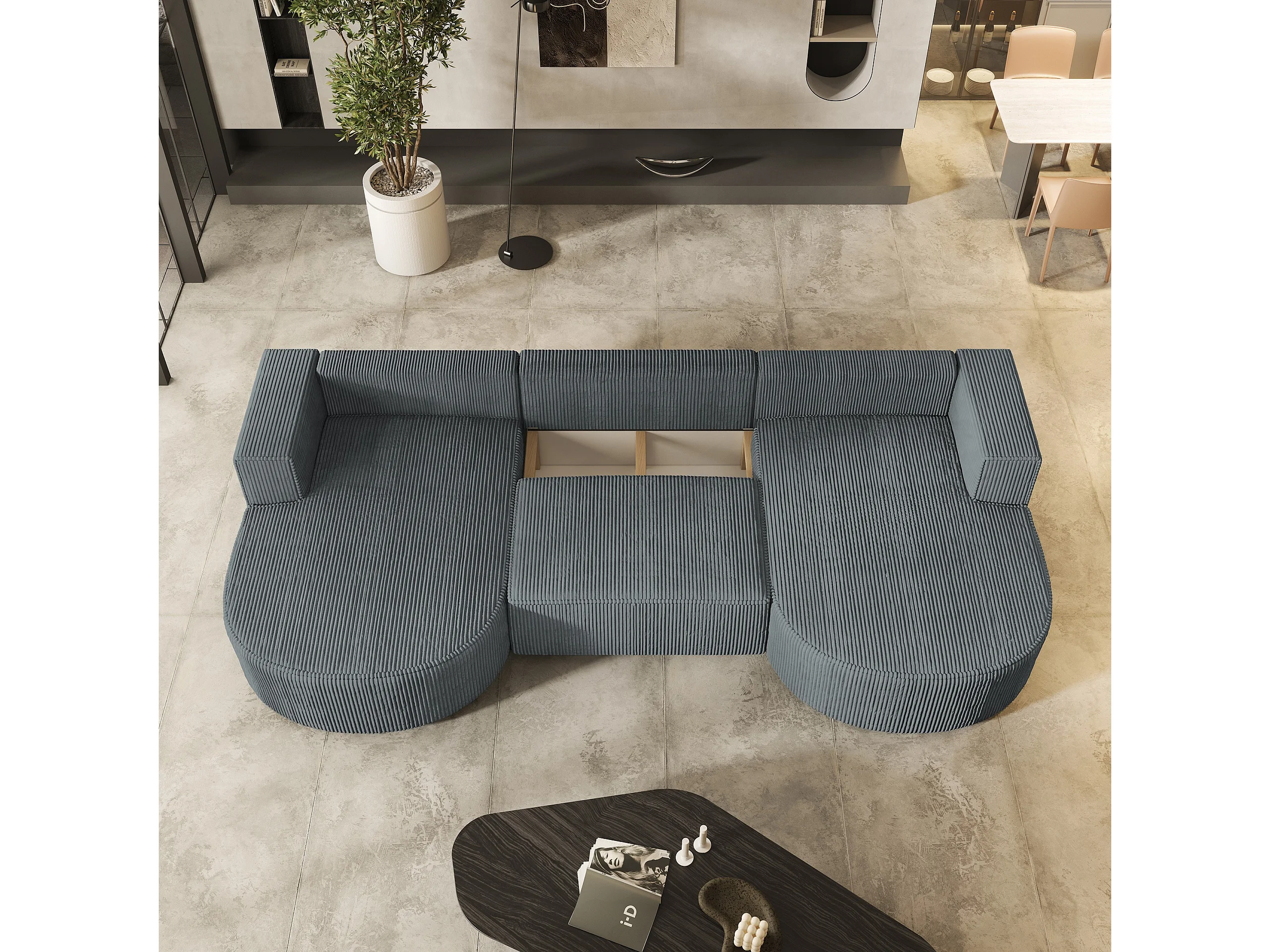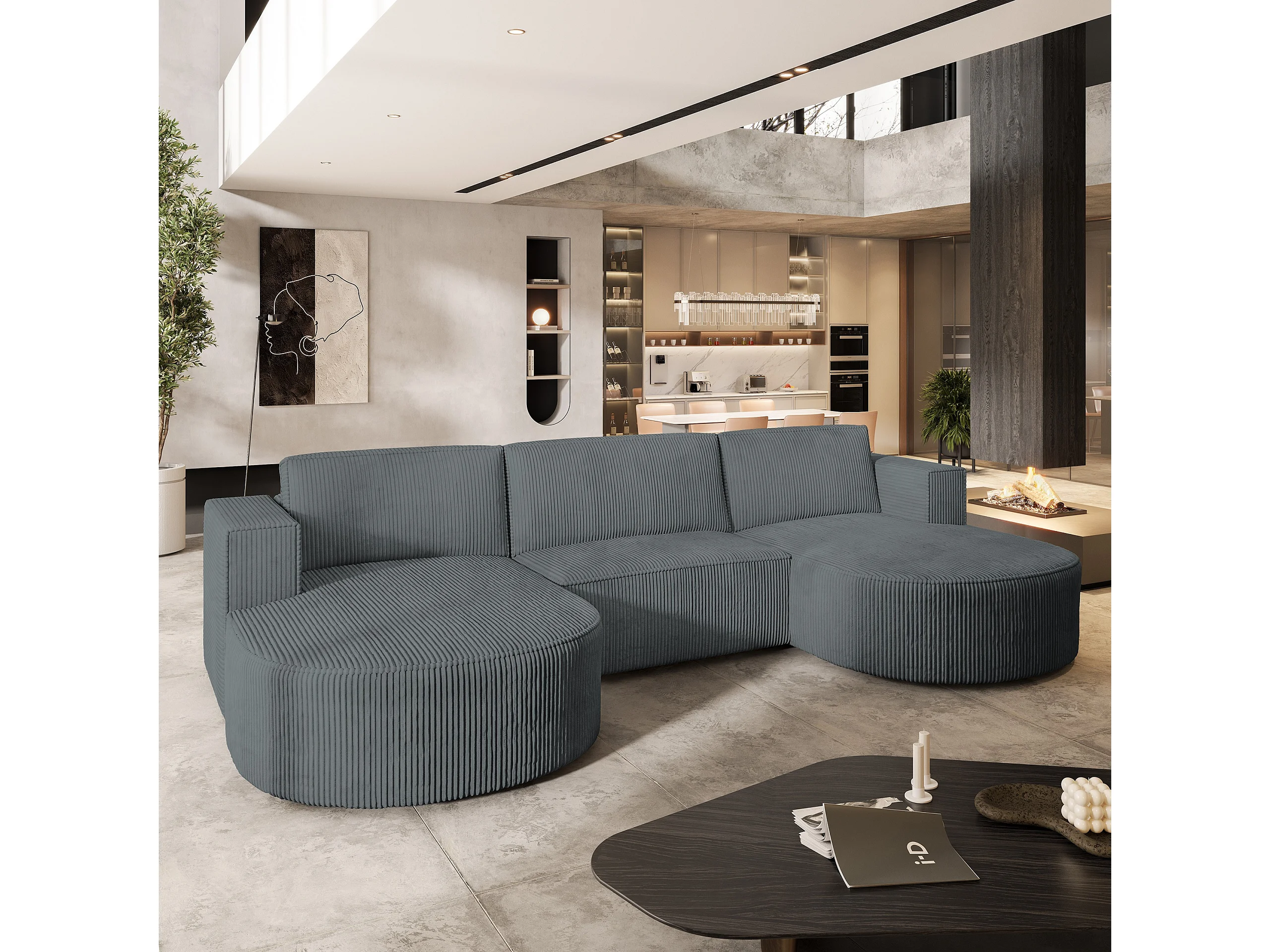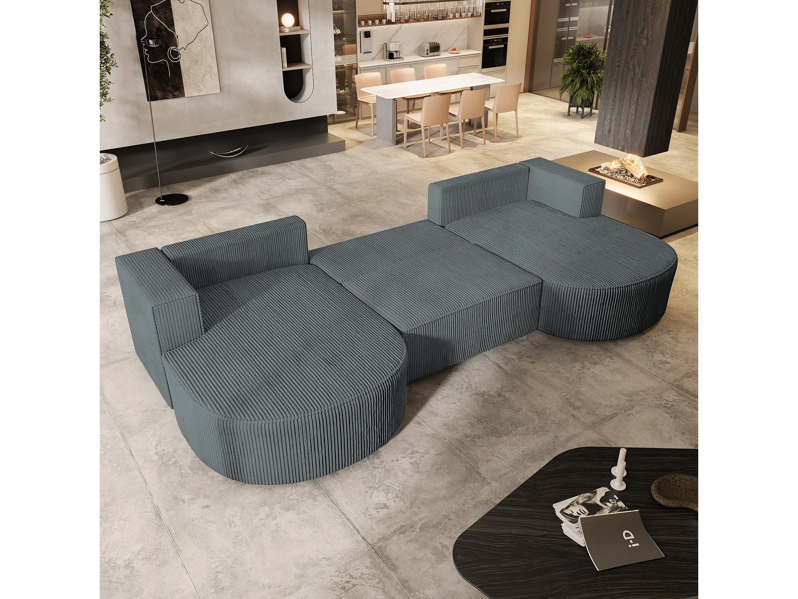 Canapé d'angle VEZZO Gris en velours côtelé avec fonction de couchage