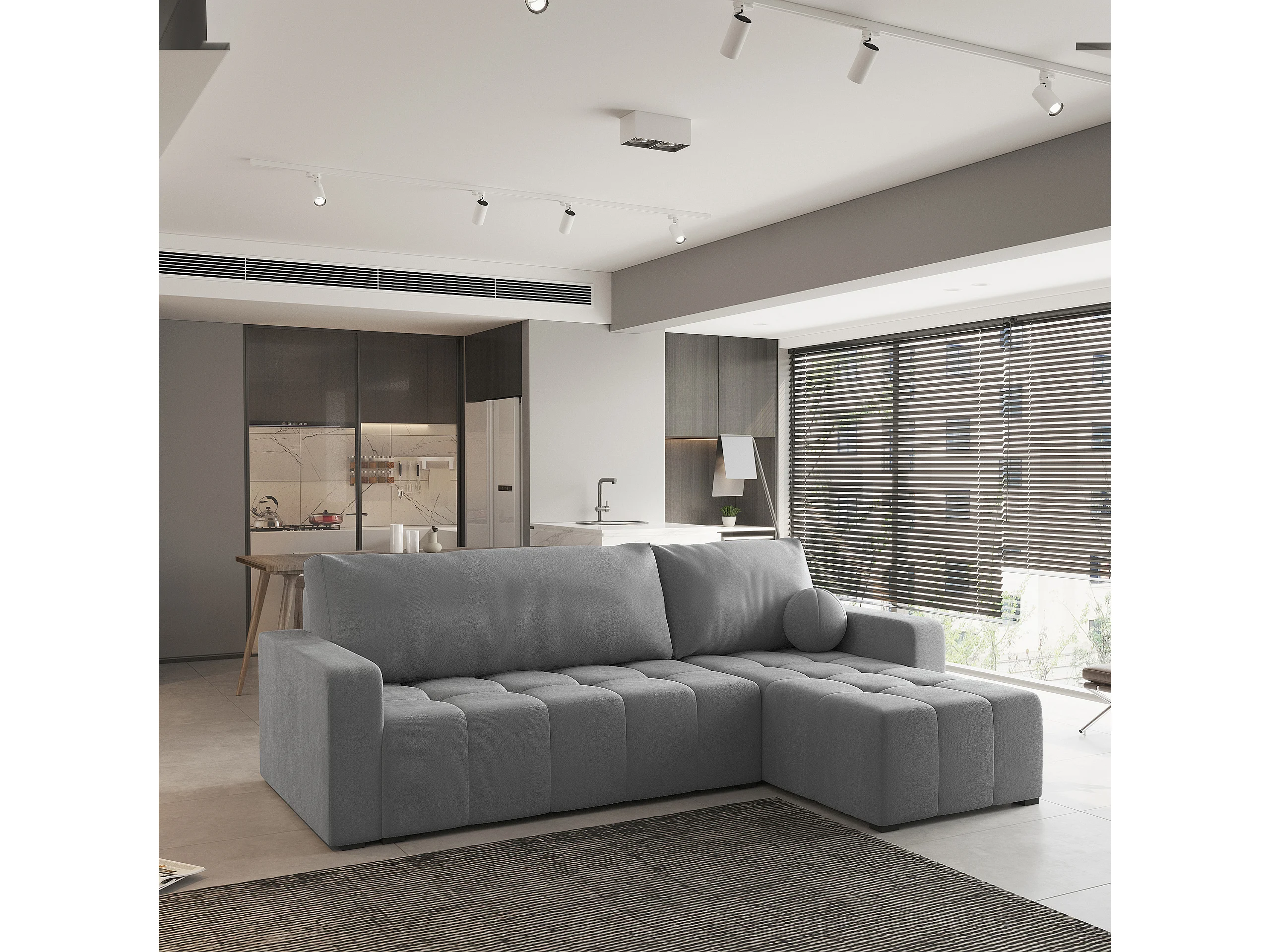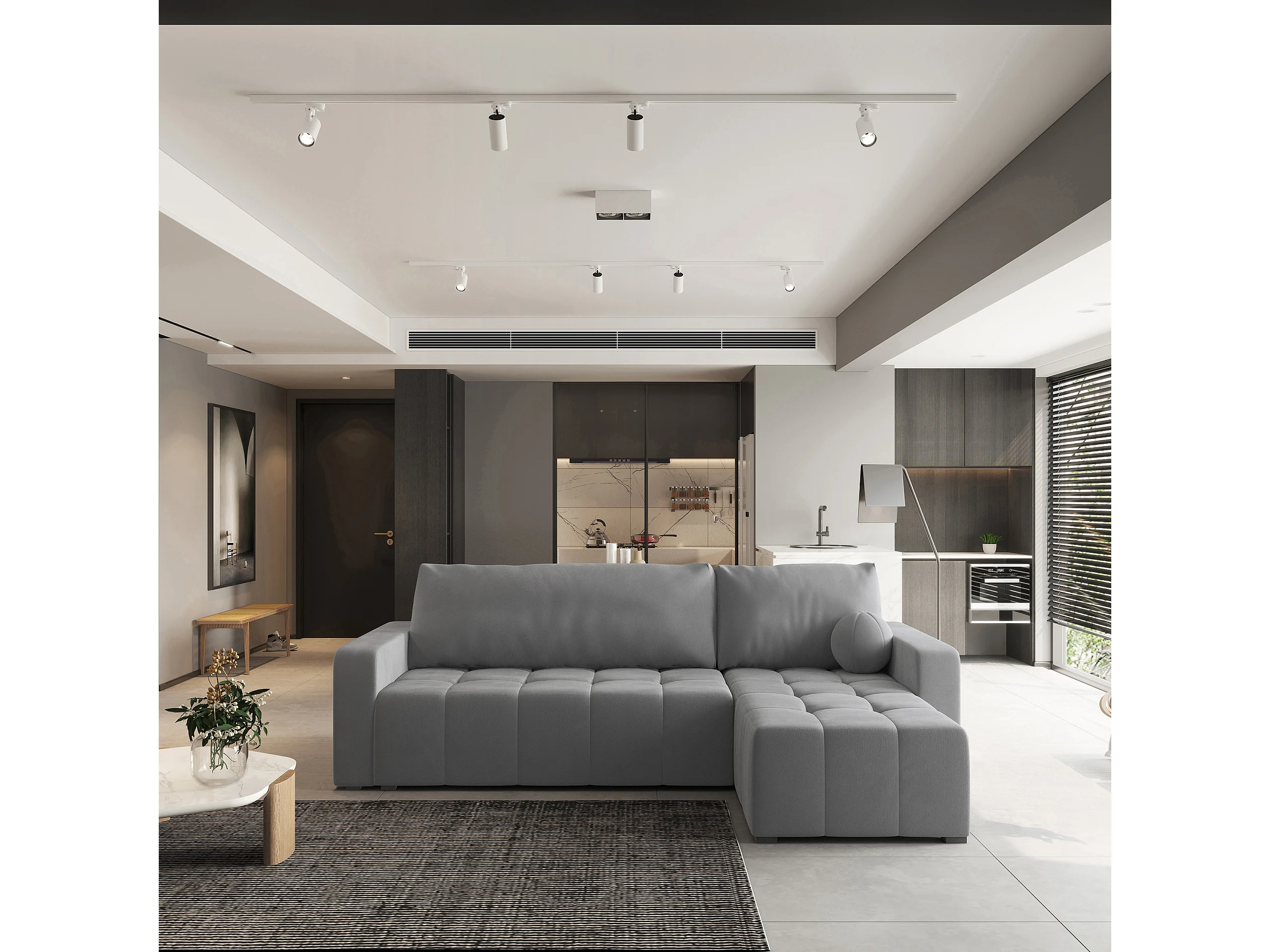 Canapé d'angle VOLIRA Gris en peluche avec fonction de couchage