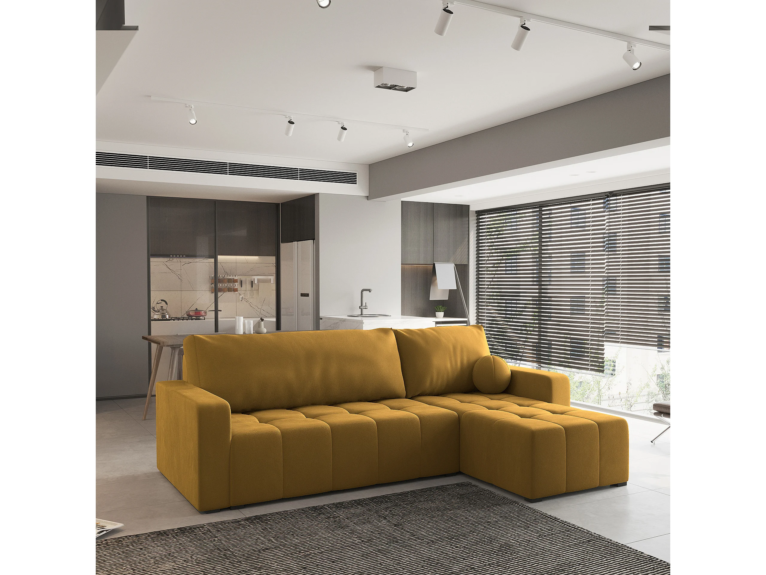 Canapé d'angle VOLIRA Jaune en peluche avec fonction de couchage