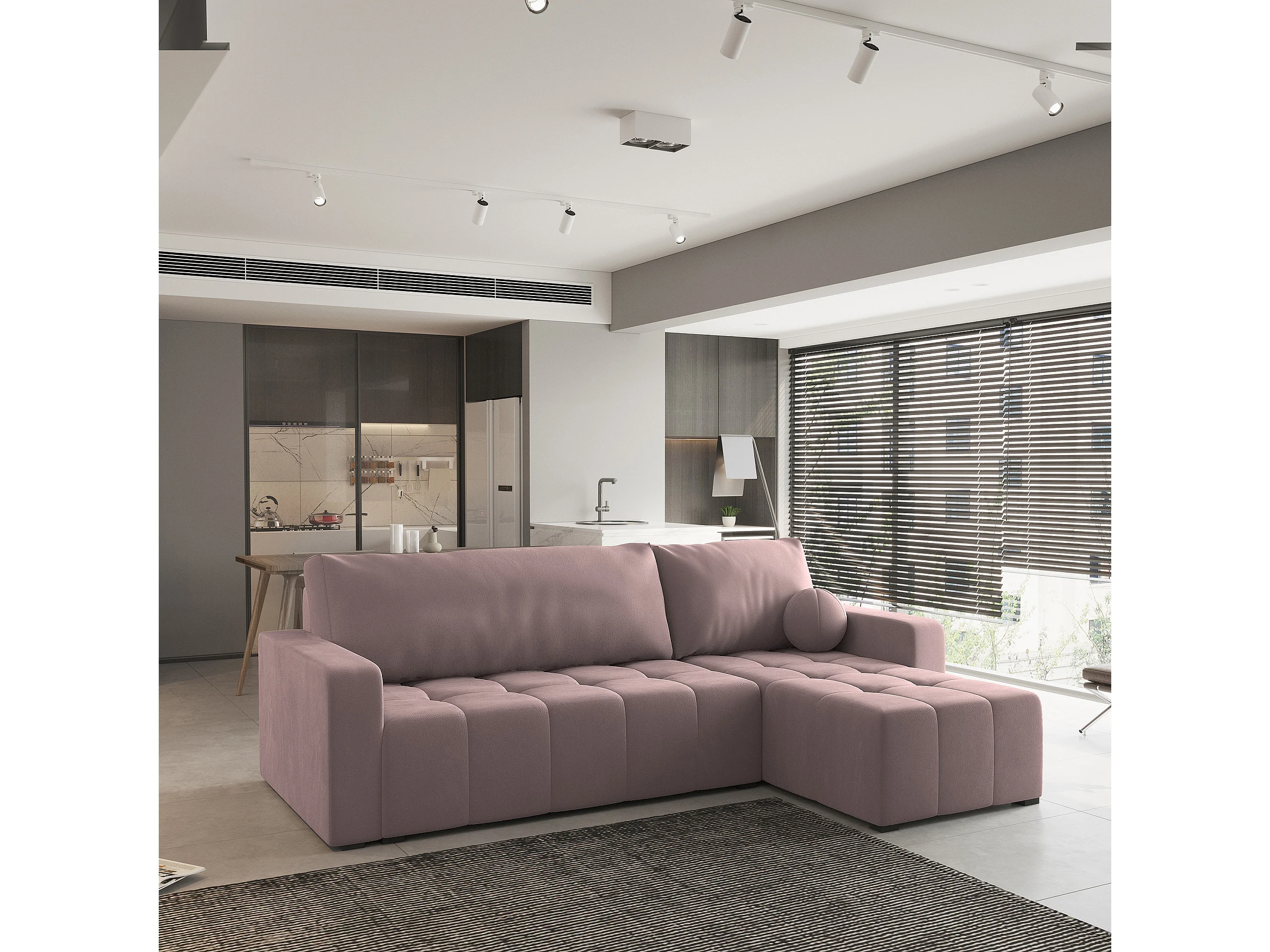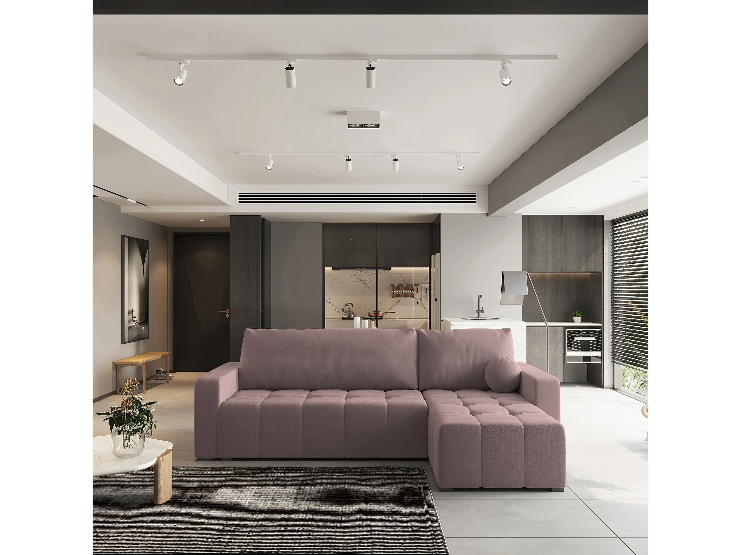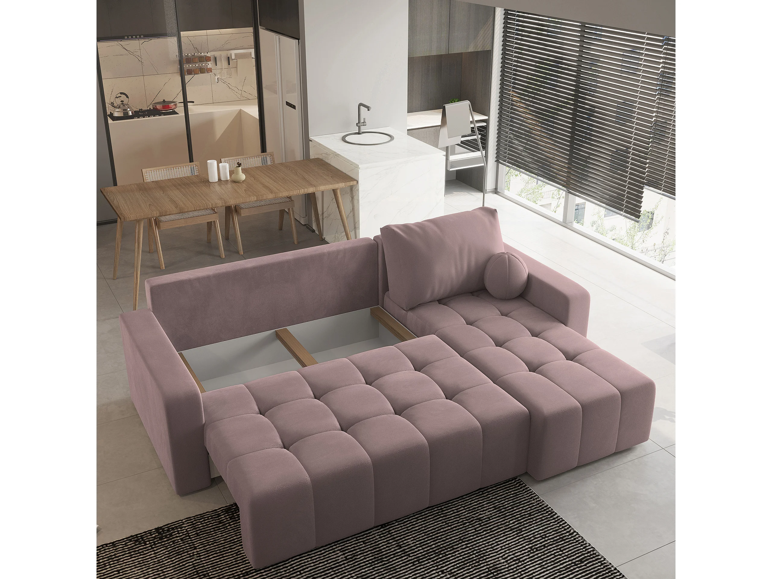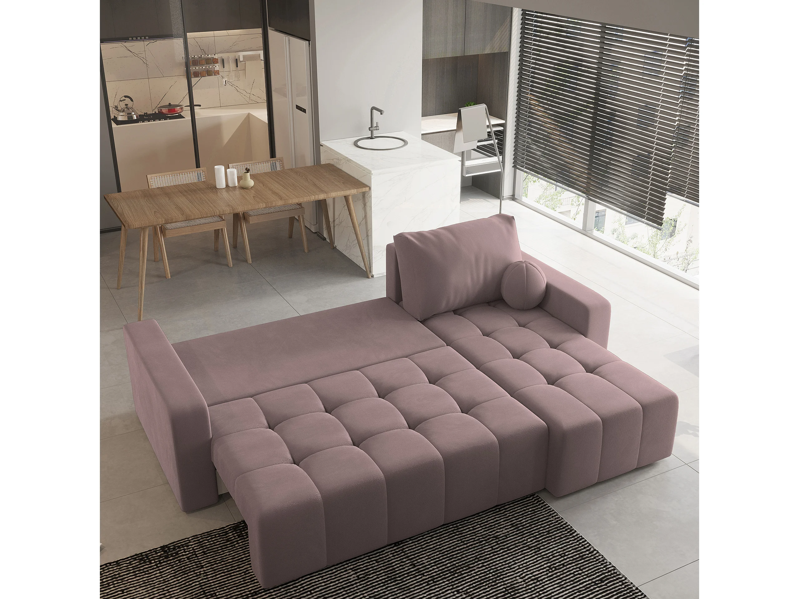 Canapé d'angle VOLIRA Rose poudré en peluche avec fonction de couchage
