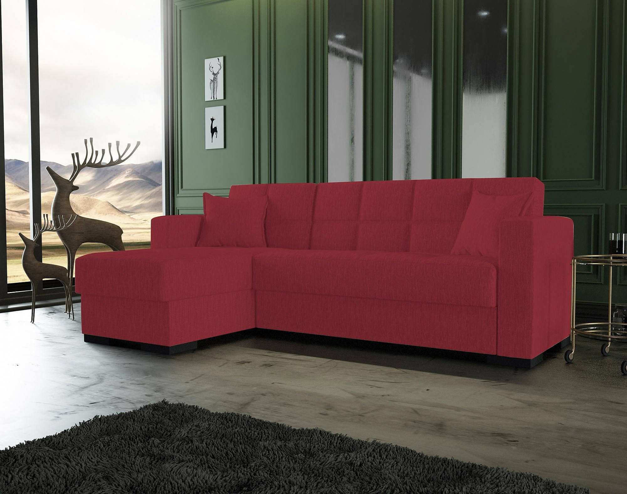 Canapé Ddajca, Canapé d'angle avec péninsule réversible, Canapé de rangement pour le salon avec chaiselongue et 2 coussins, 230x150h81 cm, Rouge