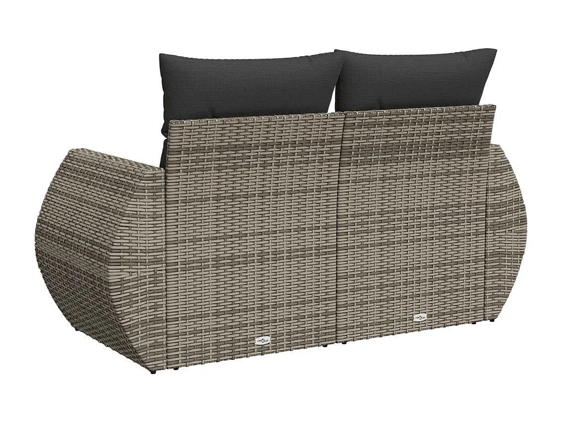 Canapé de jardin 2 places avec coussins gris résine tressée