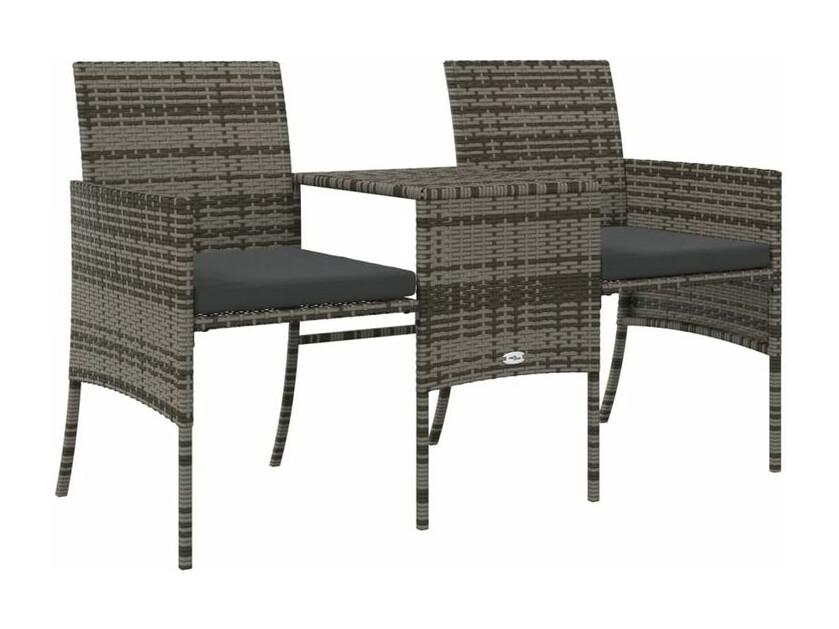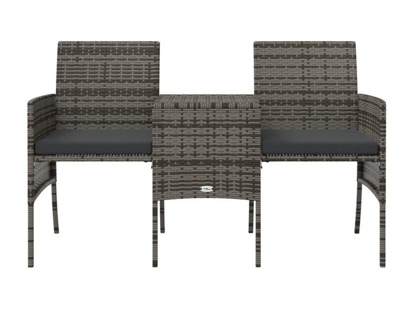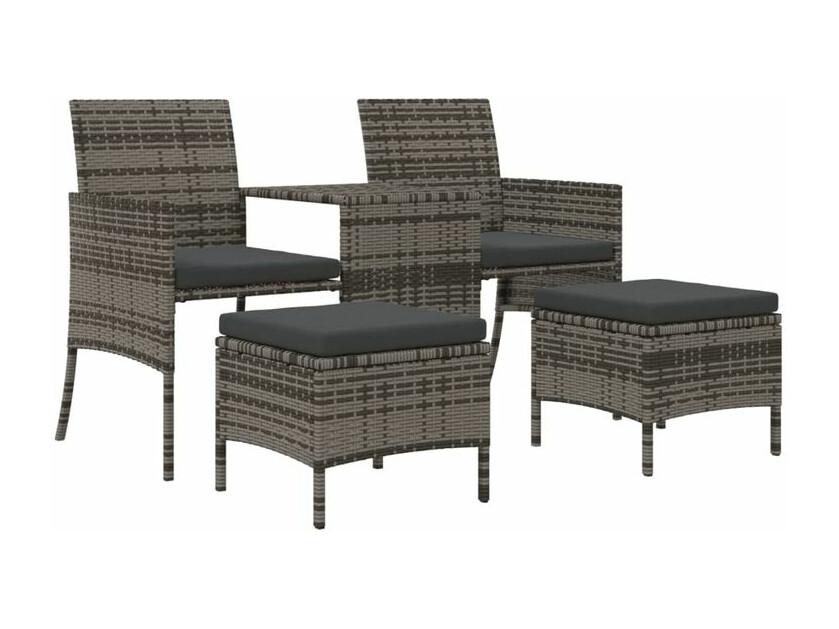 Canapé de jardin 2 places avec table et tabourets gris rotin