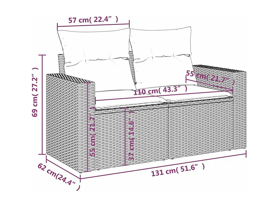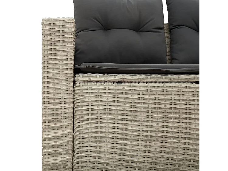 Canapé de jardin 2 places et coussins gris clair résine tressée