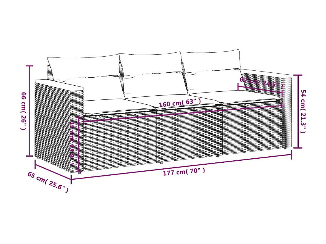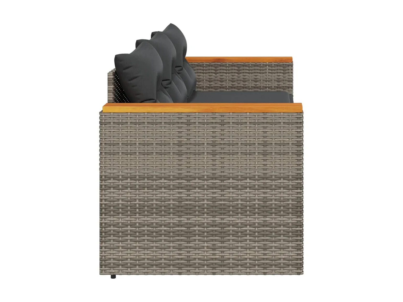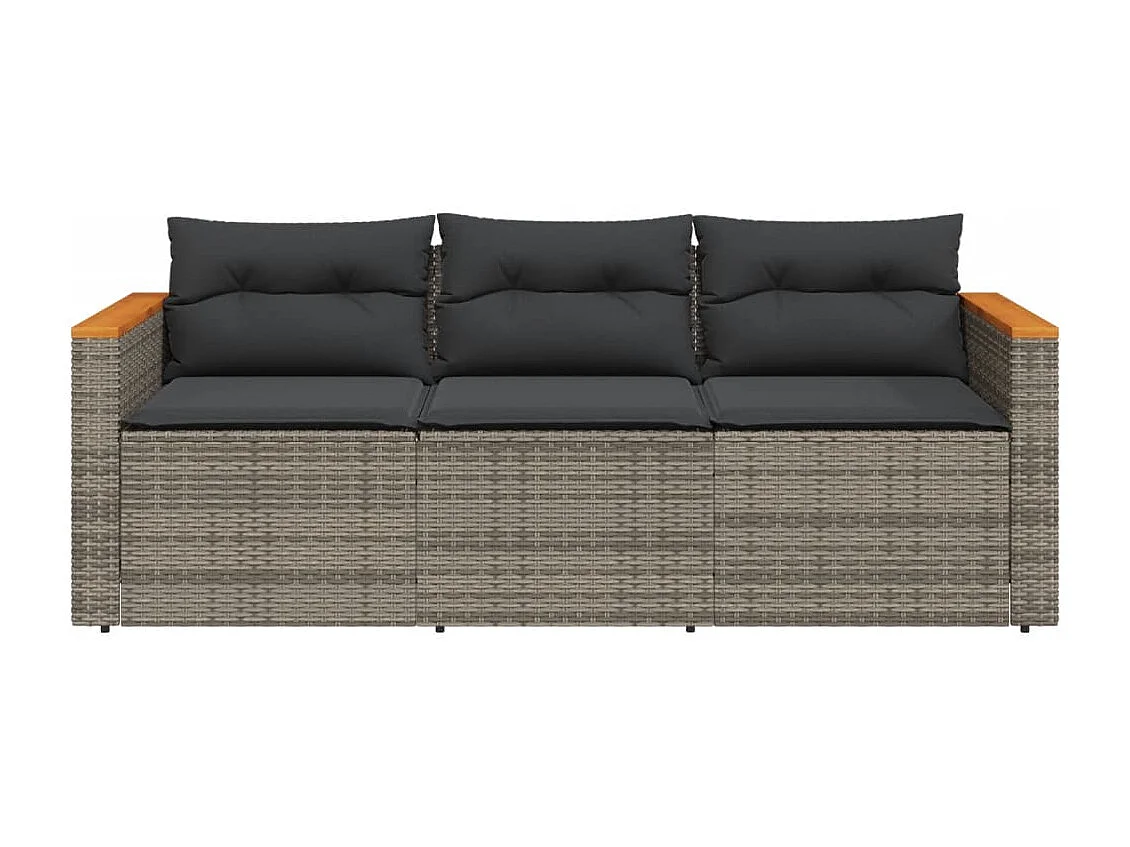 Canapé de jardin avec coussins 3 places gris résine tressée