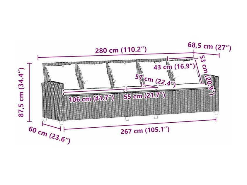Canapé de jardin avec coussins 5 places noir résine tressée