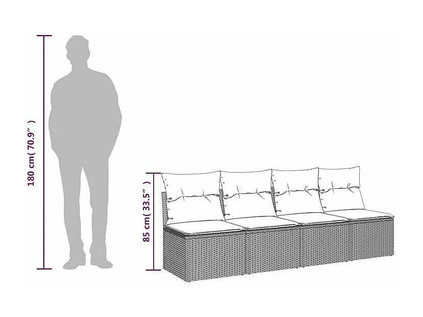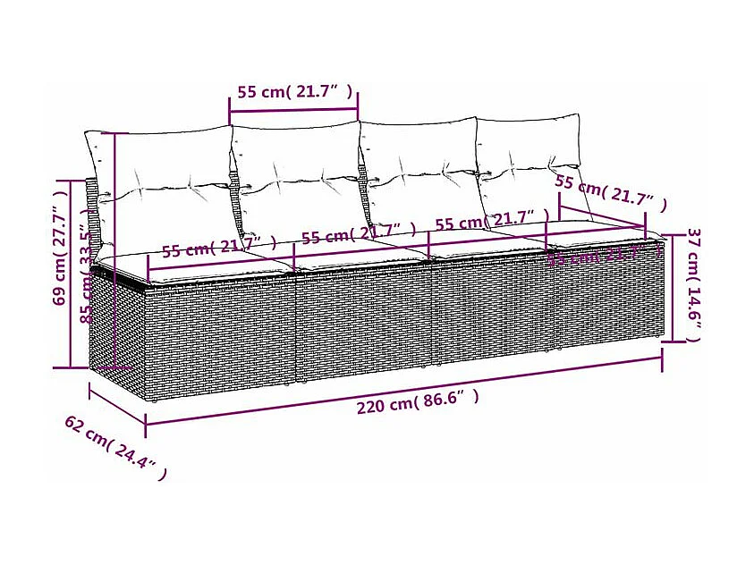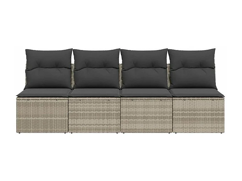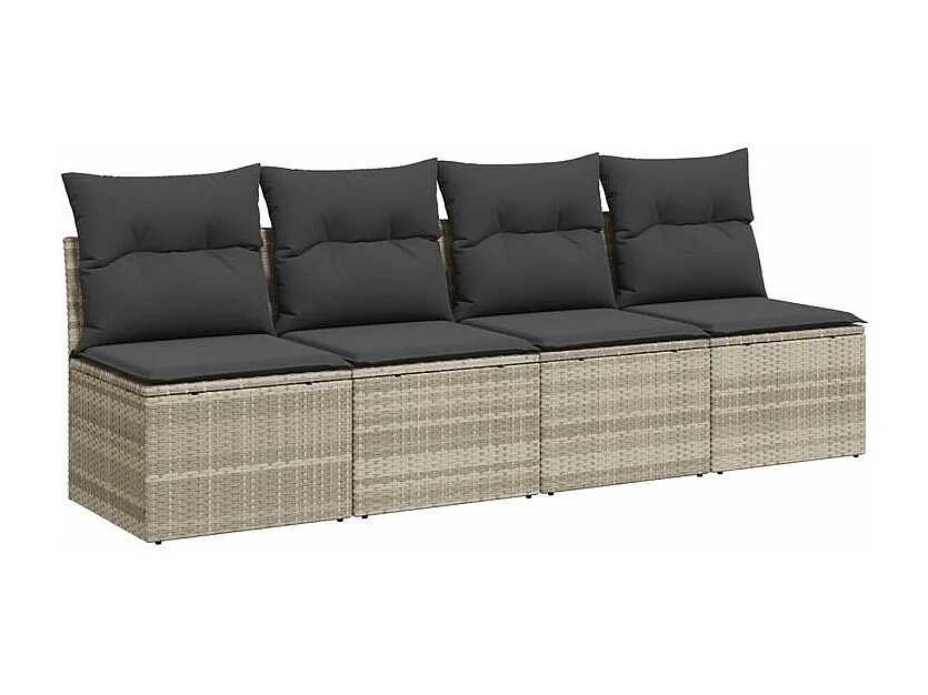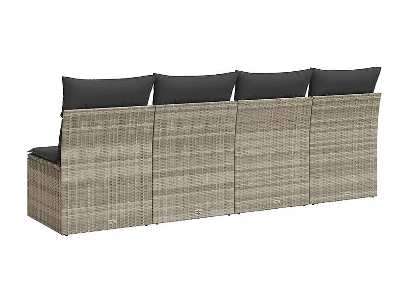 Canapé de jardin et coussins 4 places gris clair résine tressée