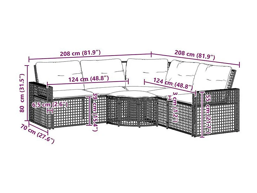 Canapé de jardin et coussins et repose-pied en forme de L rotin