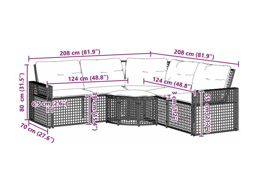 Canapé de jardin et coussins et repose-pied en forme de L rotin