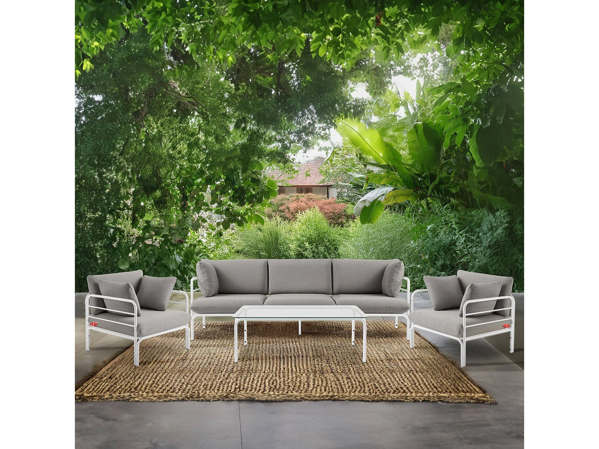 Canapé de jardin RAMBE blanc et gris, dimensions 225x80x80 cm, design contemporain