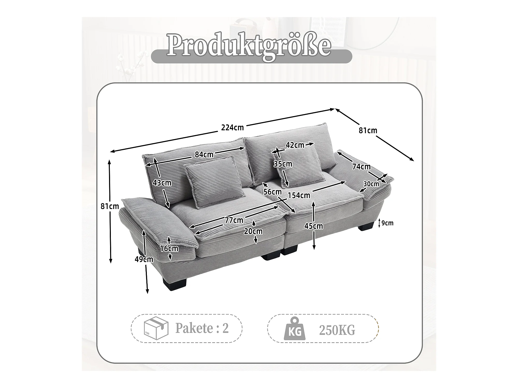 Canapé double moderne et simple - 224 x 81 x 81 cm - avec une couette - velours - gris clair