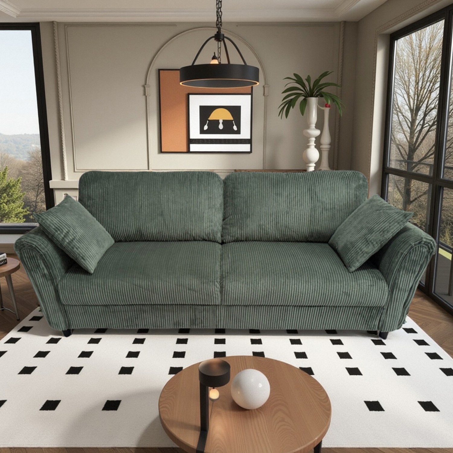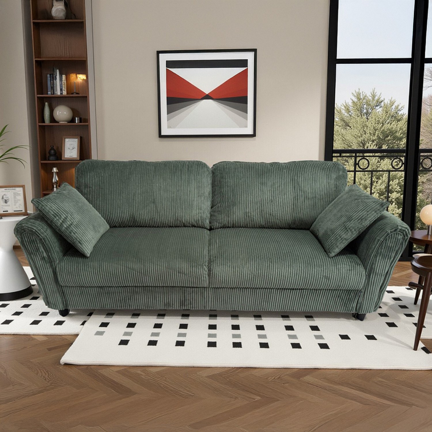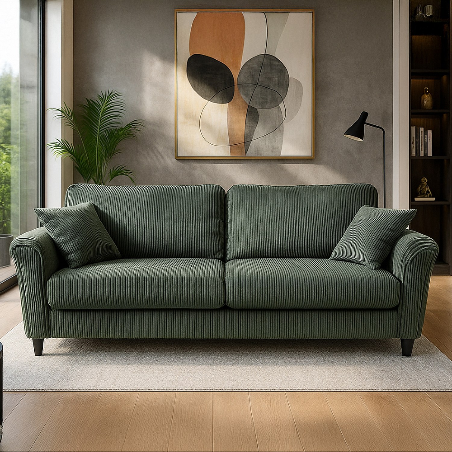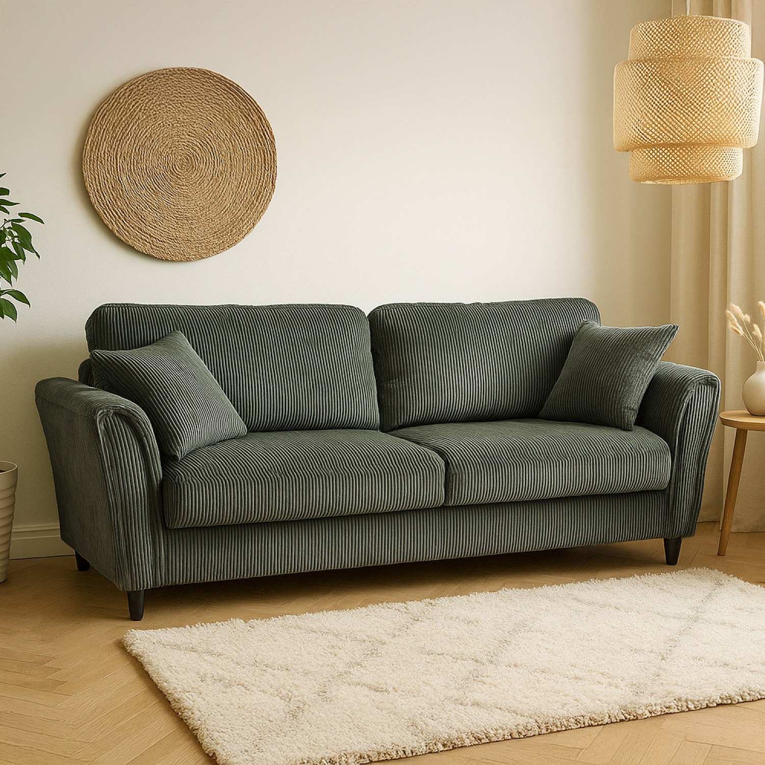 Canapé droit 4 places en velours côtelé vert LUCERNE