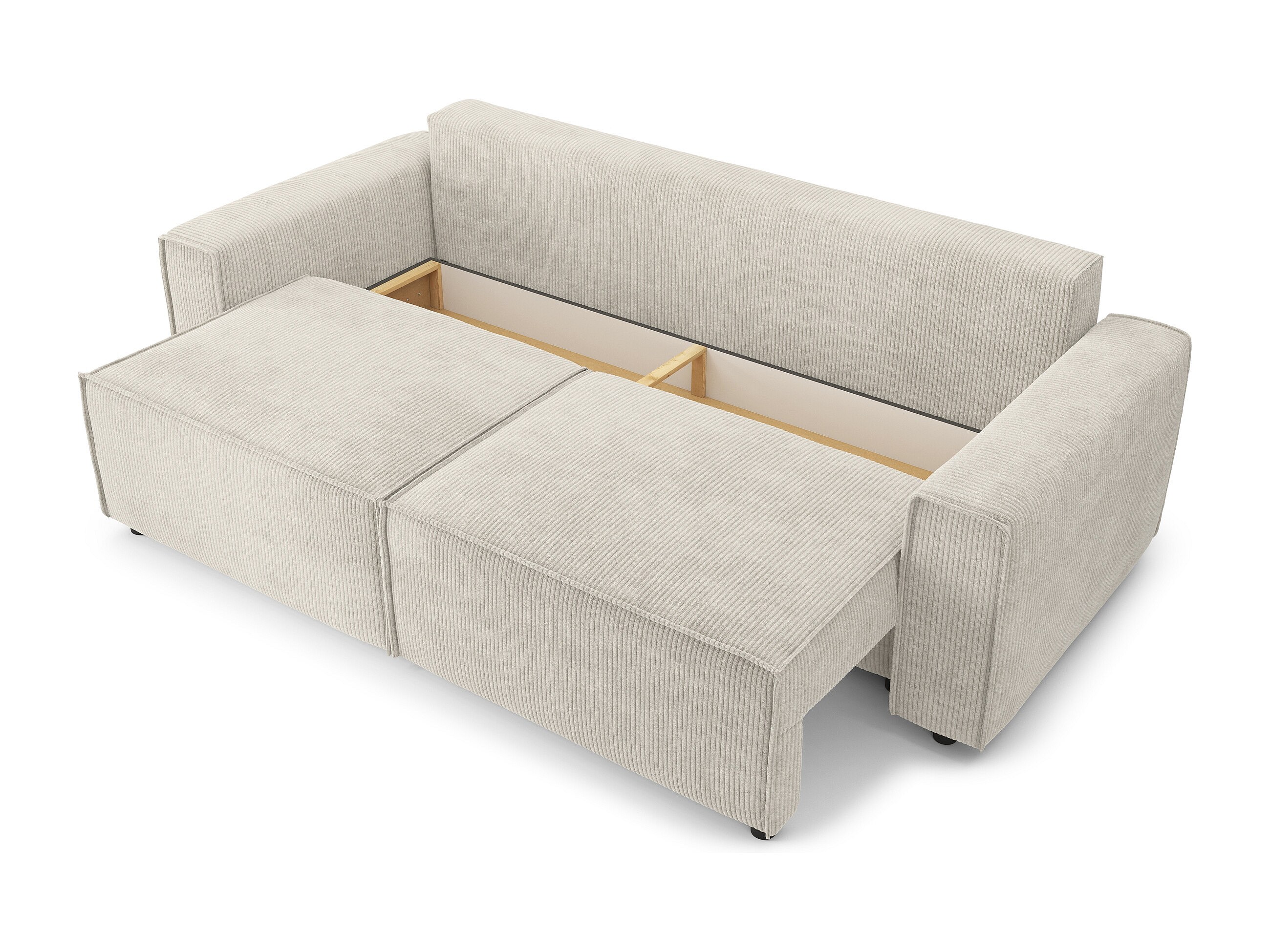 Canapé droit convertible 3 places en velours côtelé beige DURIF