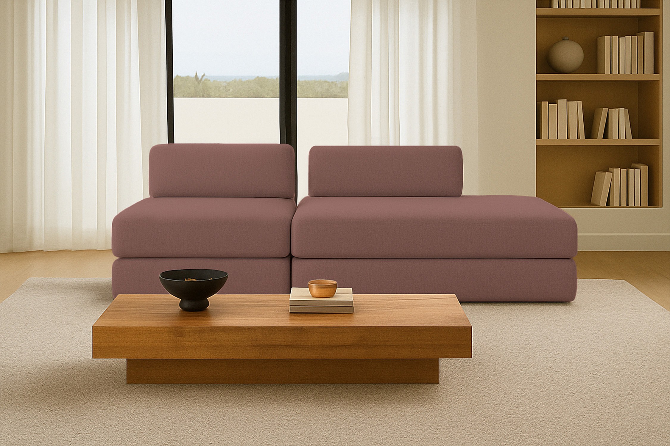 Canapé droit modulable et convertible 3 places - Tissu lisse - Terracotta