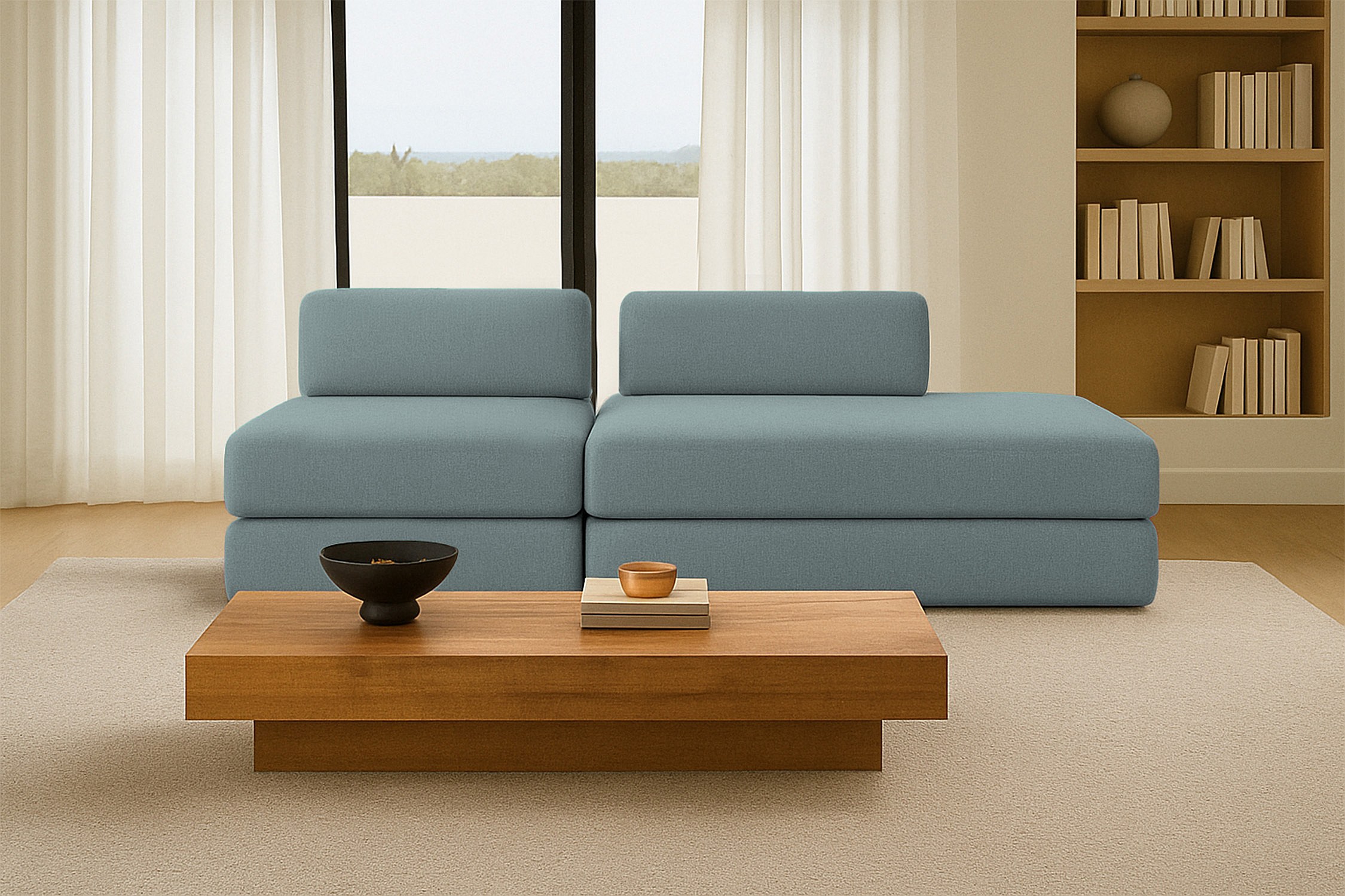 Canapé droit modulable et convertible 3 places - Tissu lisse - Bleu vert