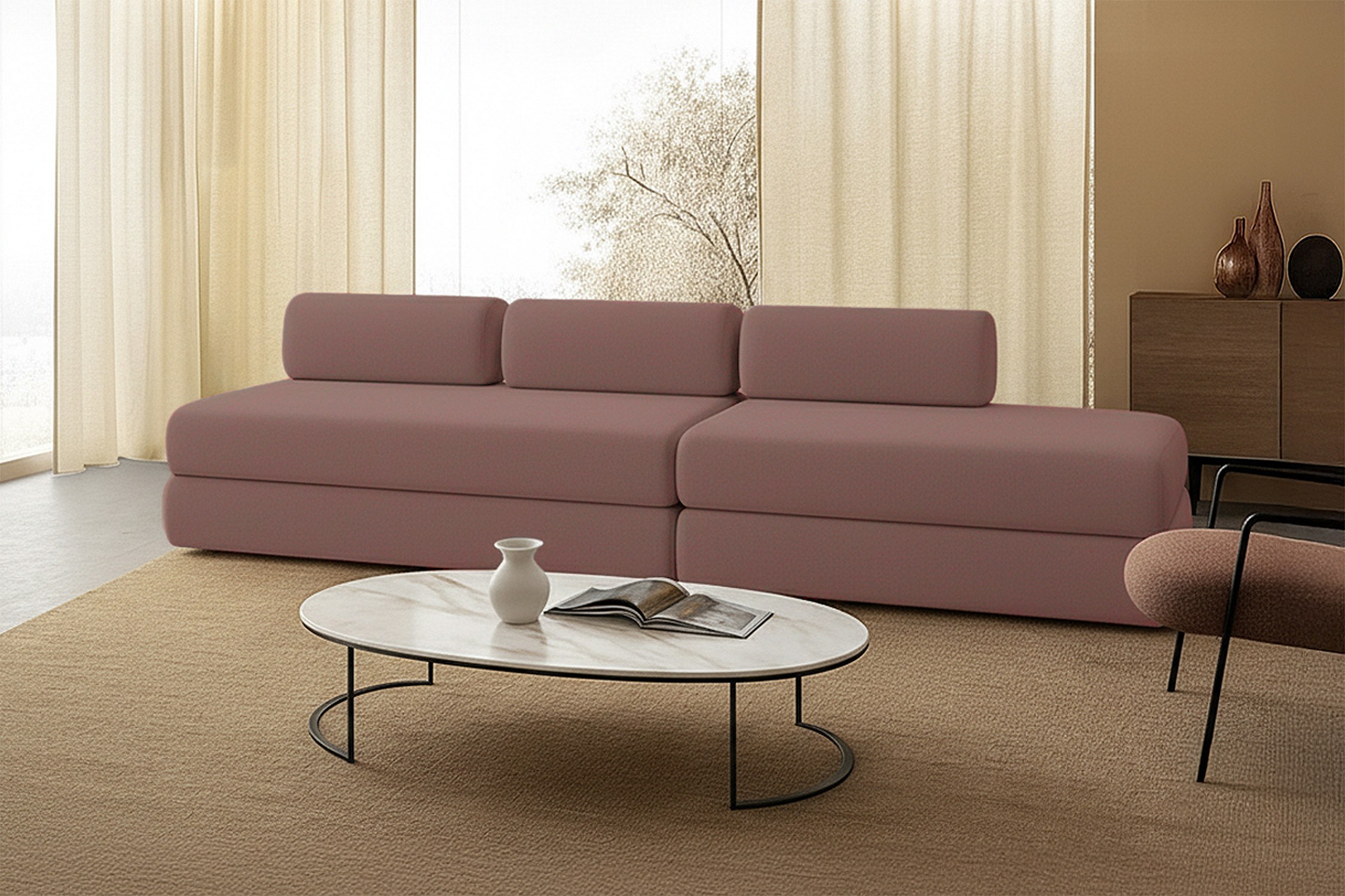 Canapé droit modulable et convertible 5 places - Tissu lisse - Terracotta