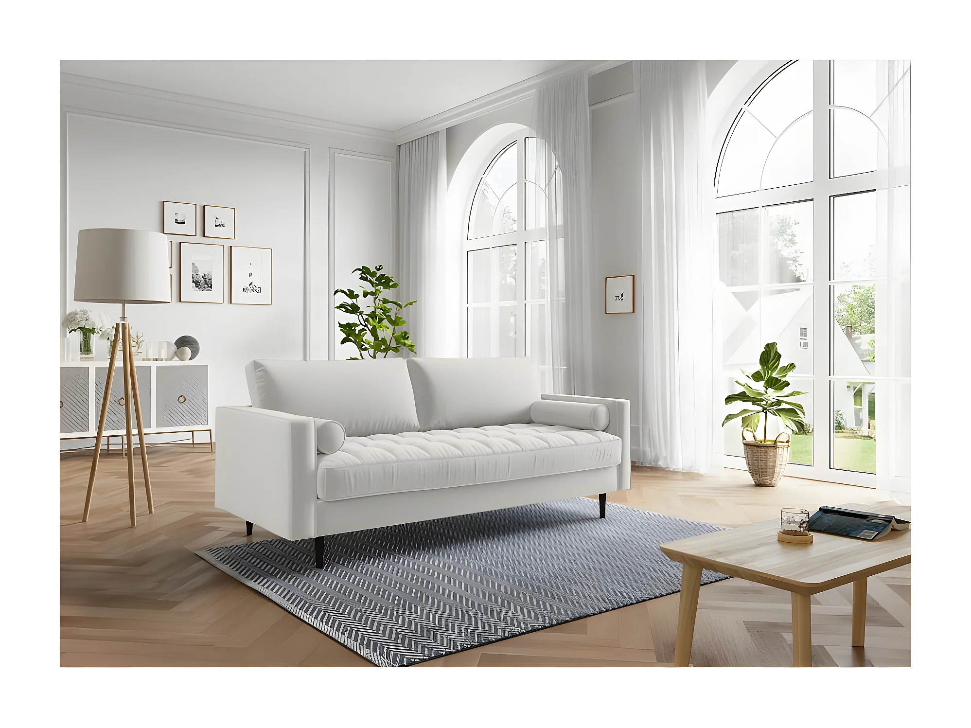 Canapé droit MAEL fixe en velours beige