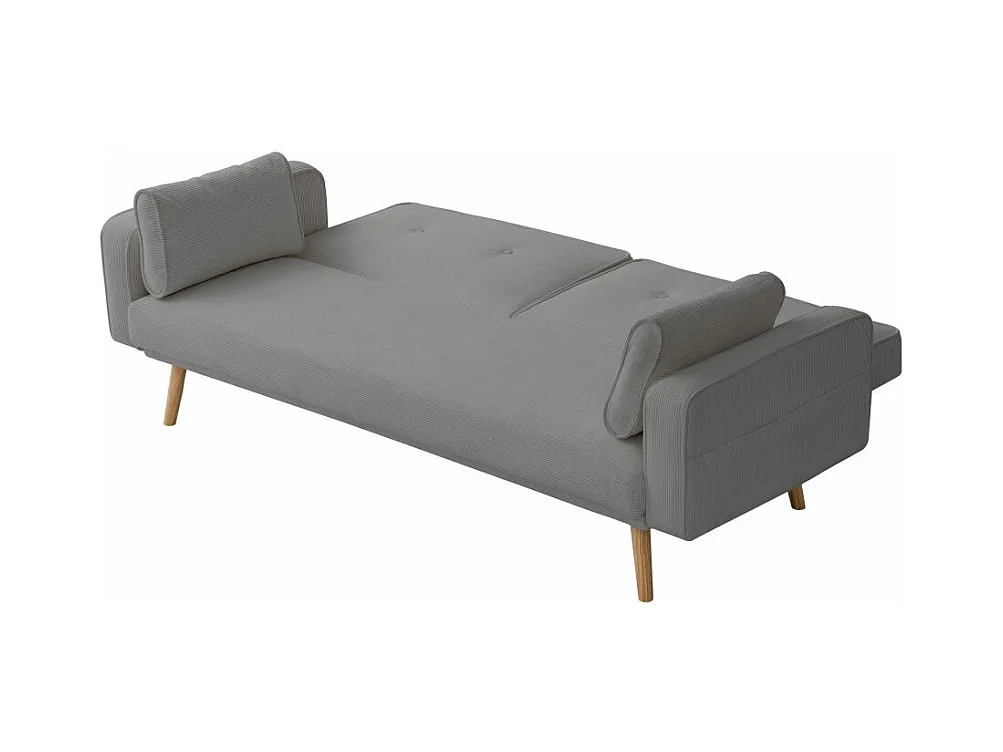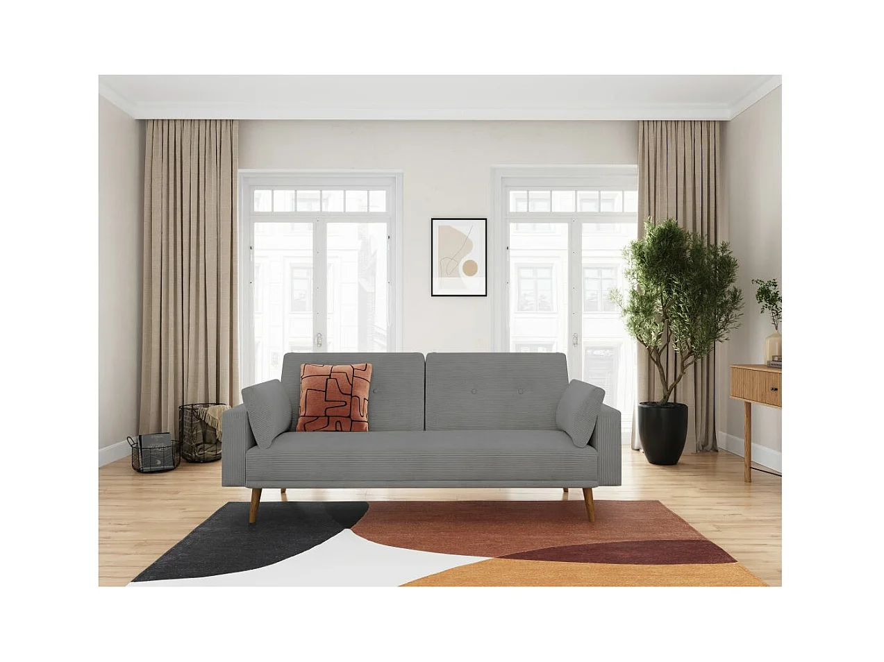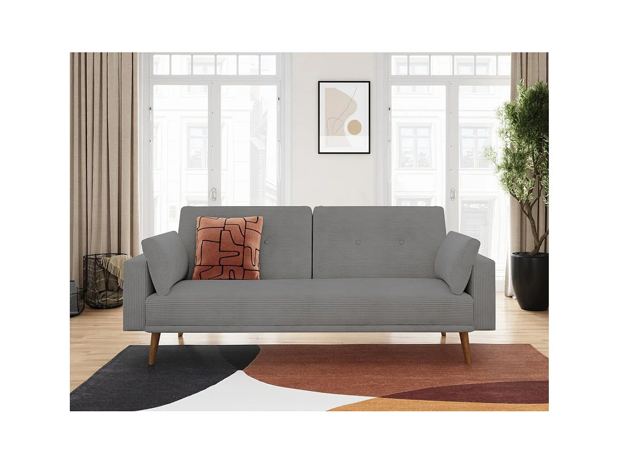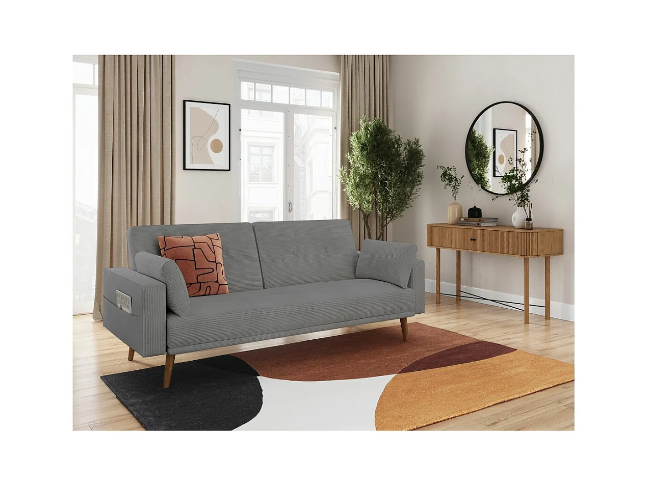 Canapé droit scandinave Elga convertible 3 places en velours côtelé - Gris - L205 x P85 x H87cm - Loungitude