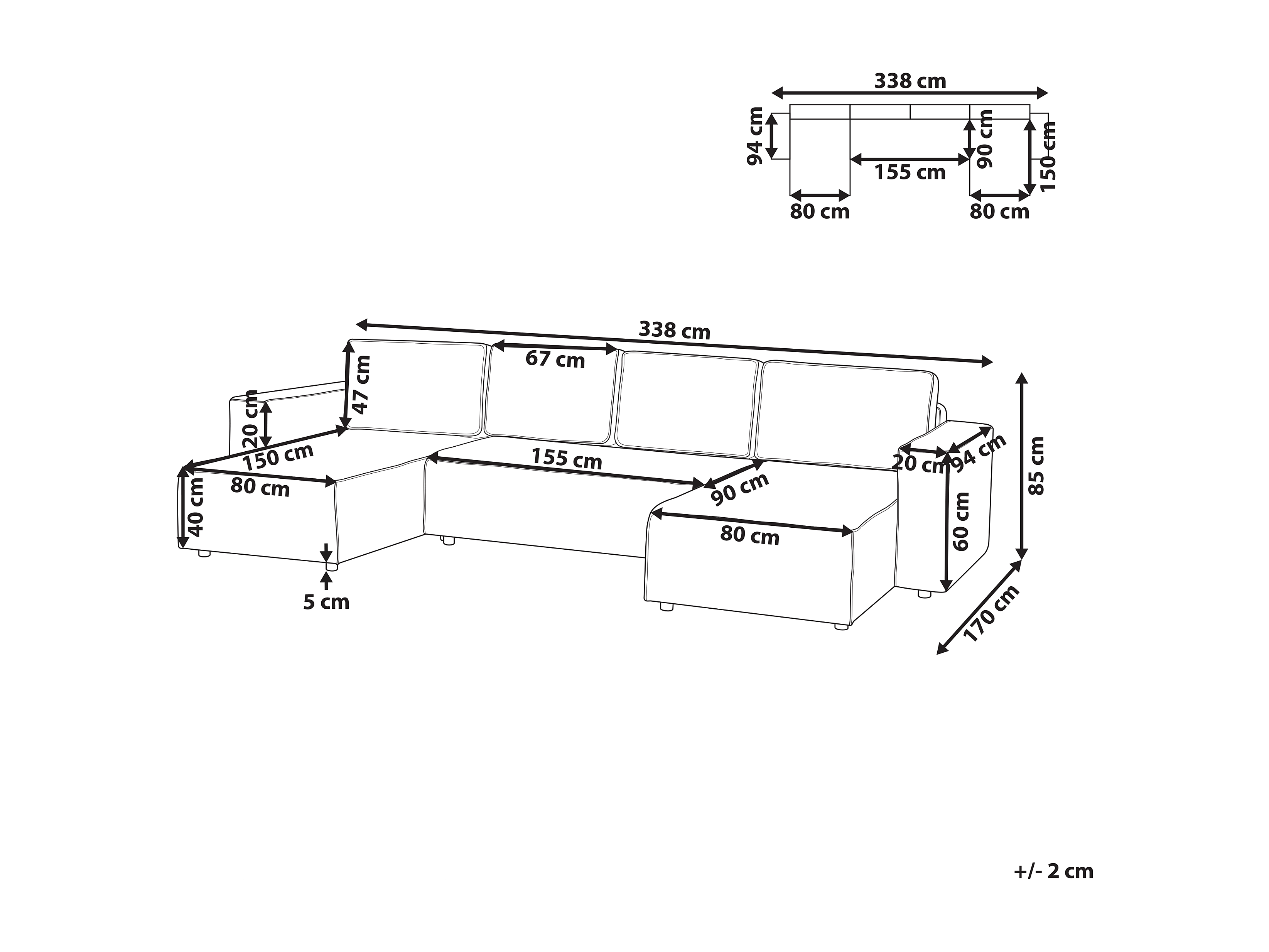 Canapé-lit en forme de U 4 places VATNE Tissu Gris clair avec rangement